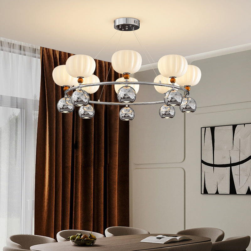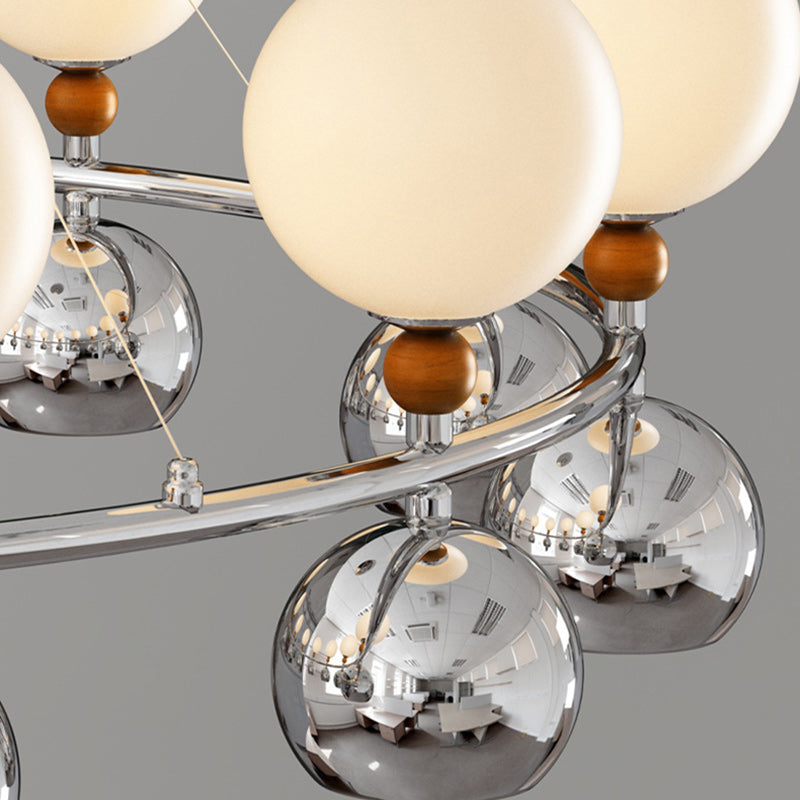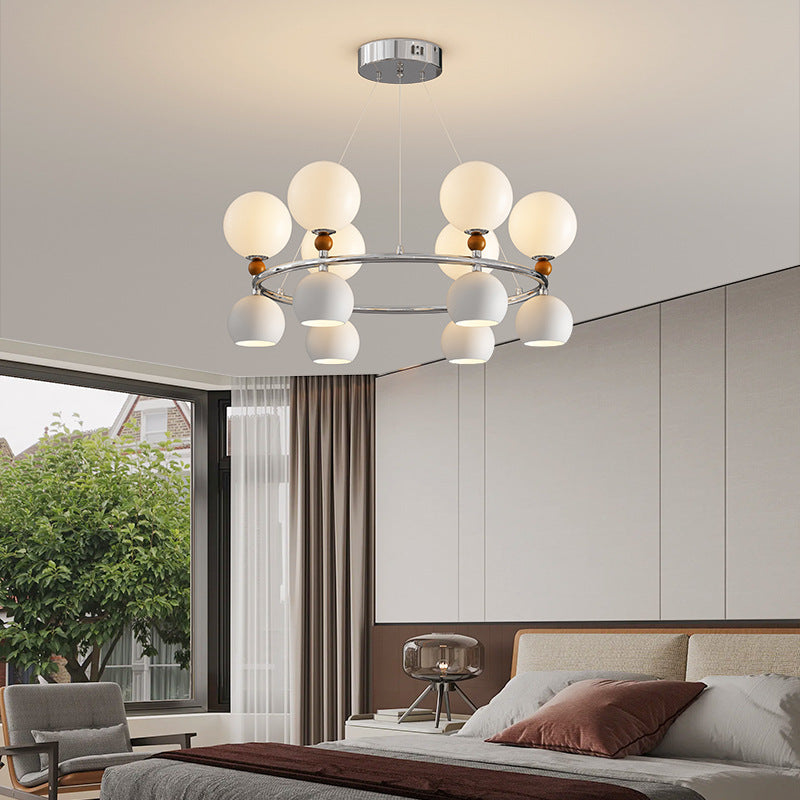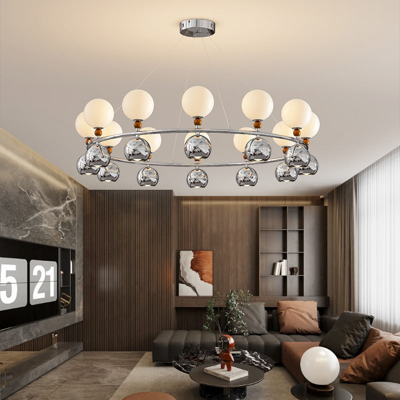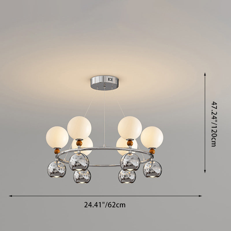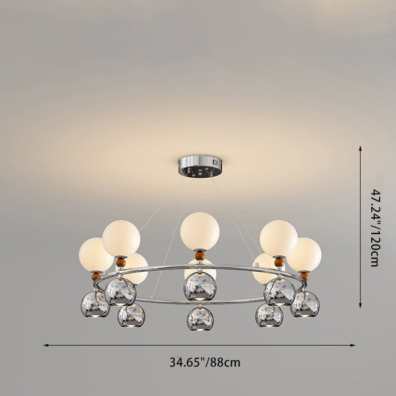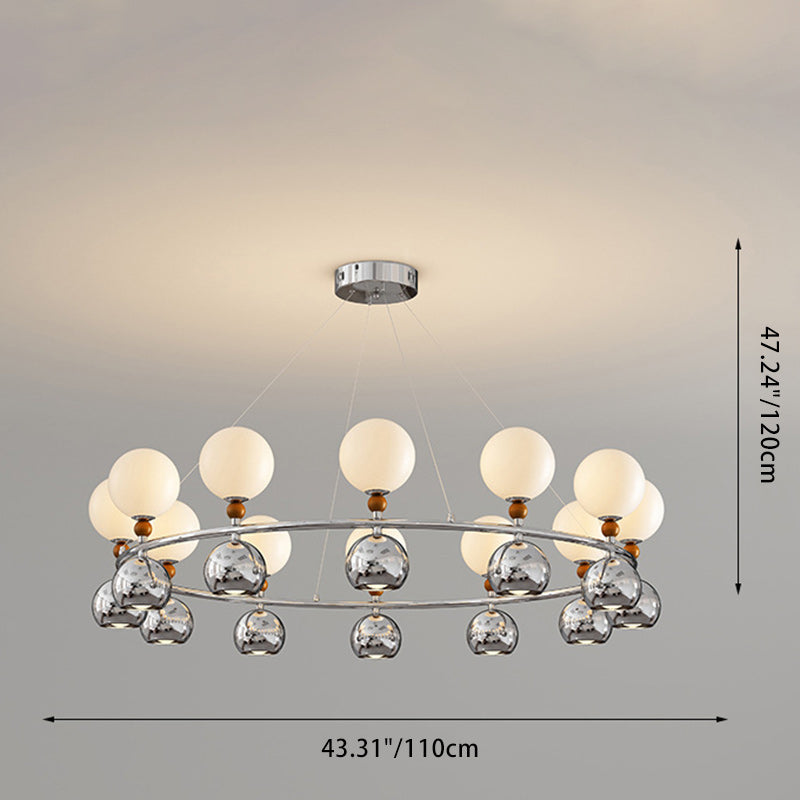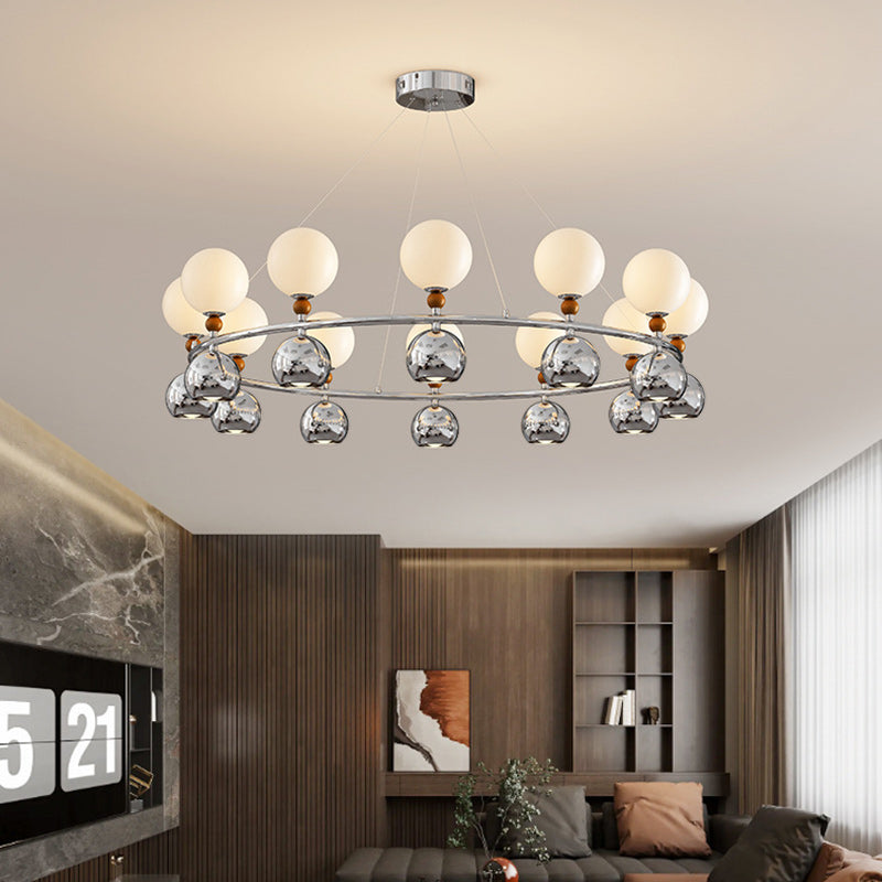 Contemporary Nordic Round Orb Iron Glass Shade 12/16/24 Light Chandelier For Living Room