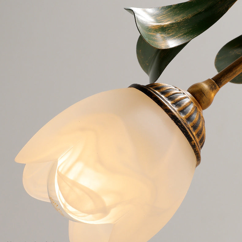 Contemporary Nordic Semi-Circular Curved Rod Floral Iron Glass Shade 6-Light Semi-Flush Mount Ceiling Light For Living Room