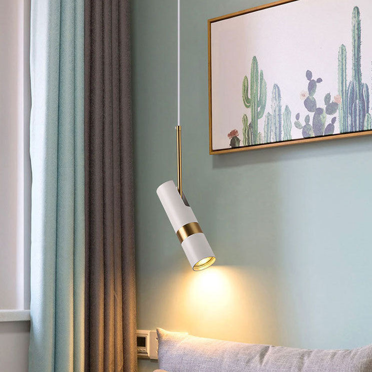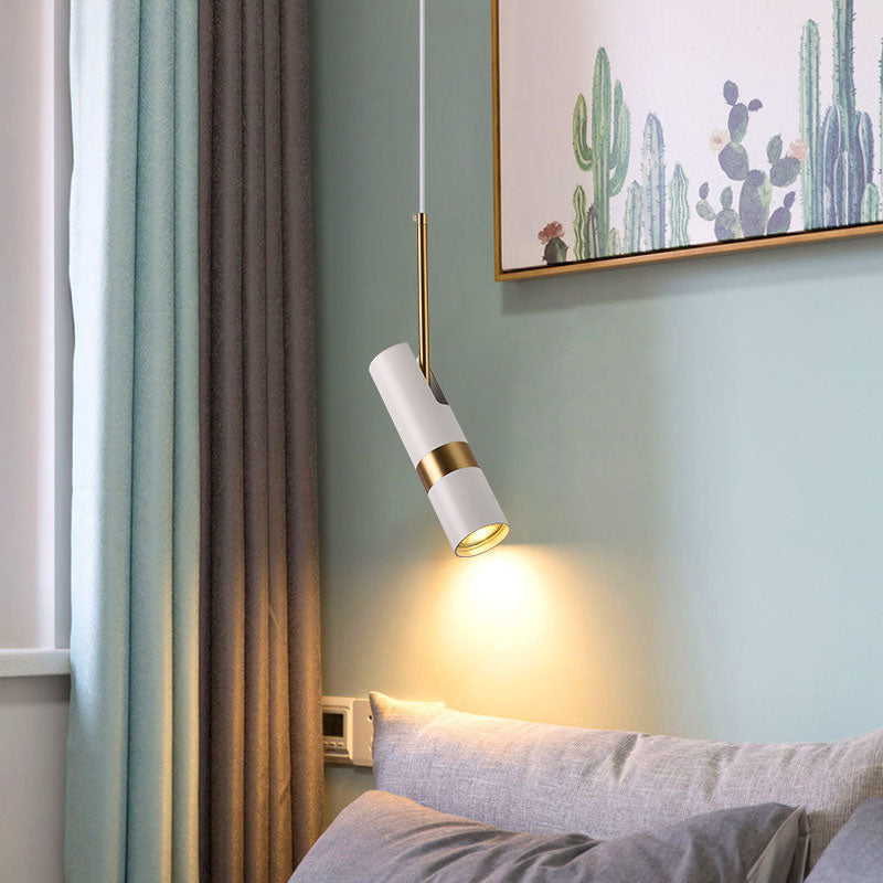 Contemporary Nordic Simplicity Metal Long Barrel 1-Light Pendant Light For Bedroom
