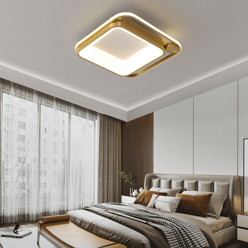 Contemporary Nordic Square Copper Silicone Acrylic LED Flush Mount Ceiling Light For Bedroom