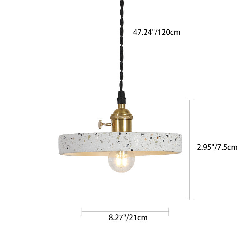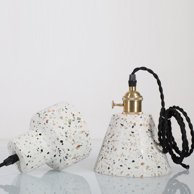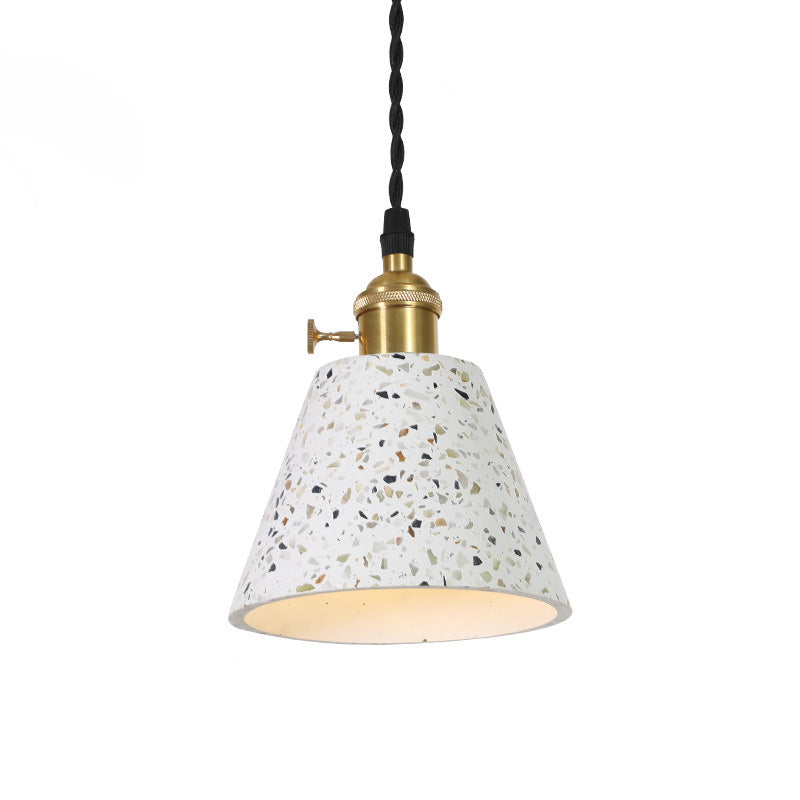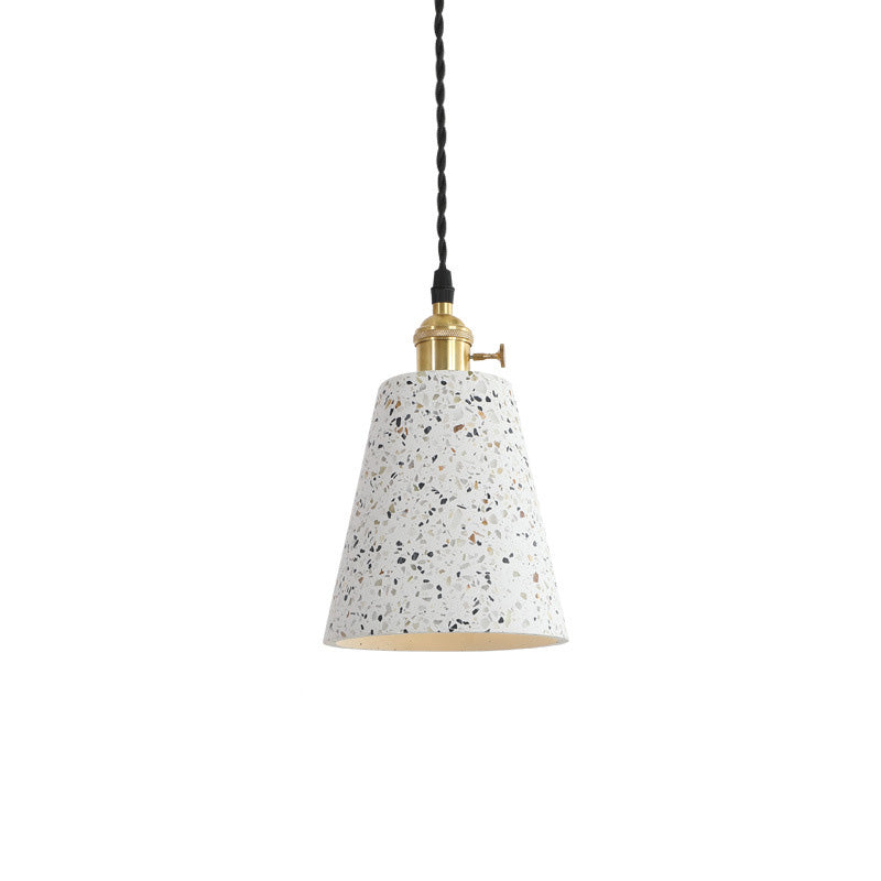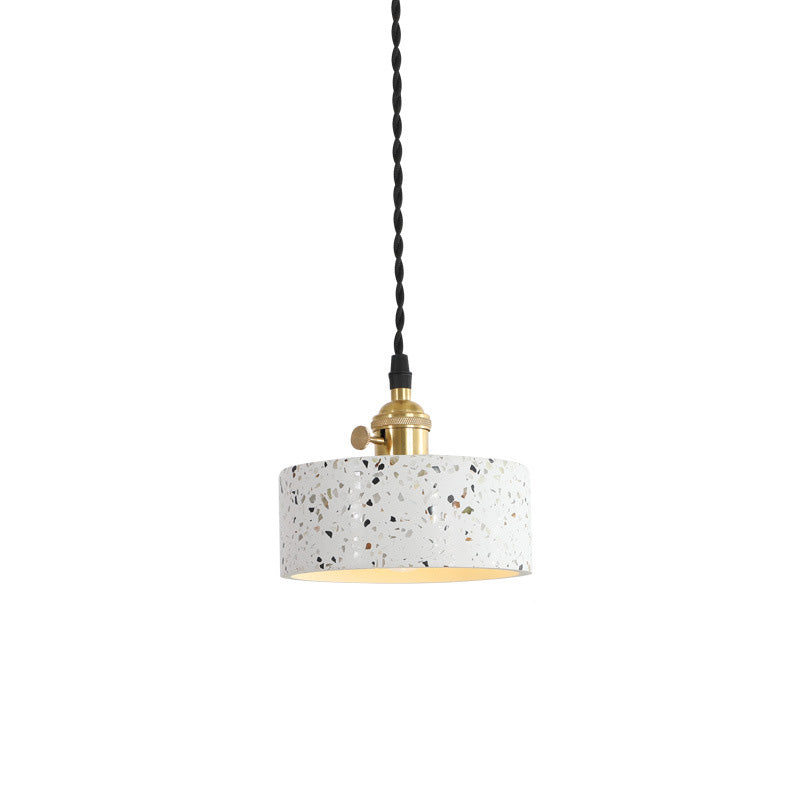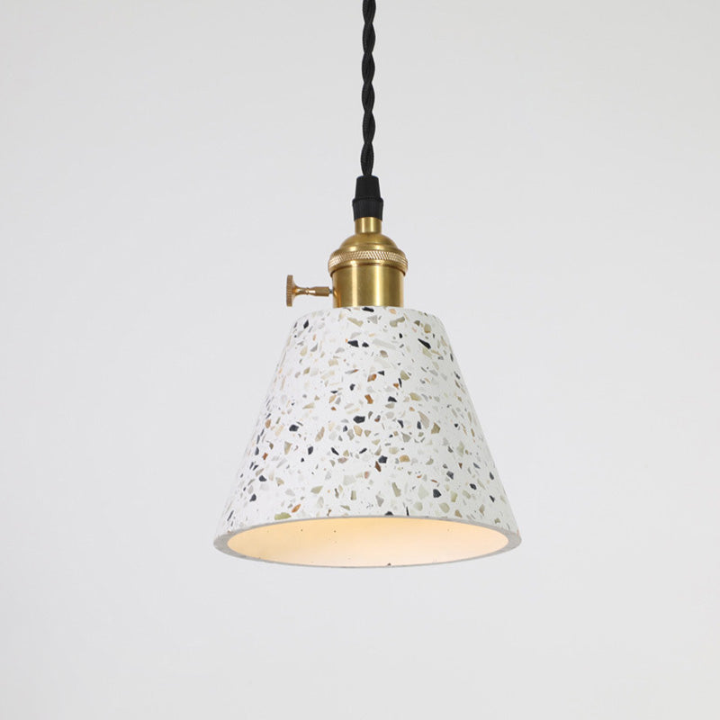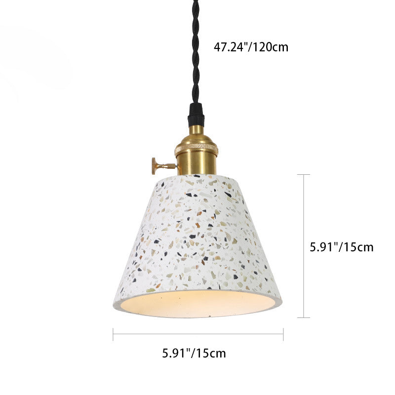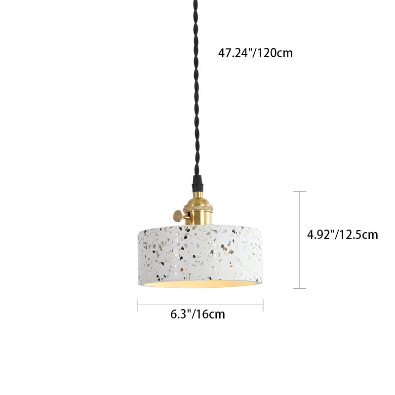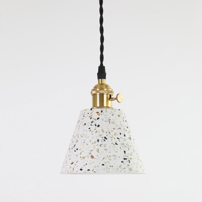 Contemporary Nordic Terrazzo Brass Round Cylinder Conic 1-Light Pendant Light For Dining Room