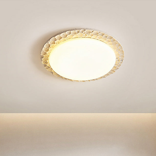Contemporary Nordic Travertine Acrylic Round Sand Dune Texture LED Flush Mount Ceiling Light For Bedroom
