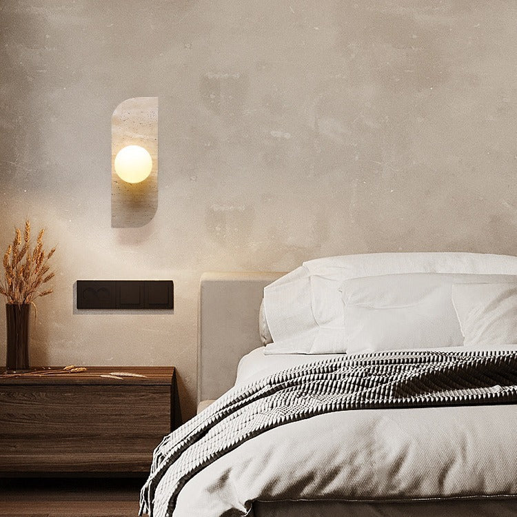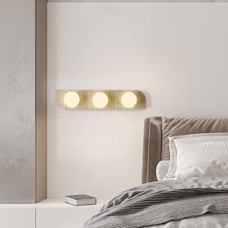 Contemporary Nordic Travertine Glass Strip Ball 1/2/3 Light Wall Sconce Lamp For Hallway