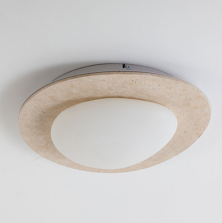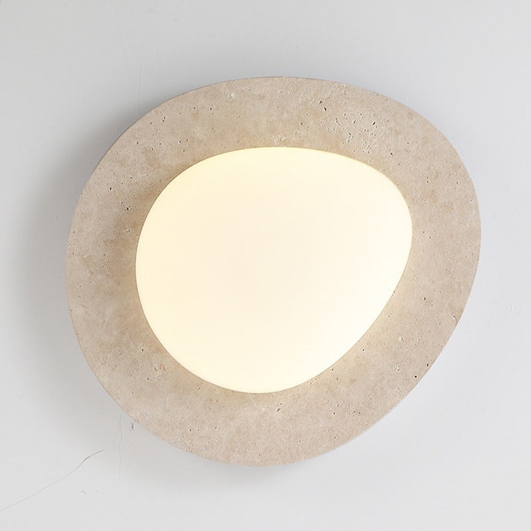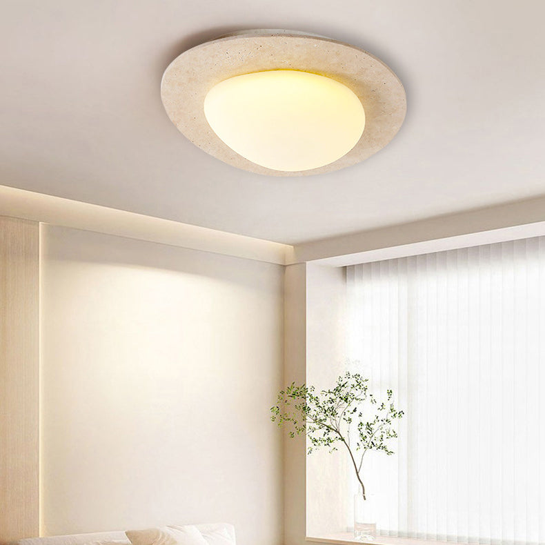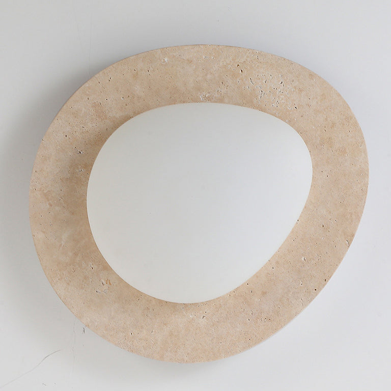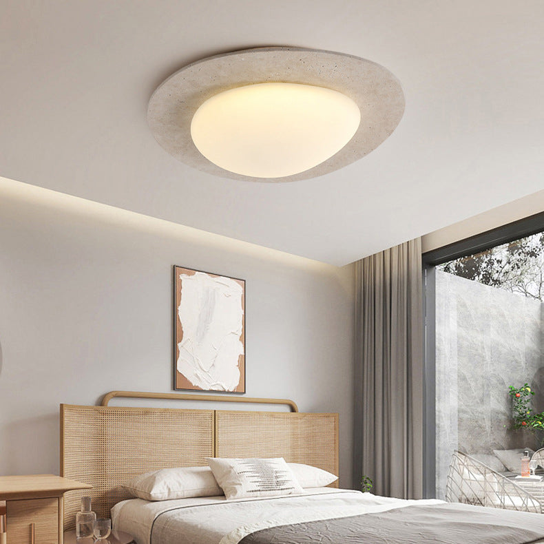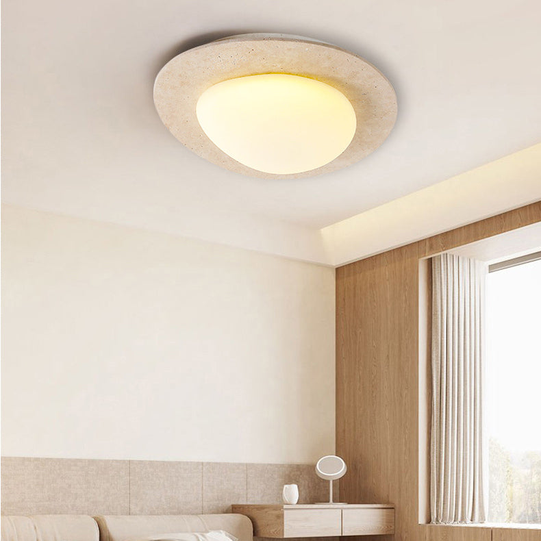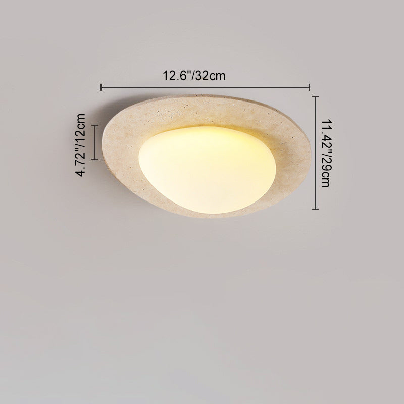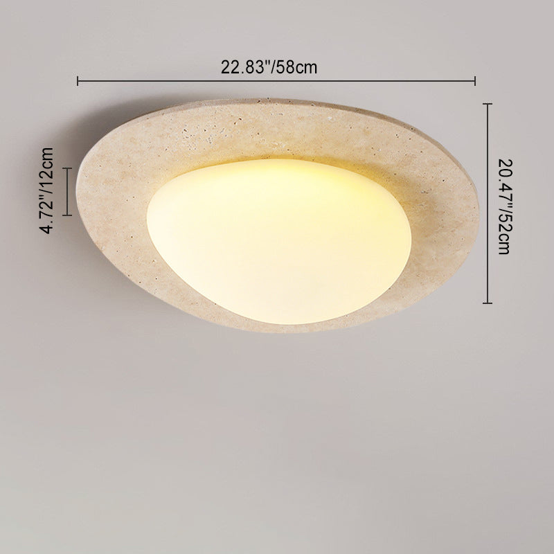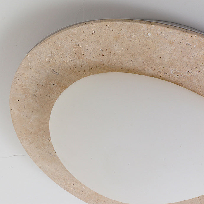 Contemporary Nordic Travertine Plastic Cobblestone Elliptical LED Flush Mount Ceiling Light For Living Room