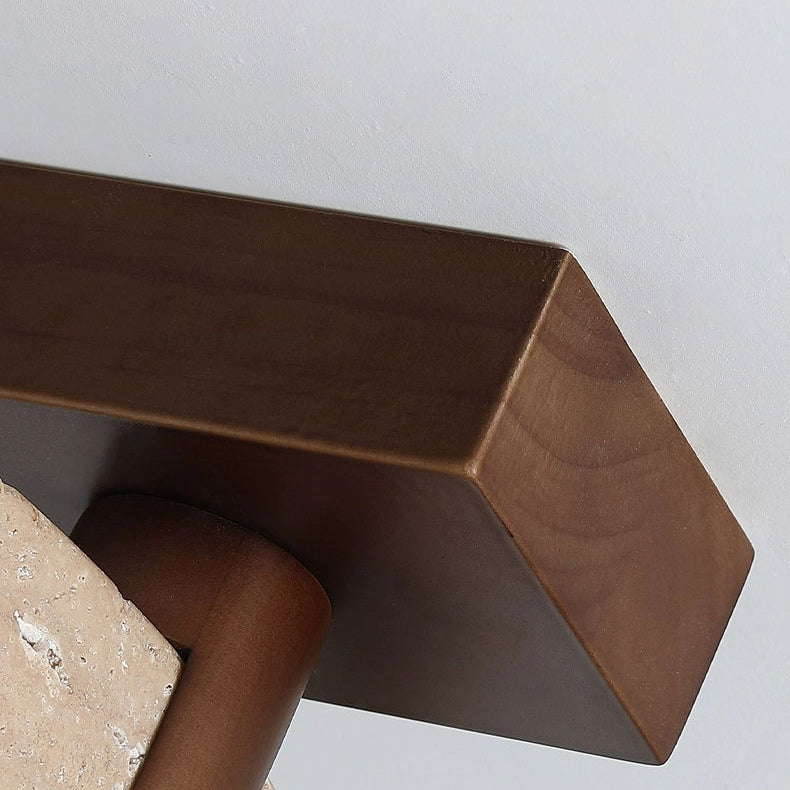 Contemporary Nordic Travertine Walnut Circle Rectangular Base LED Semi-Flush Mount Ceiling Light For Bedroom