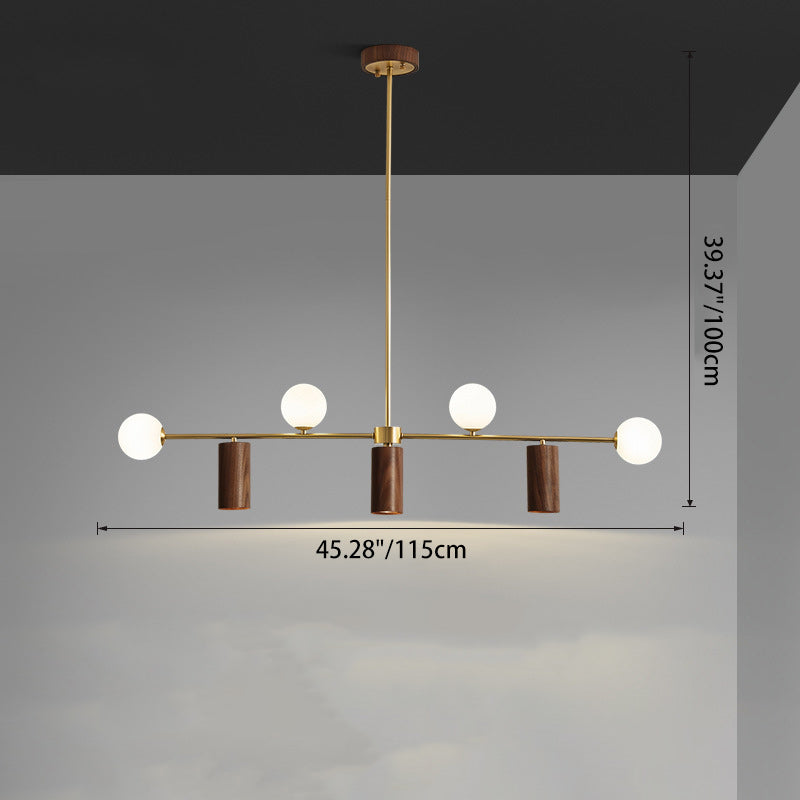 Contemporary Nordic Walnut Brass Glass Ball & Cylinder Spotlight 4-Light LED Chandelier Island Light For Dining Room