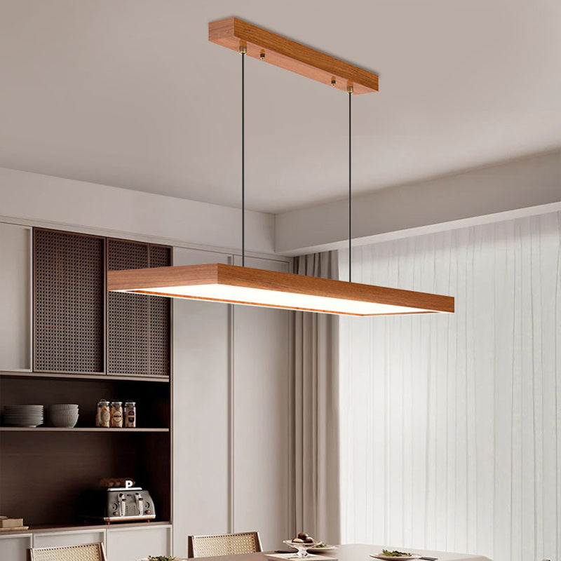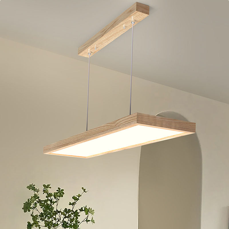 Contemporary Nordic Wood Acrylic Rectangular LED Chandeliers For Dining Room