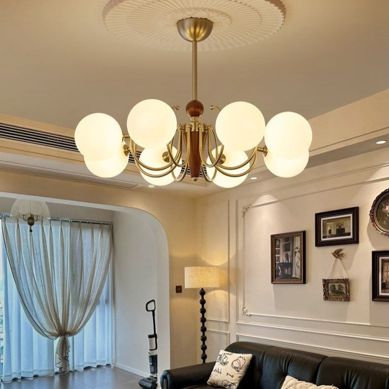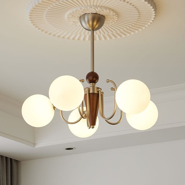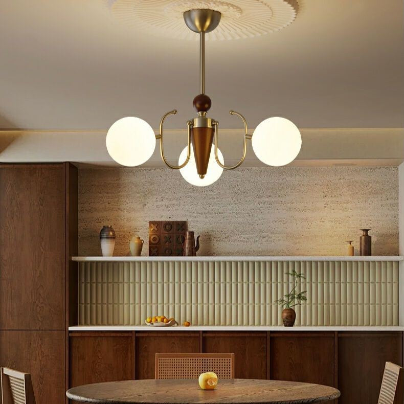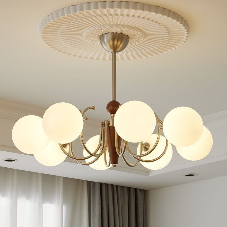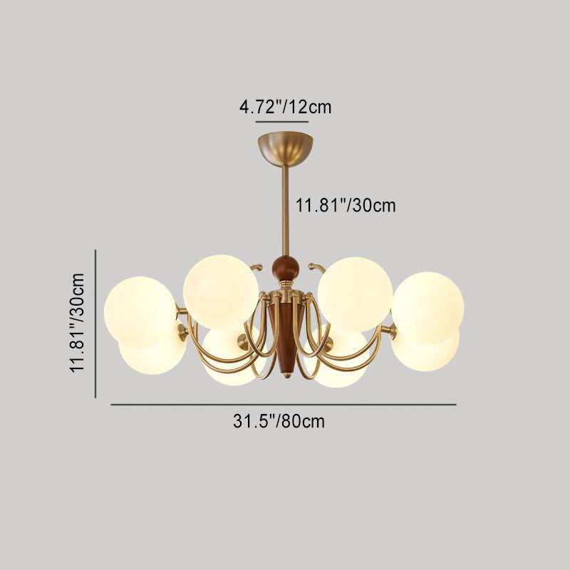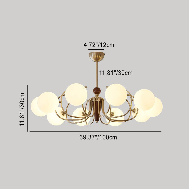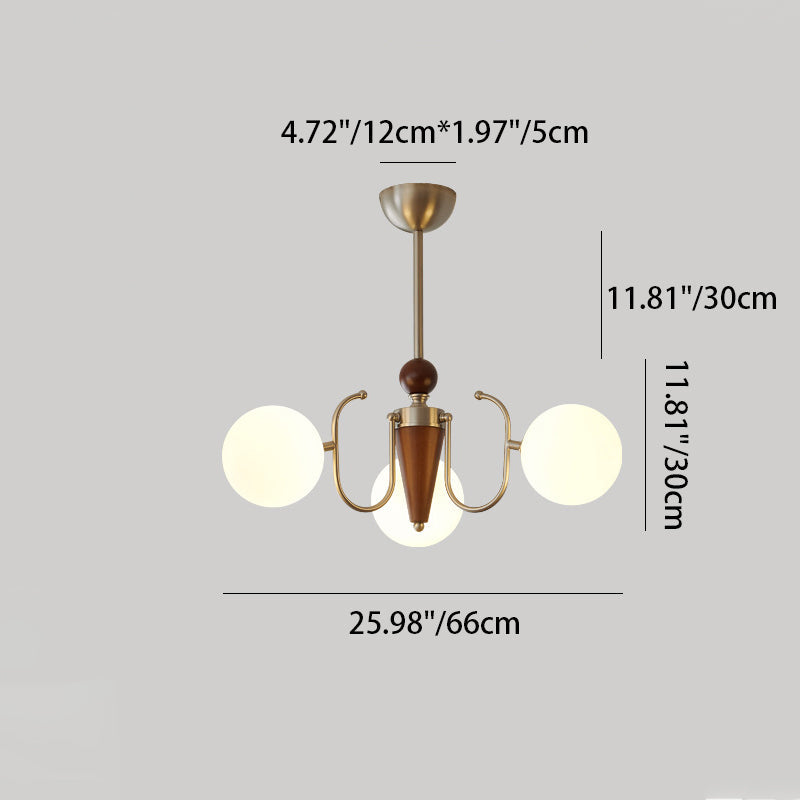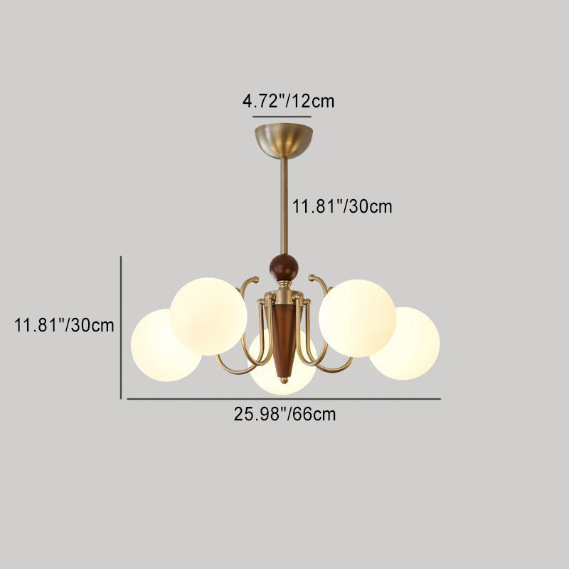 Contemporary Retro Branch Curved Rod Round Ball Magic Bean Wood Iron Frame Glass Shade 3/5/8/10 Light Chandelier For Living Room