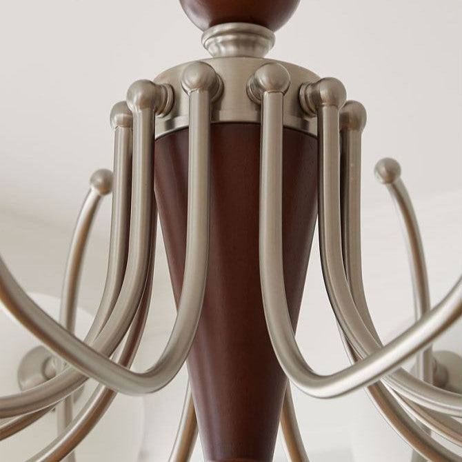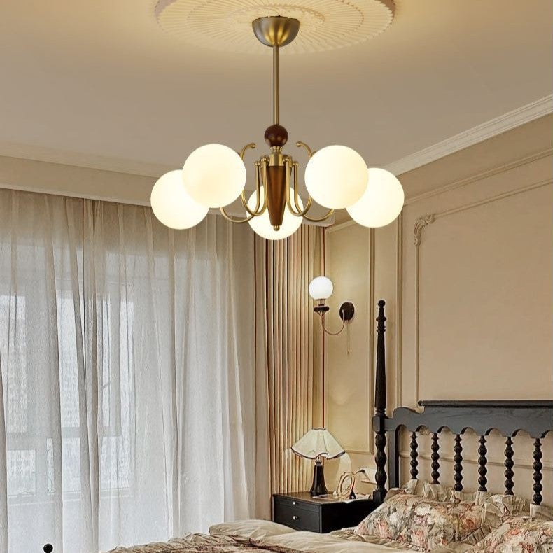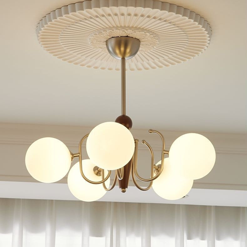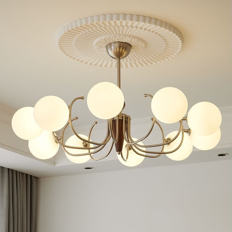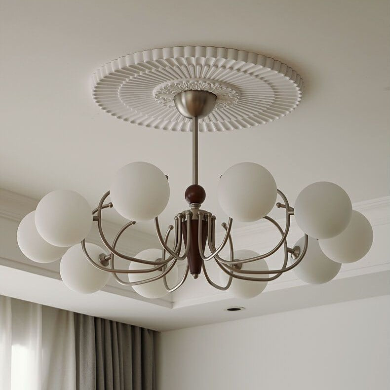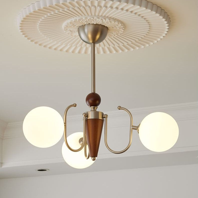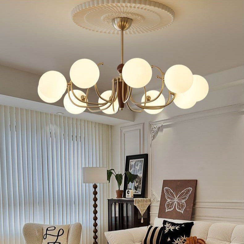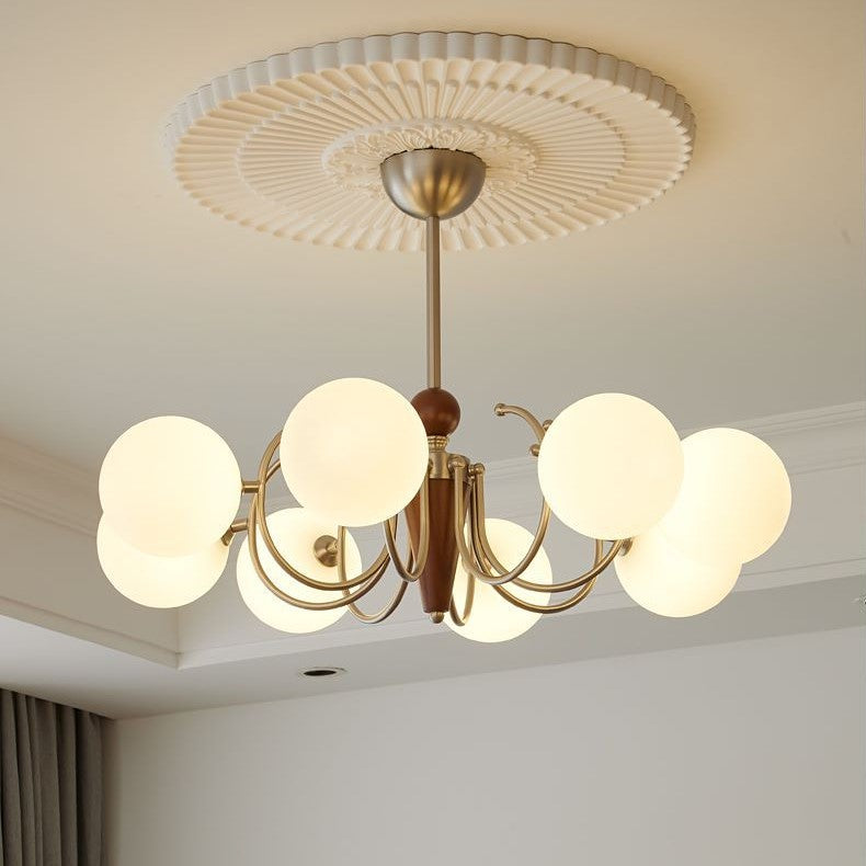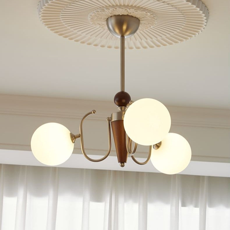 Contemporary Retro Branch Curved Rod Round Ball Magic Bean Wood Iron Frame Glass Shade 3/5/8/10 Light Chandelier For Living Room