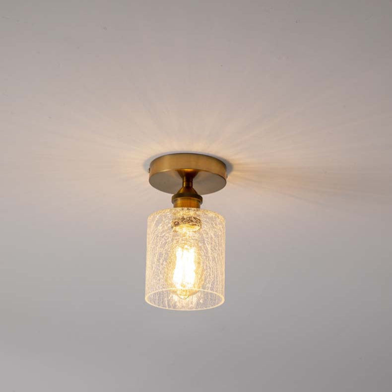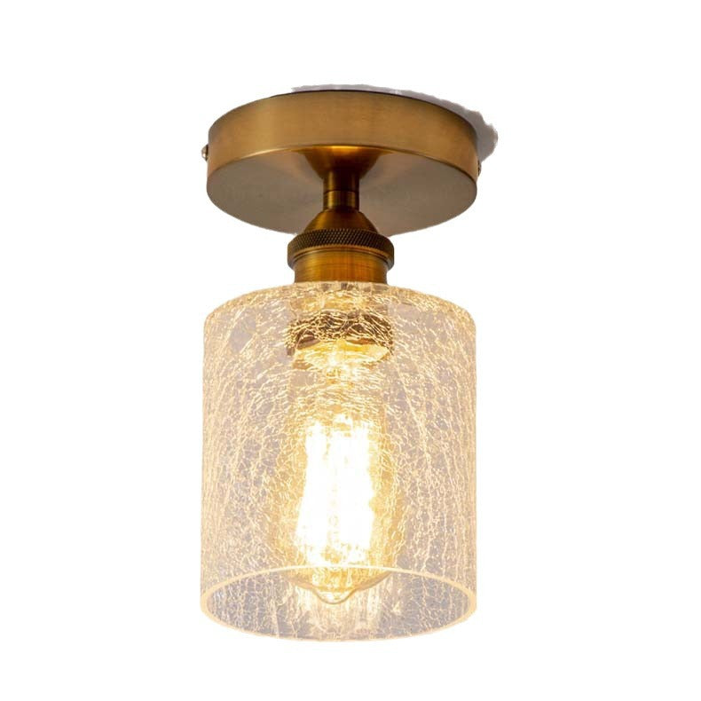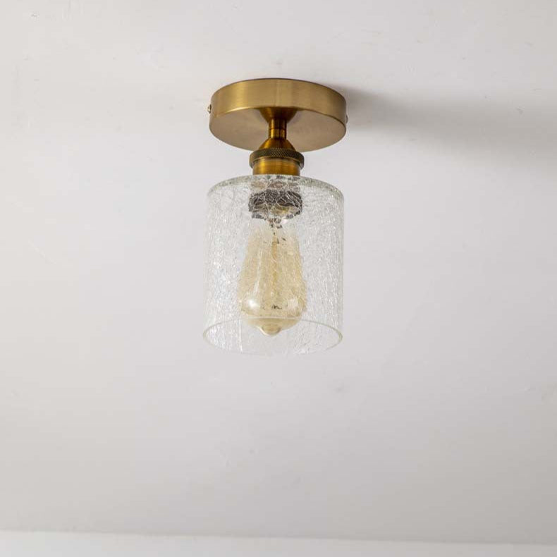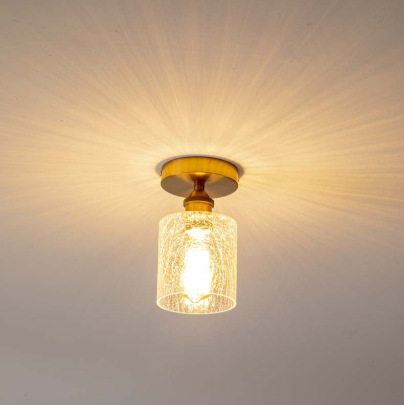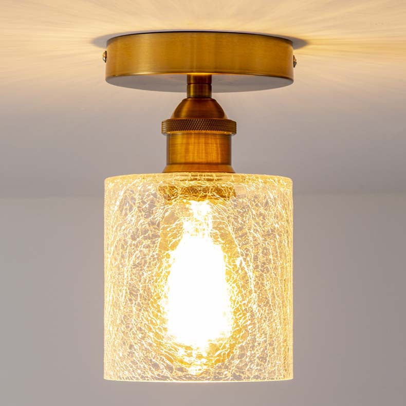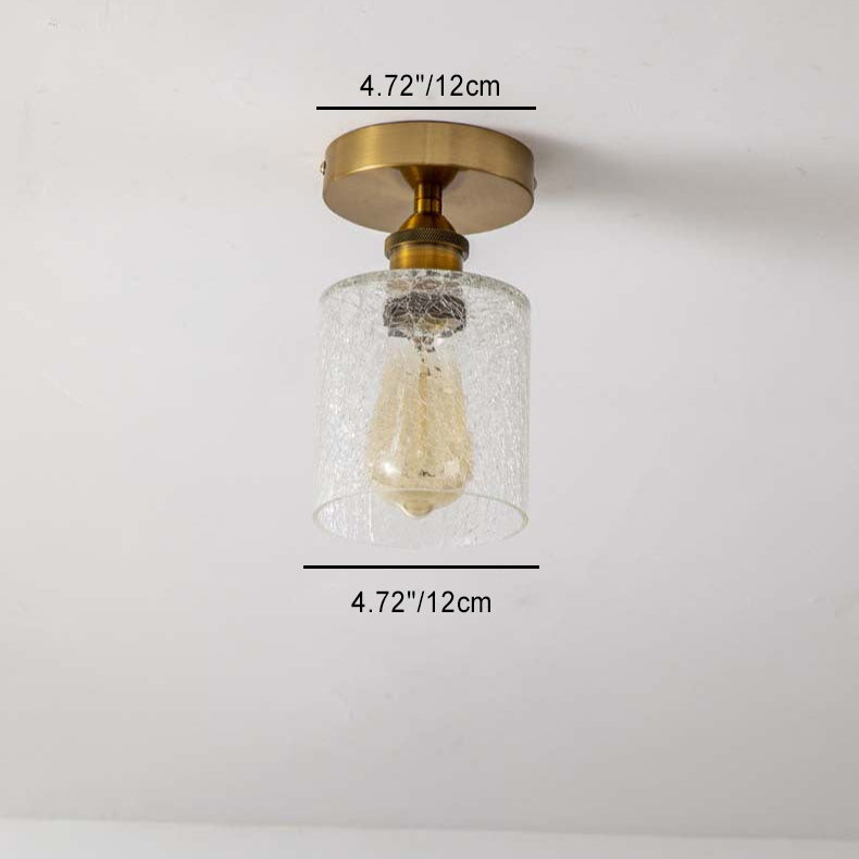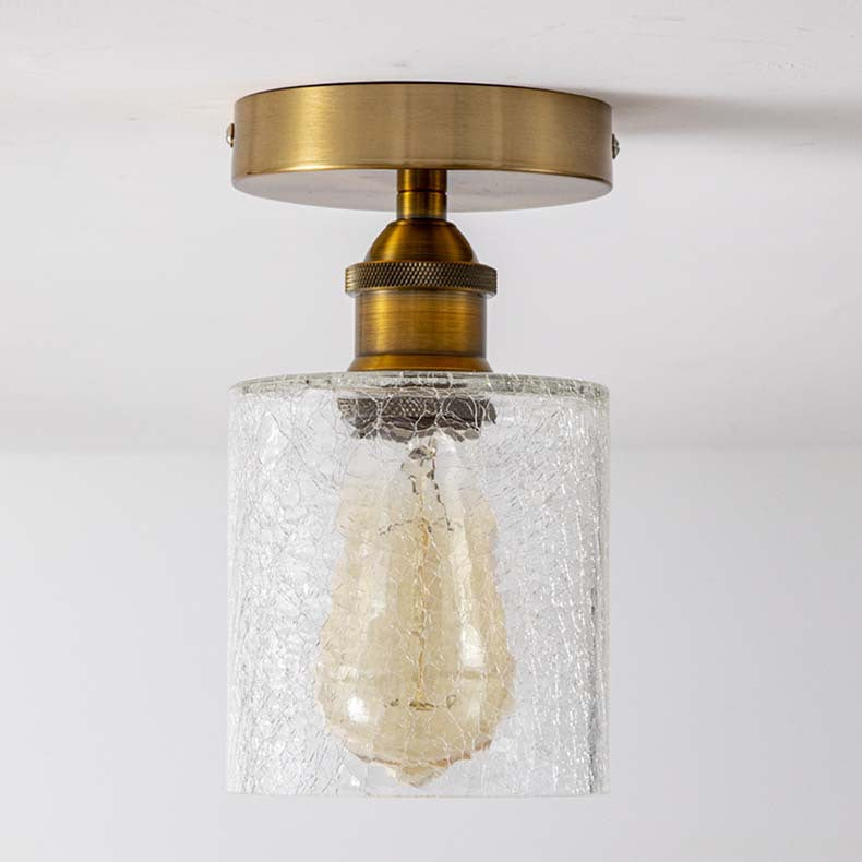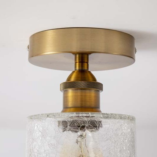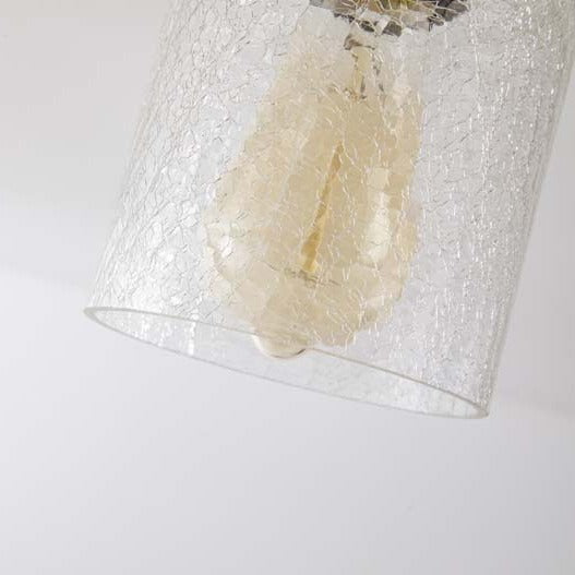 Contemporary Retro Cracked Glass Iron Cylinder 1-Light Semi-Flush Mount Ceiling Light For Living Room