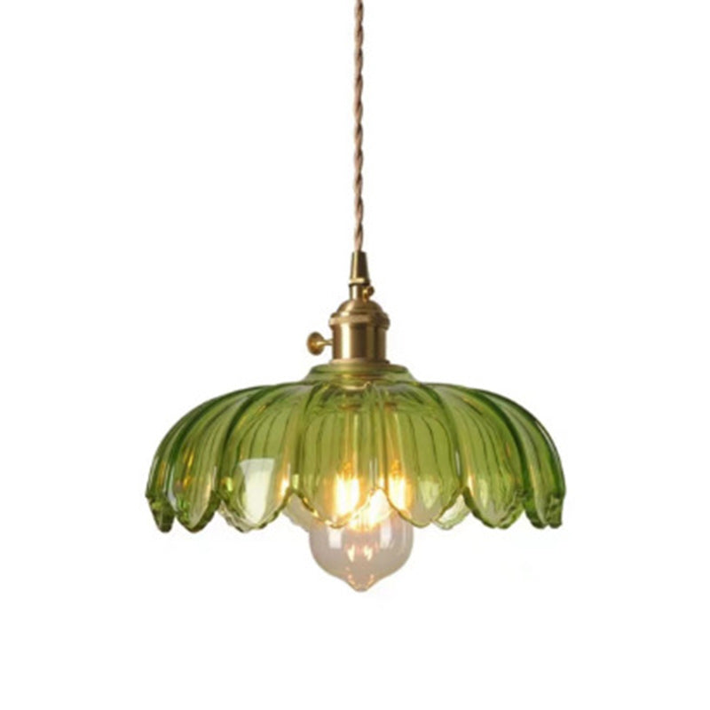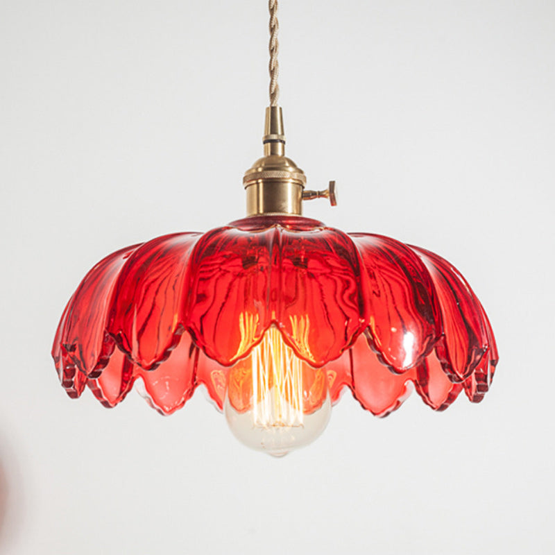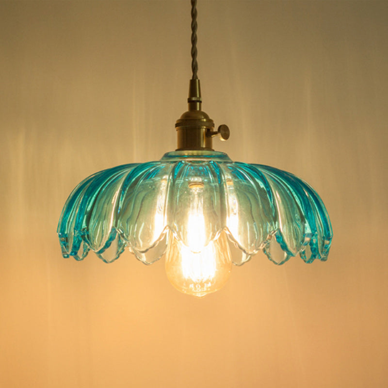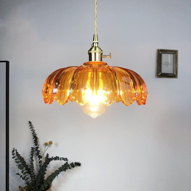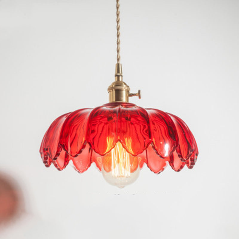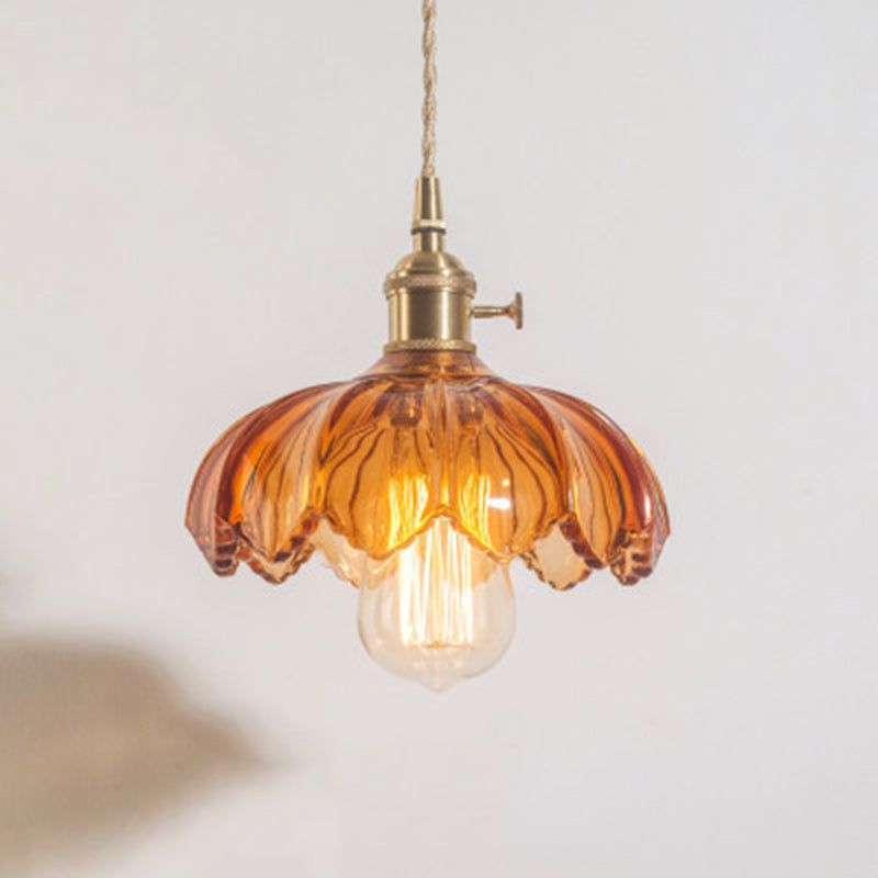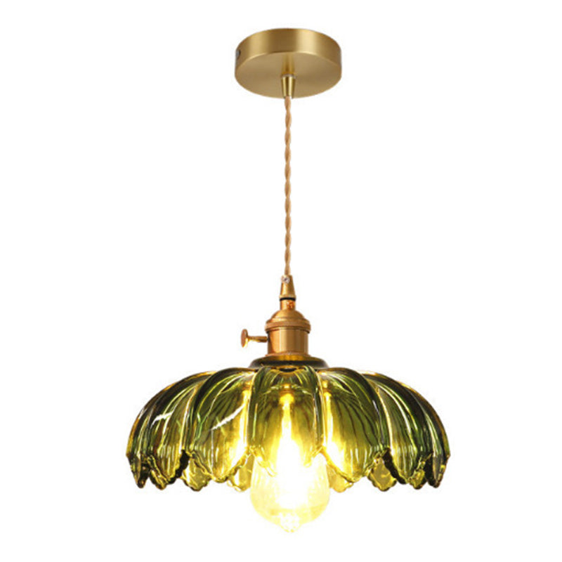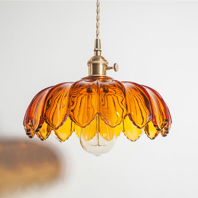 Contemporary Retro Flowers Copper Glass 1-Light Pendant Light For Living Room