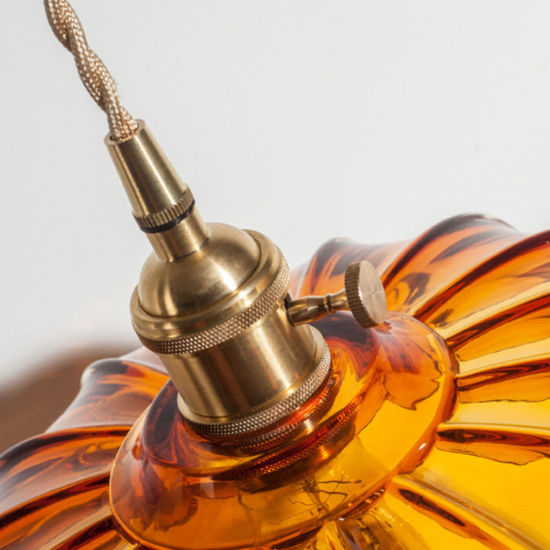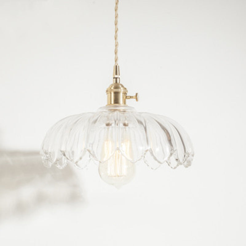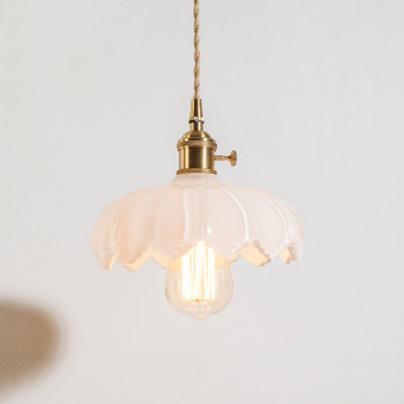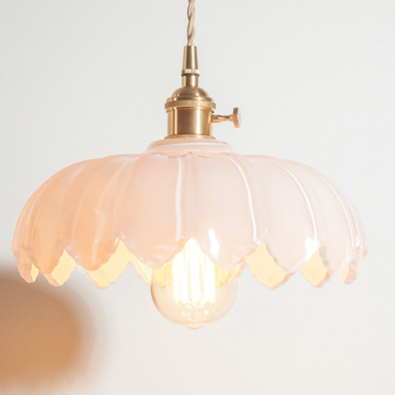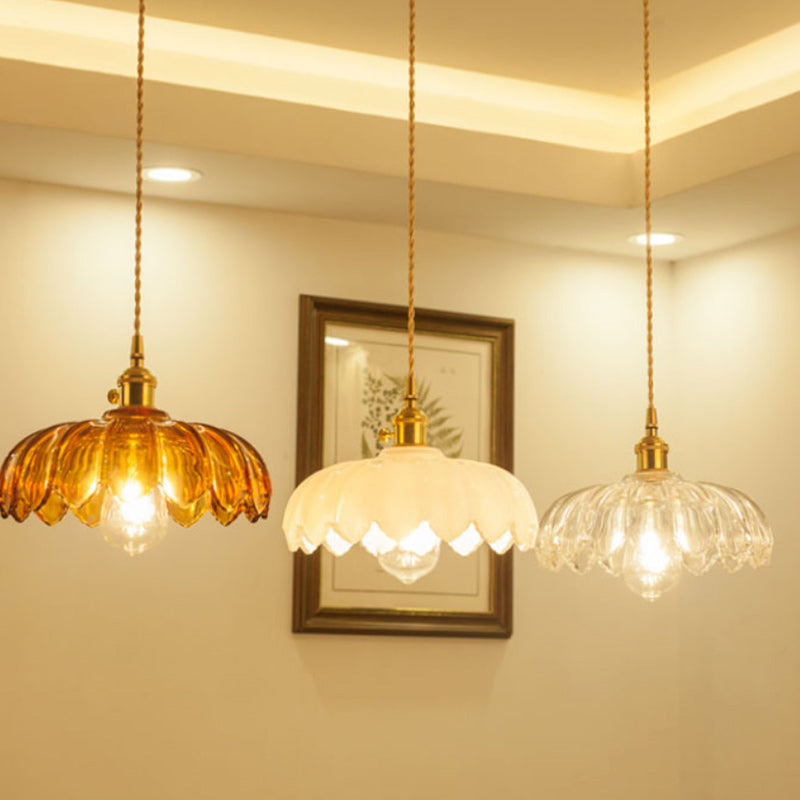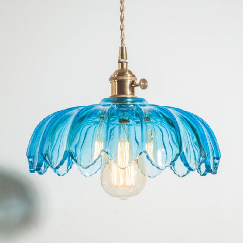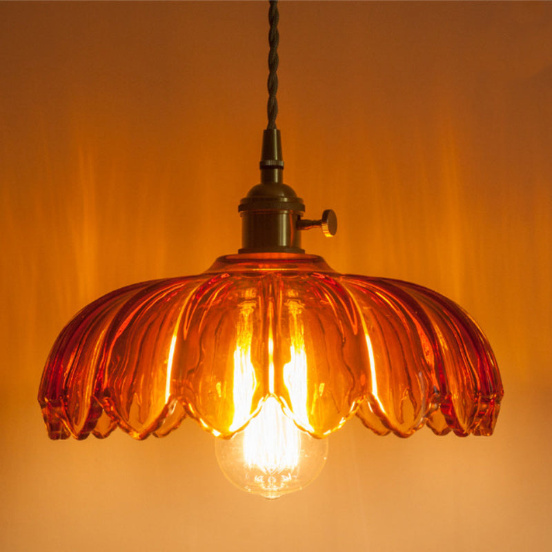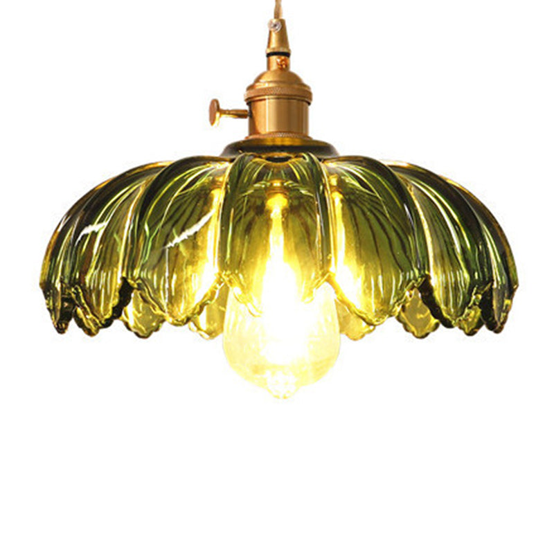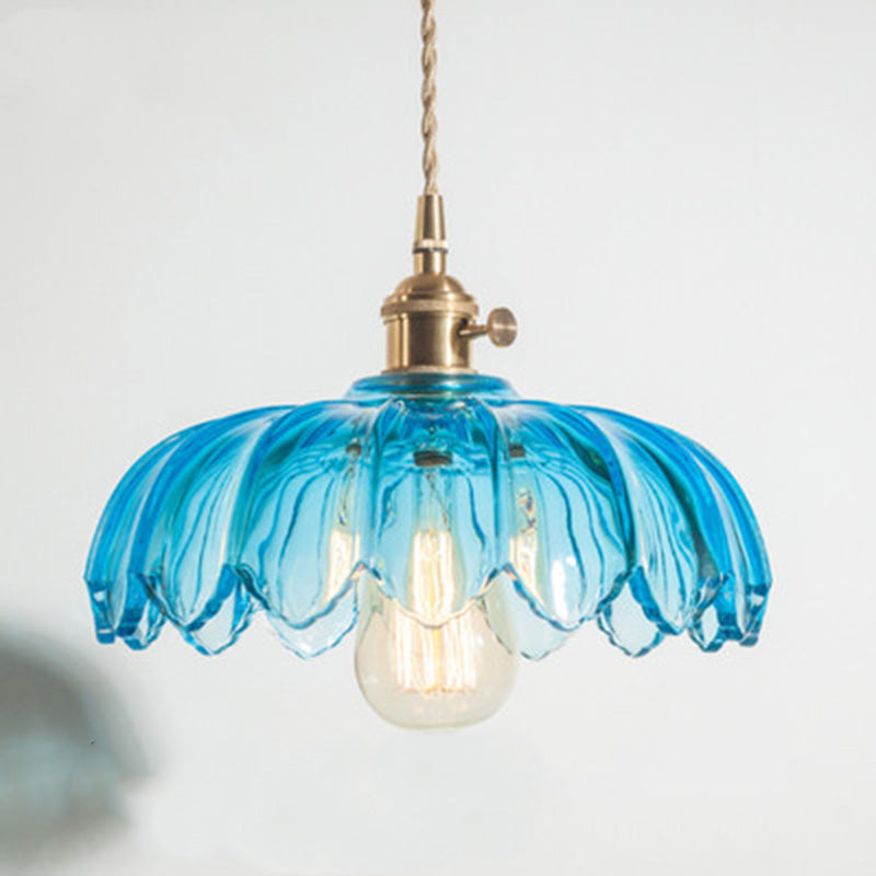 Contemporary Retro Flowers Copper Glass 1-Light Pendant Light For Living Room