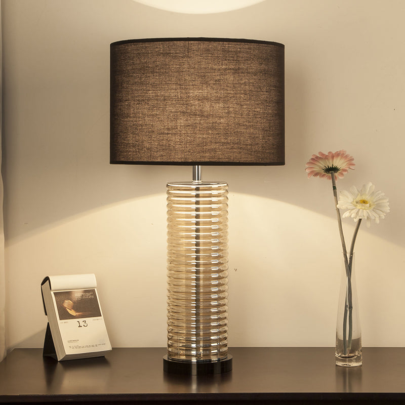 Contemporary Retro Glass Fabric Crystal Cylinder Drum 1-Light Table Lamp For Bedside