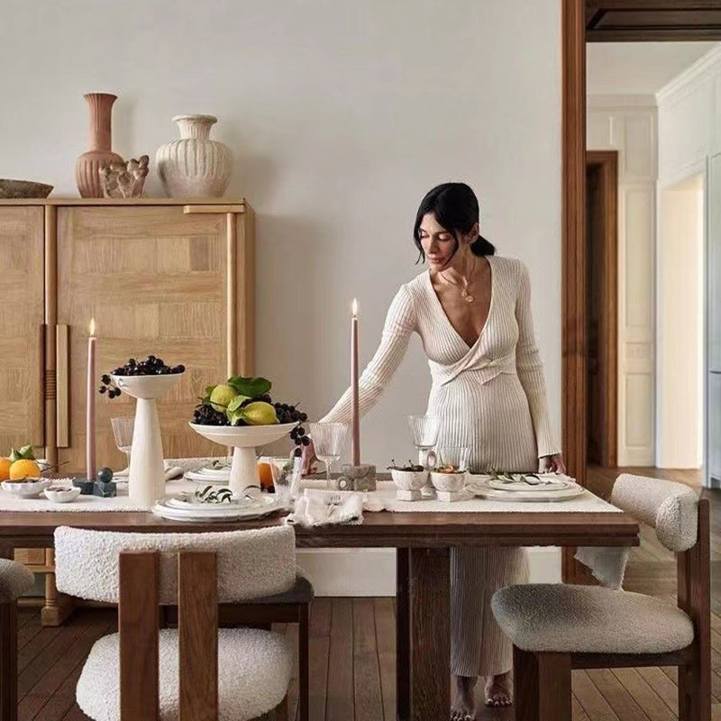 Contemporary Retro Half Round Upholstered Fabric Wood Dining Chair Curved Backrest For Dining Room