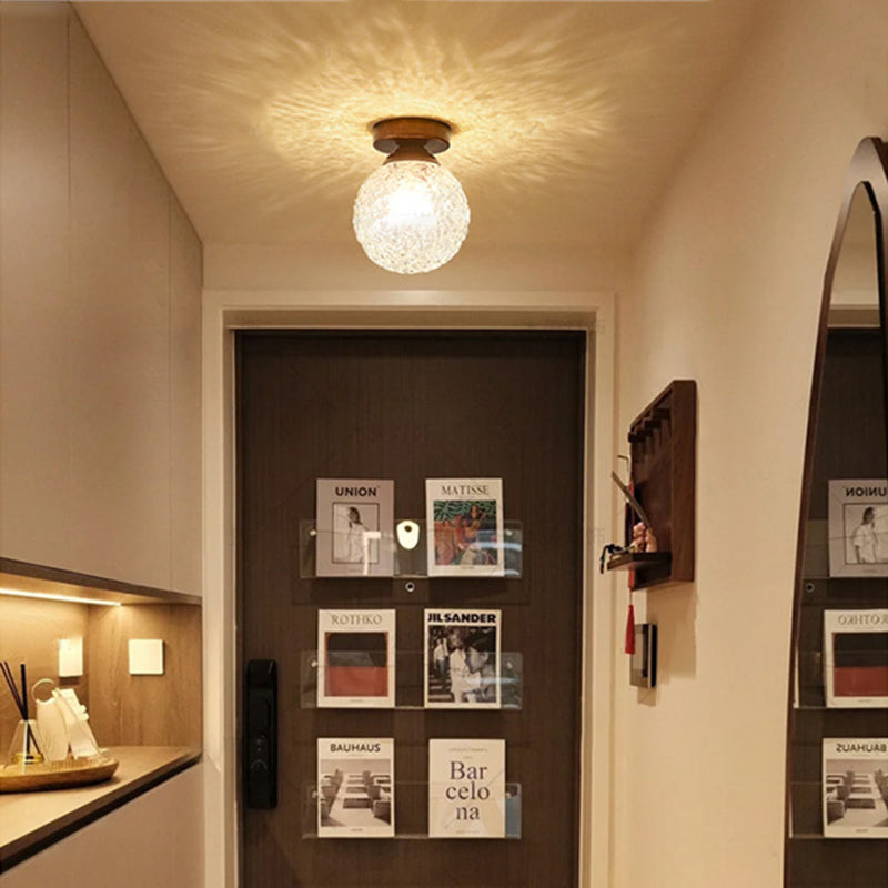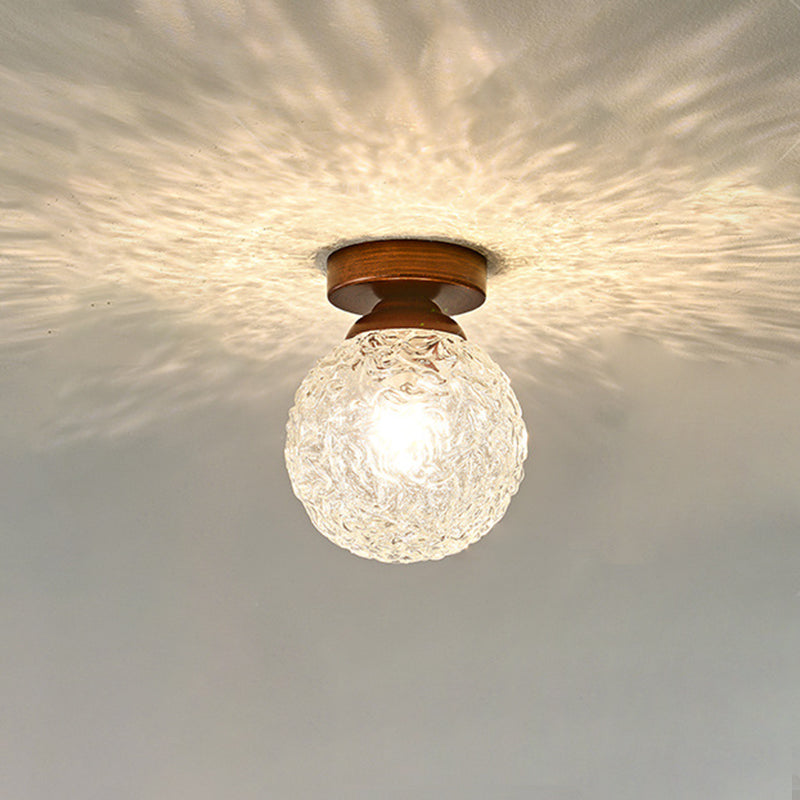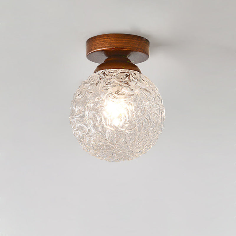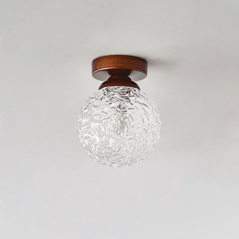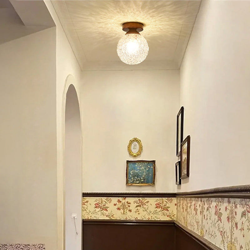 Contemporary Retro Hardware Glass Ball Ice Crack 1-Light Semi-Flush Mount Ceiling Light For Hallway