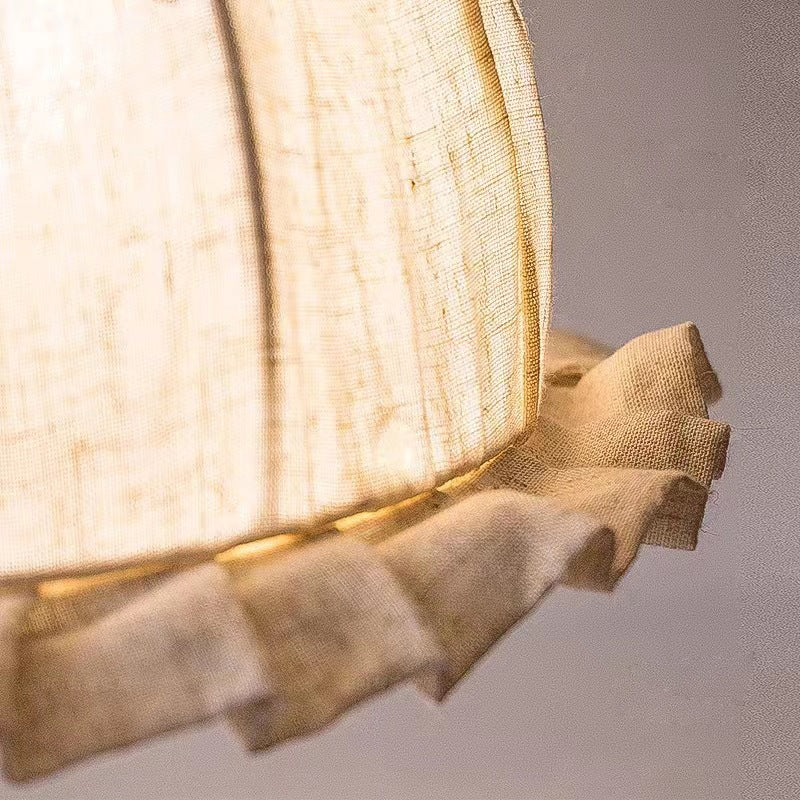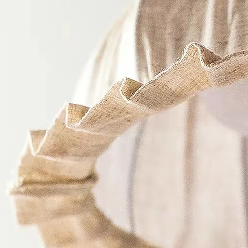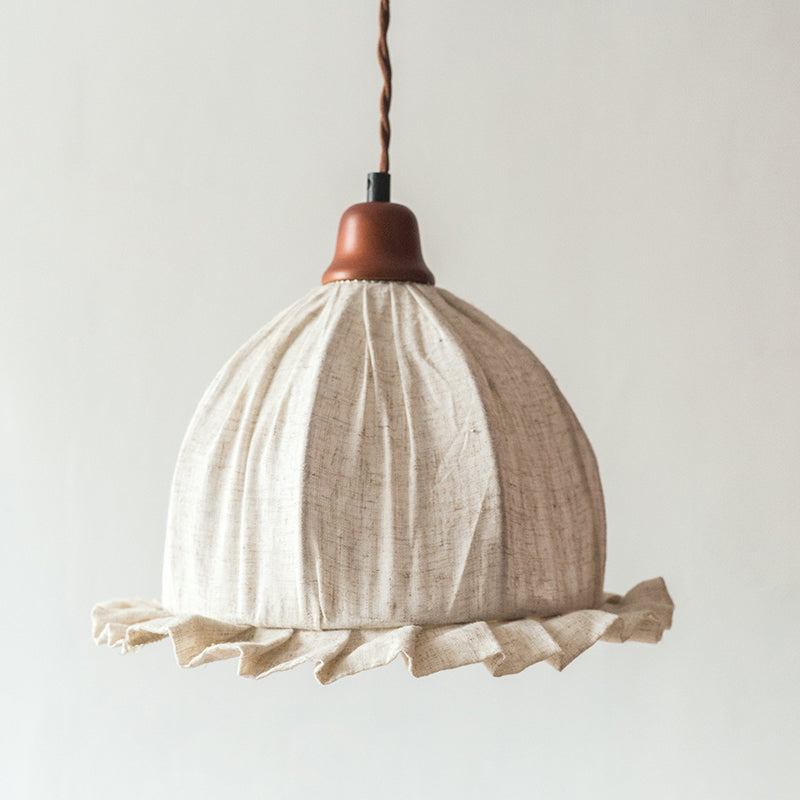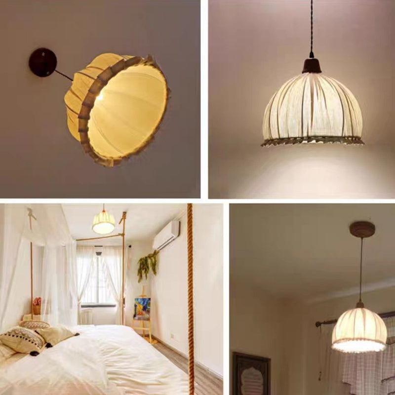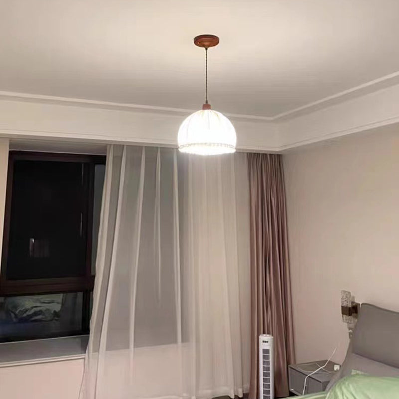Contemporary Retro Hemispherical Lace Solid Wood Fabric 1-Light Pendant Light For Bedroom