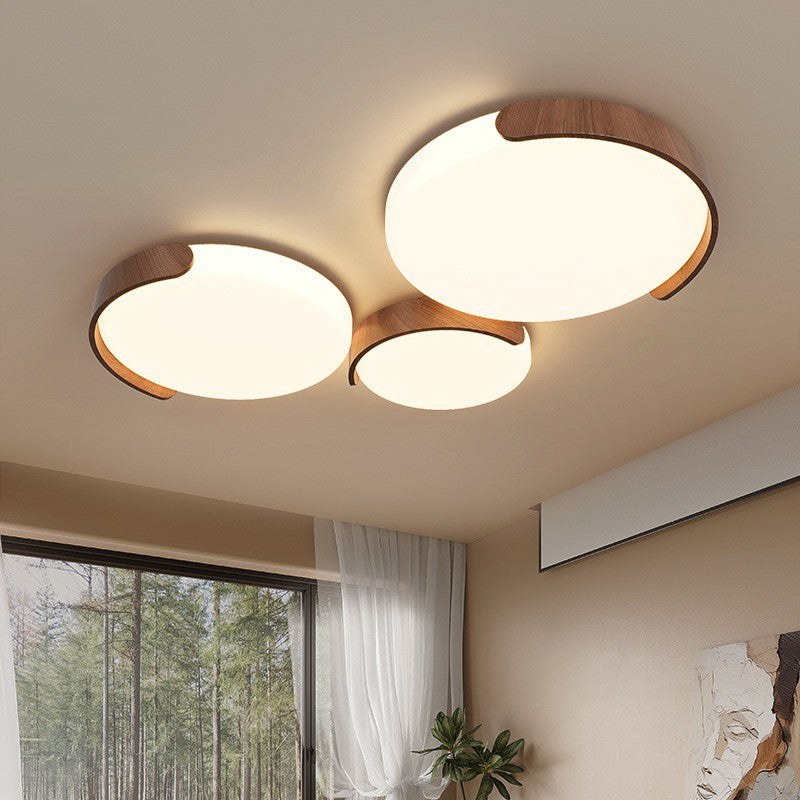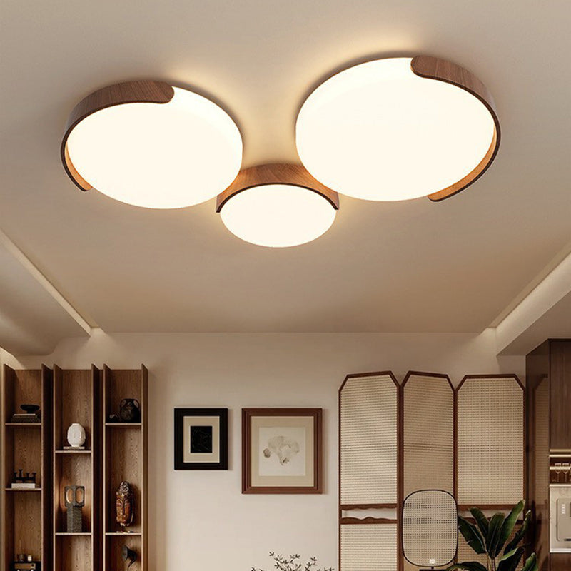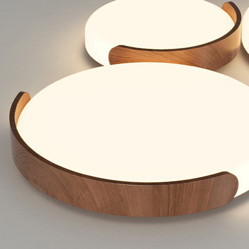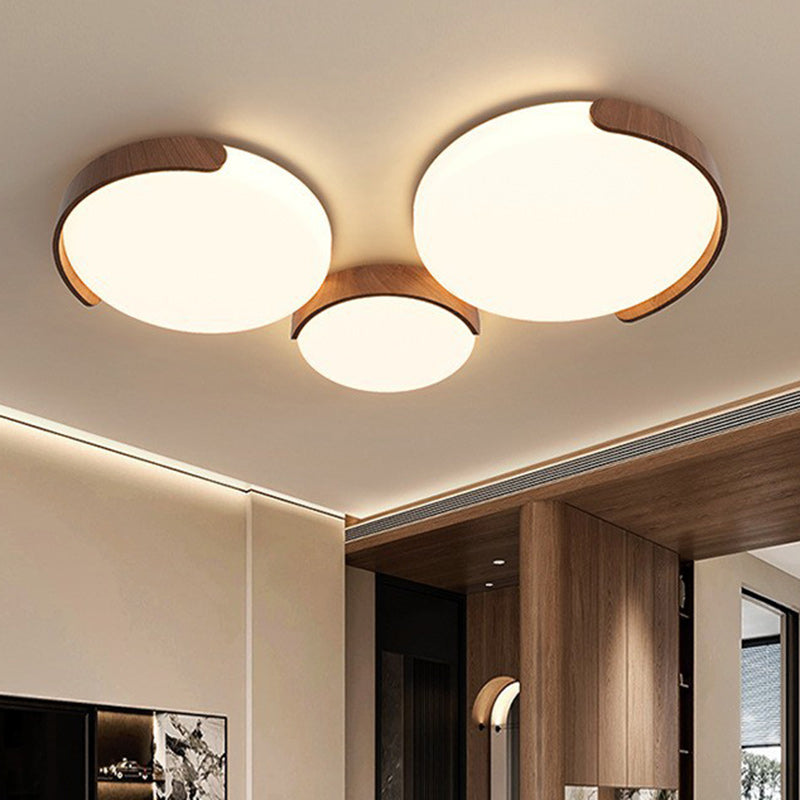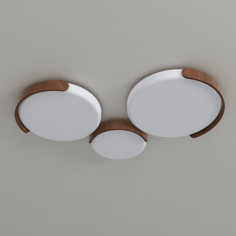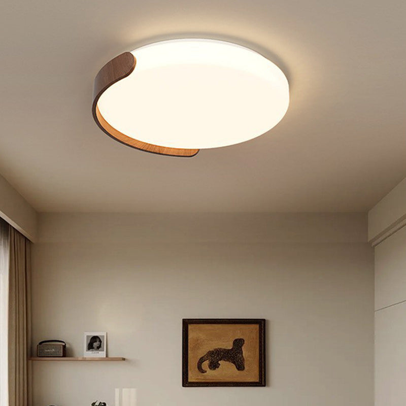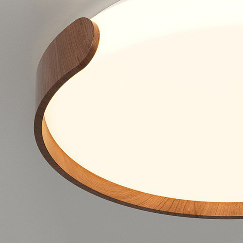 Bring warmth and style to your home with this contemporary retro flush mount ceiling light, featuring a round silhouette in a walnut finish with water transfer wood grain. Crafted from iron and ABS, it delivers full-spectrum LED lighting that's gentle on the eyes—ideal for living rooms, bedrooms, and children's spaces.