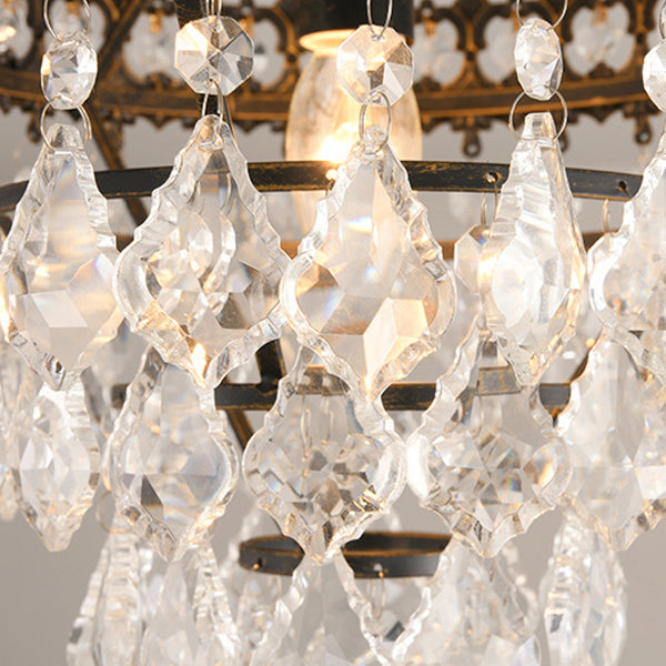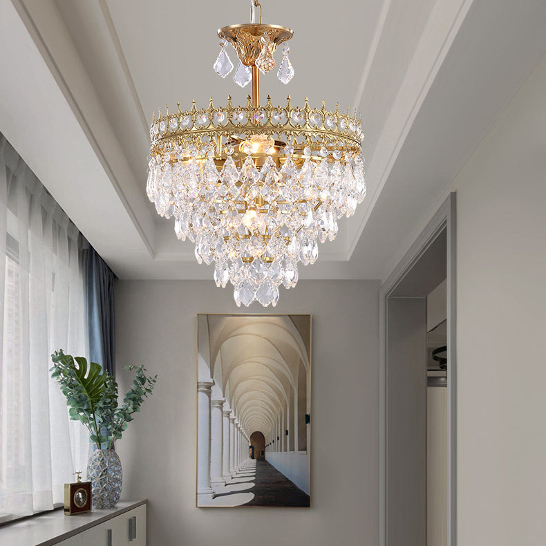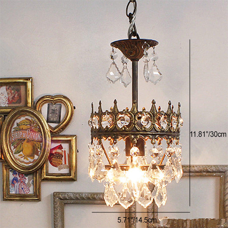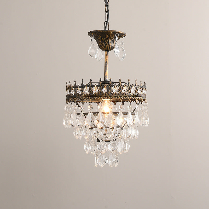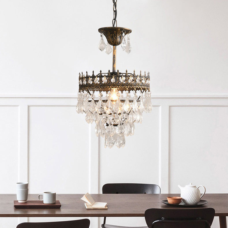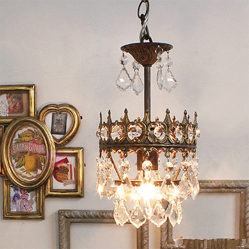Contemporary Retro Iron Crystal Teardrop Crown Shaped 1/4/6 Light Chandelier For Living Room