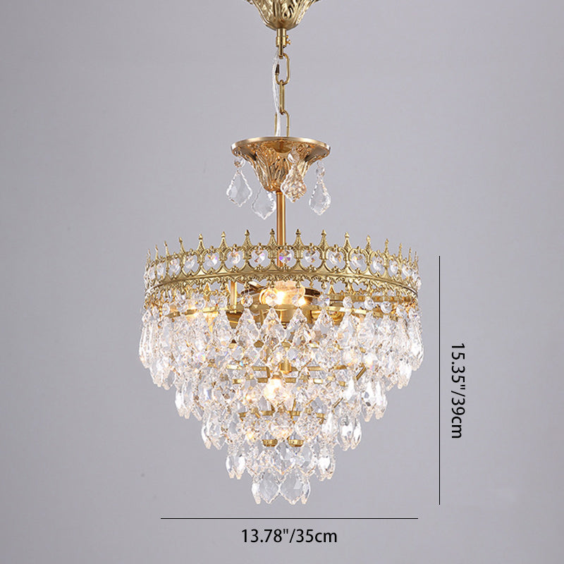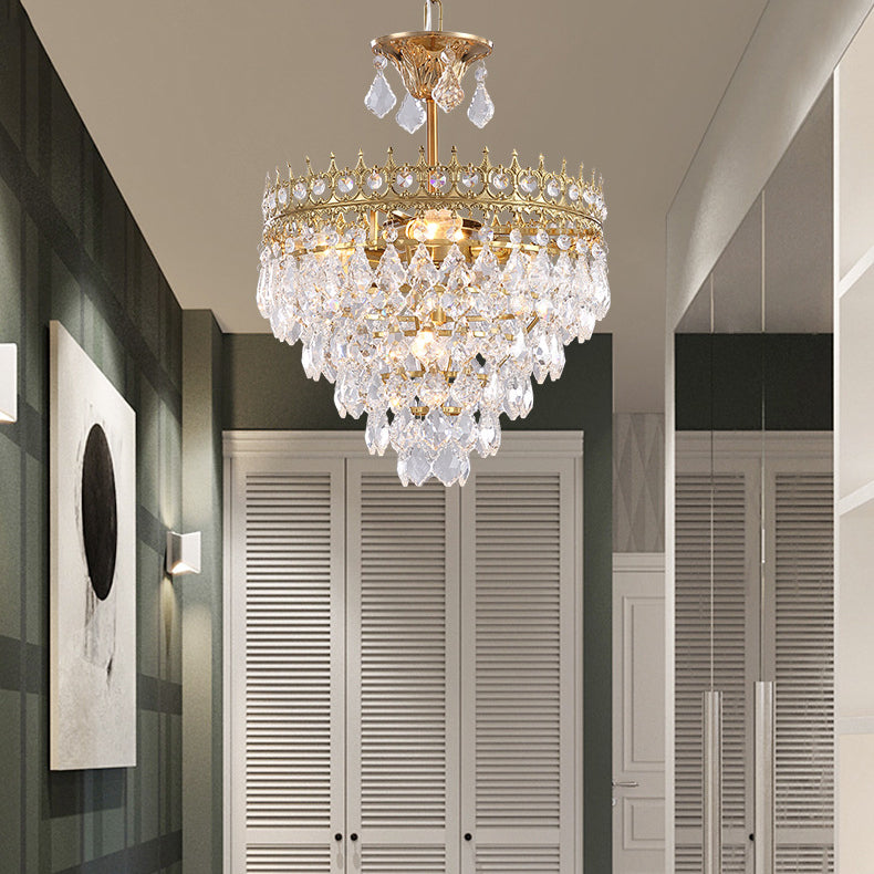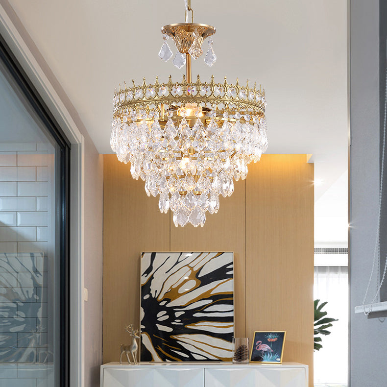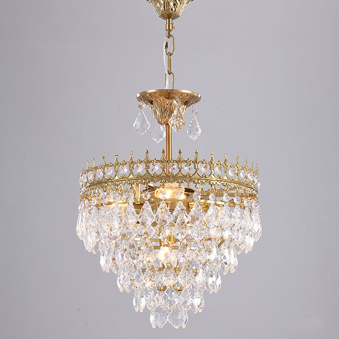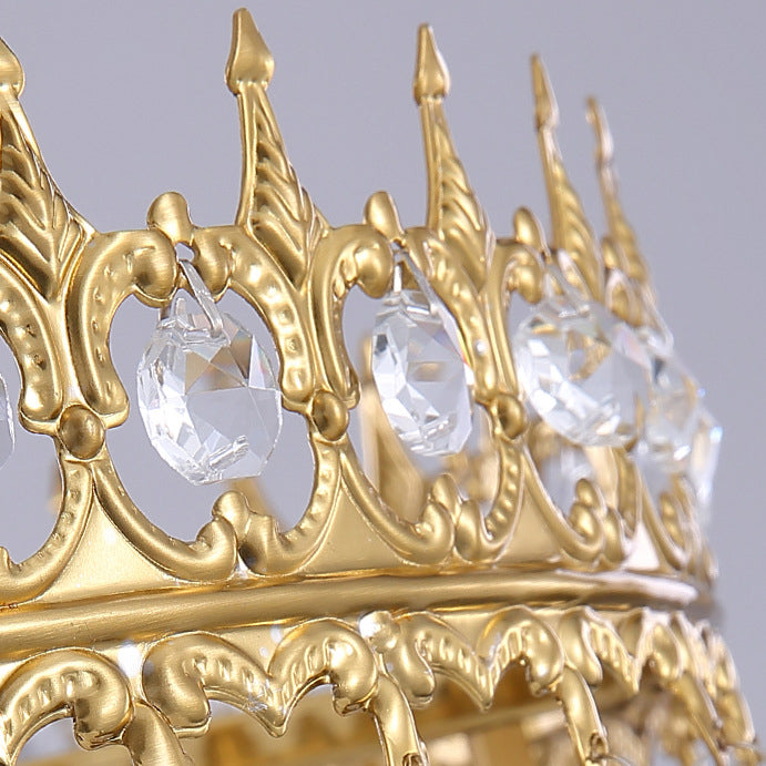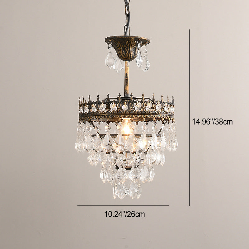 Contemporary Retro Iron Crystal Teardrop Crown Shaped 1/4/6 Light Chandelier For Living Room
