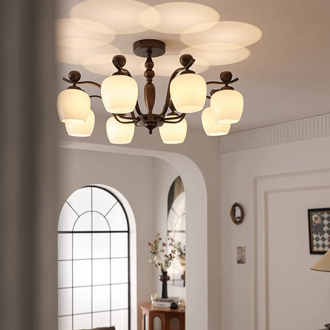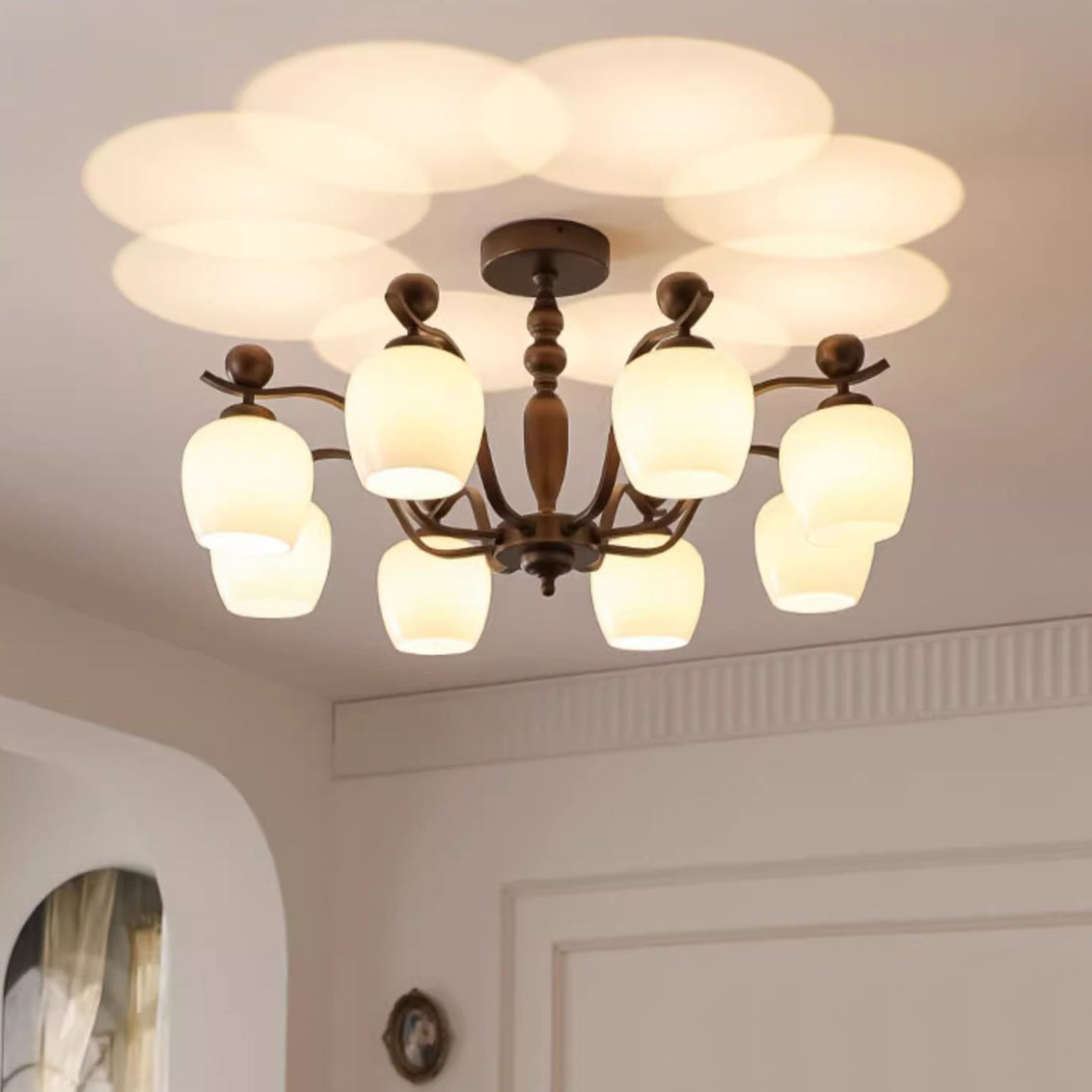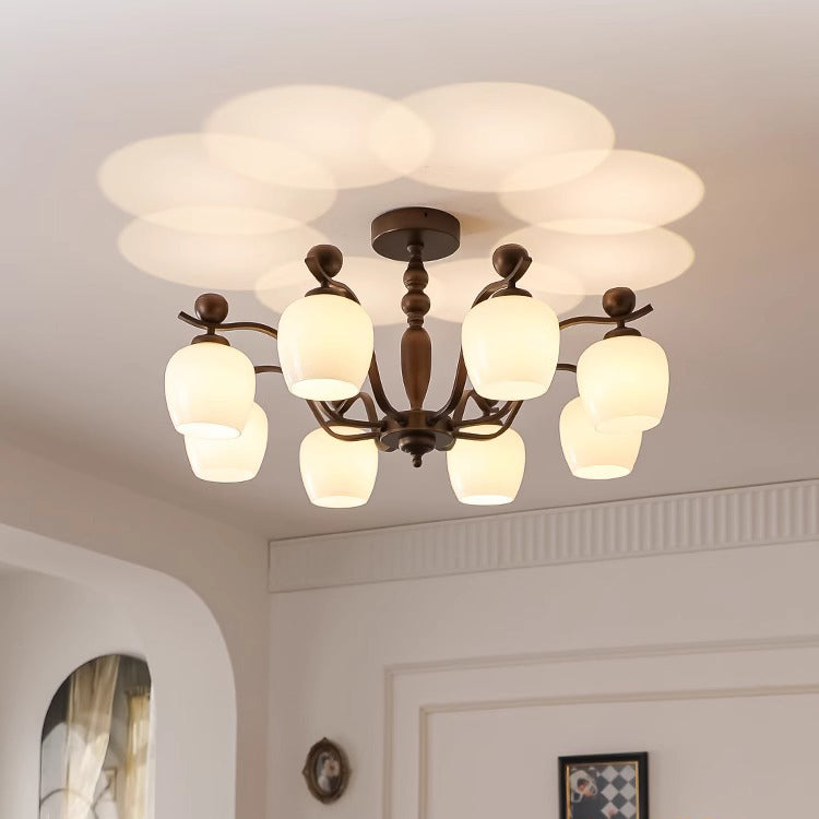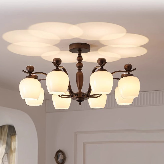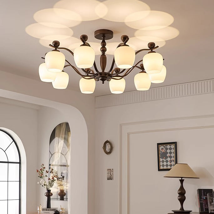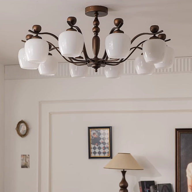 This chandelier, featuring a distinctive branch bent rod and round cup shape, brings a touch of vintage elegance to your space. Ideal for contemporary living rooms, it boasts a unique design that makes it a standout piece.