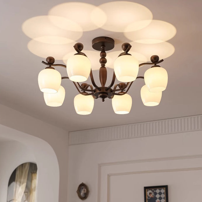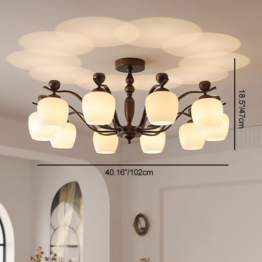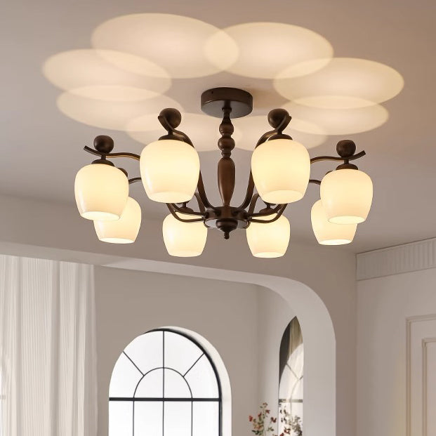 Contemporary Retro Iron Glass Branch Bent Rod Round Cup Shaped 6/8/10-Light Chandelier For Living Room