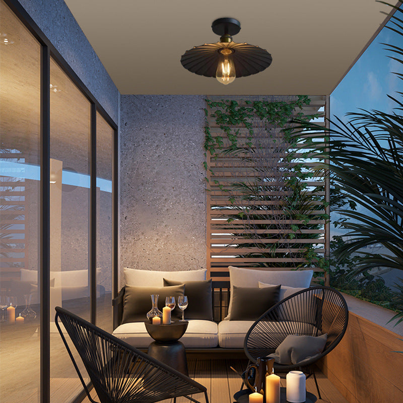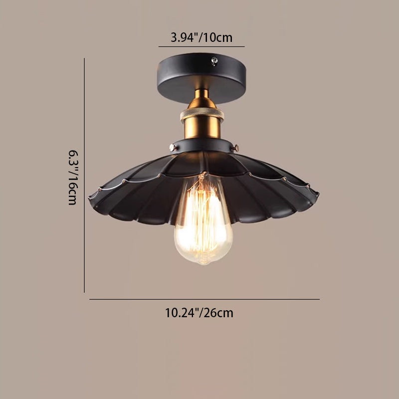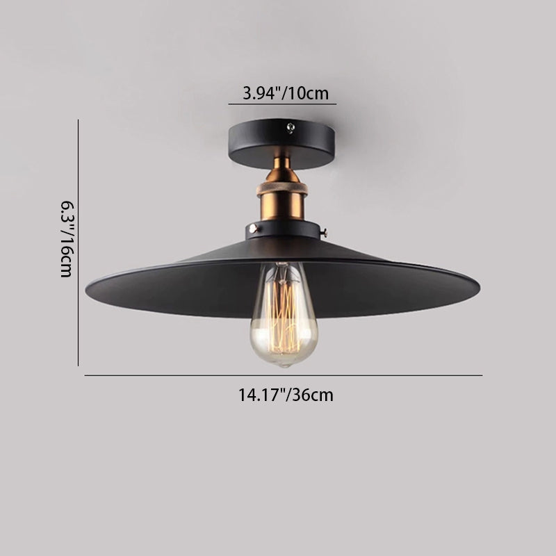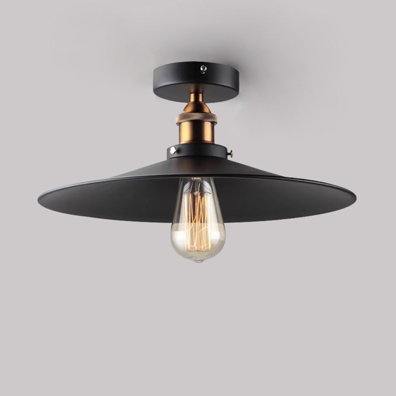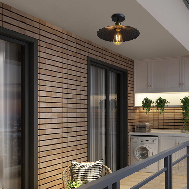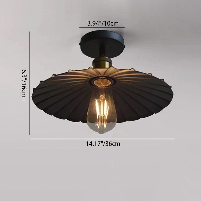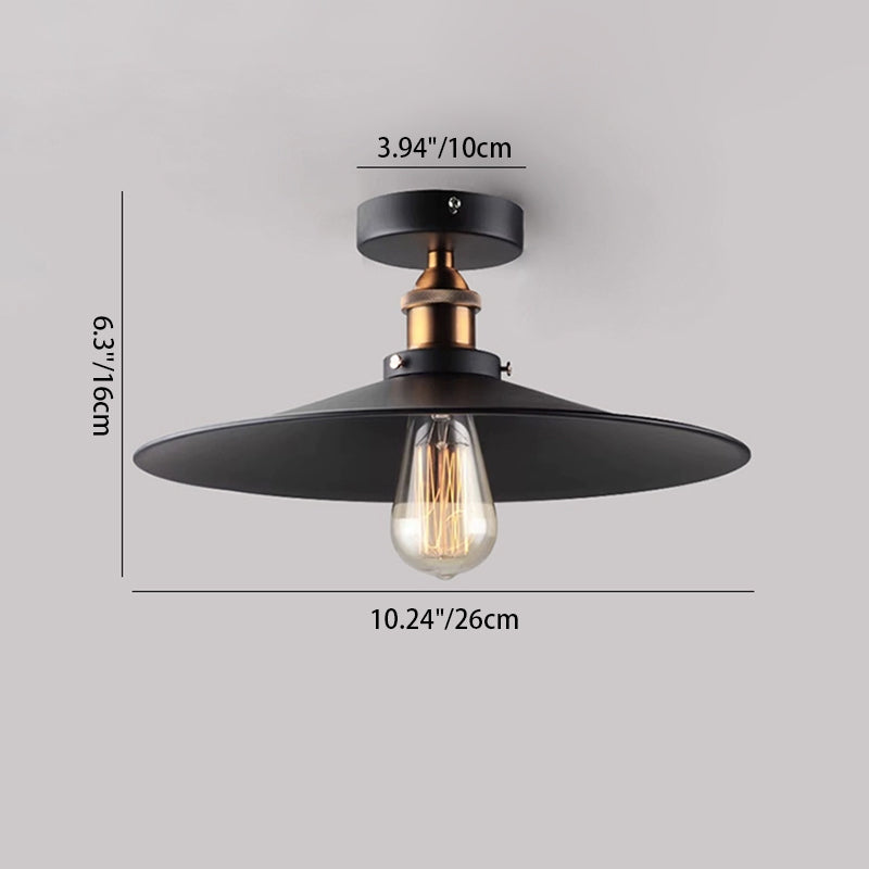 Contemporary Retro Iron Glass Cone Umbrella 1-Light Semi-Flush Mount Ceiling Light For Hallway