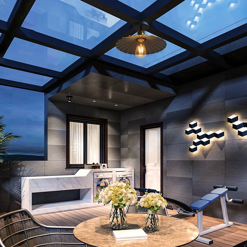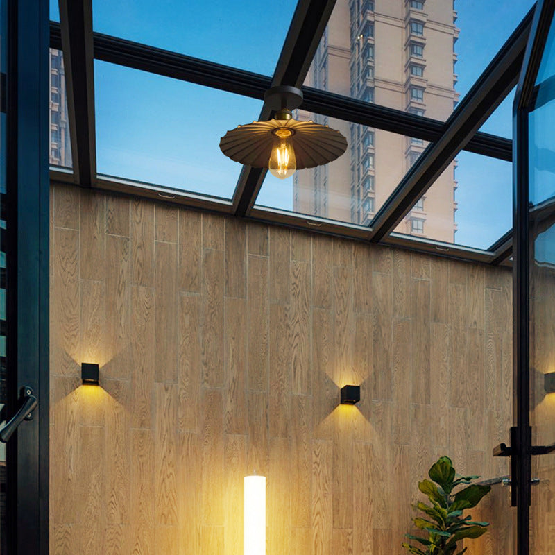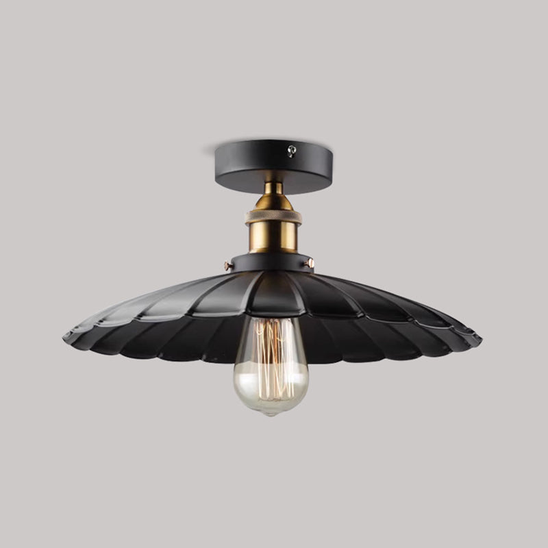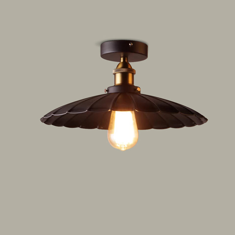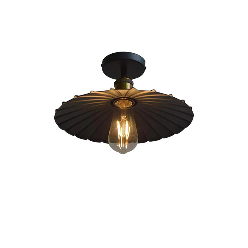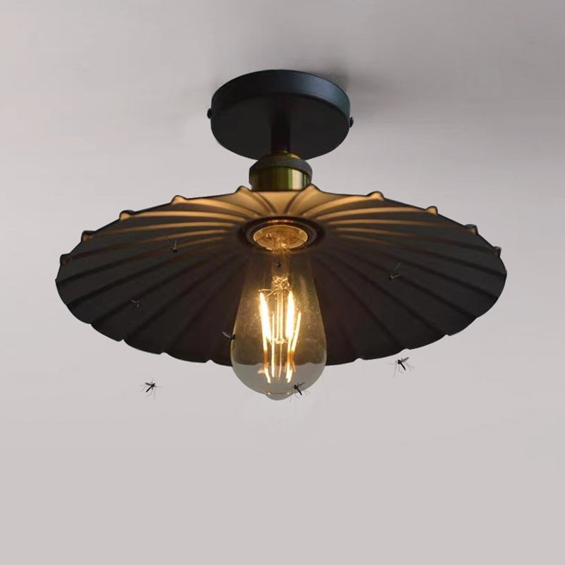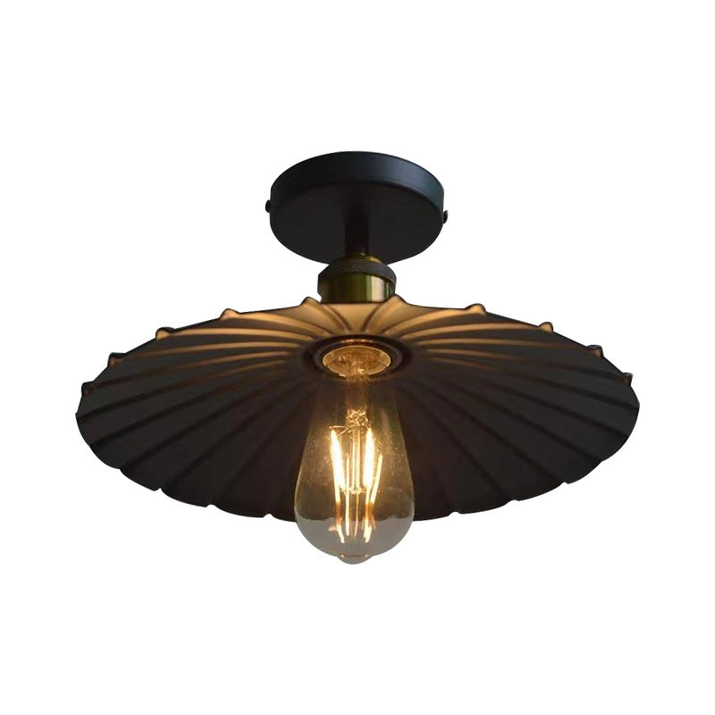 Contemporary Retro Iron Glass Cone Umbrella 1-Light Semi-Flush Mount Ceiling Light For Hallway