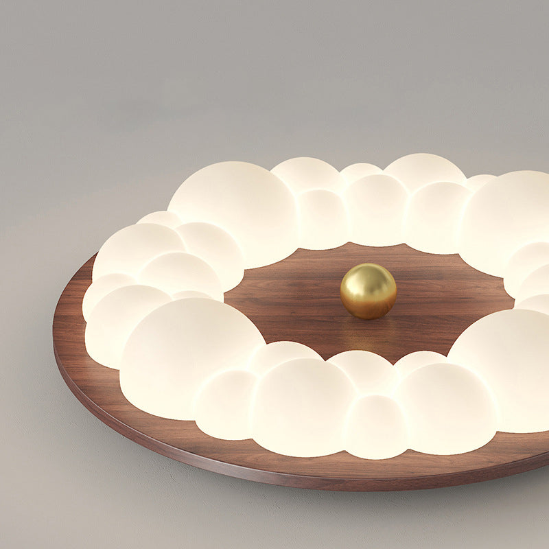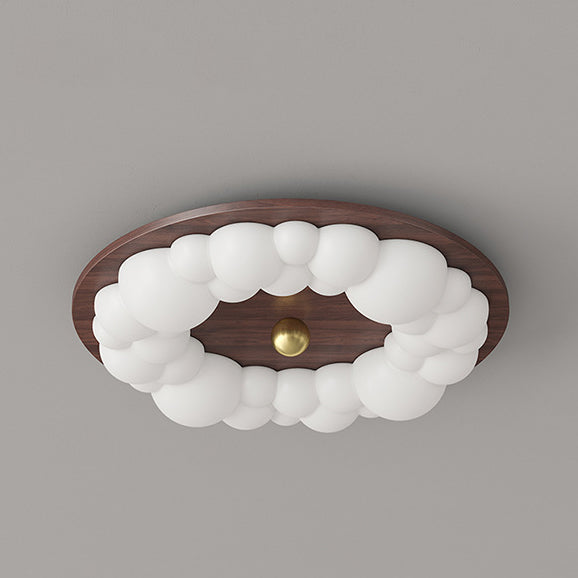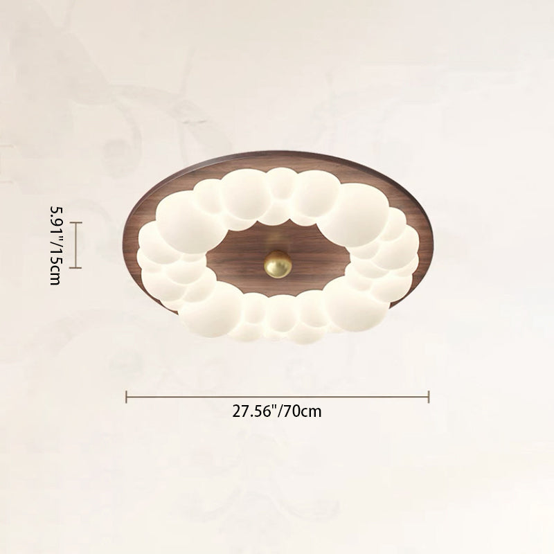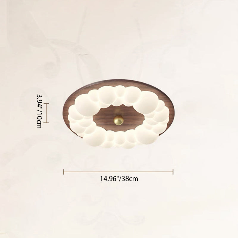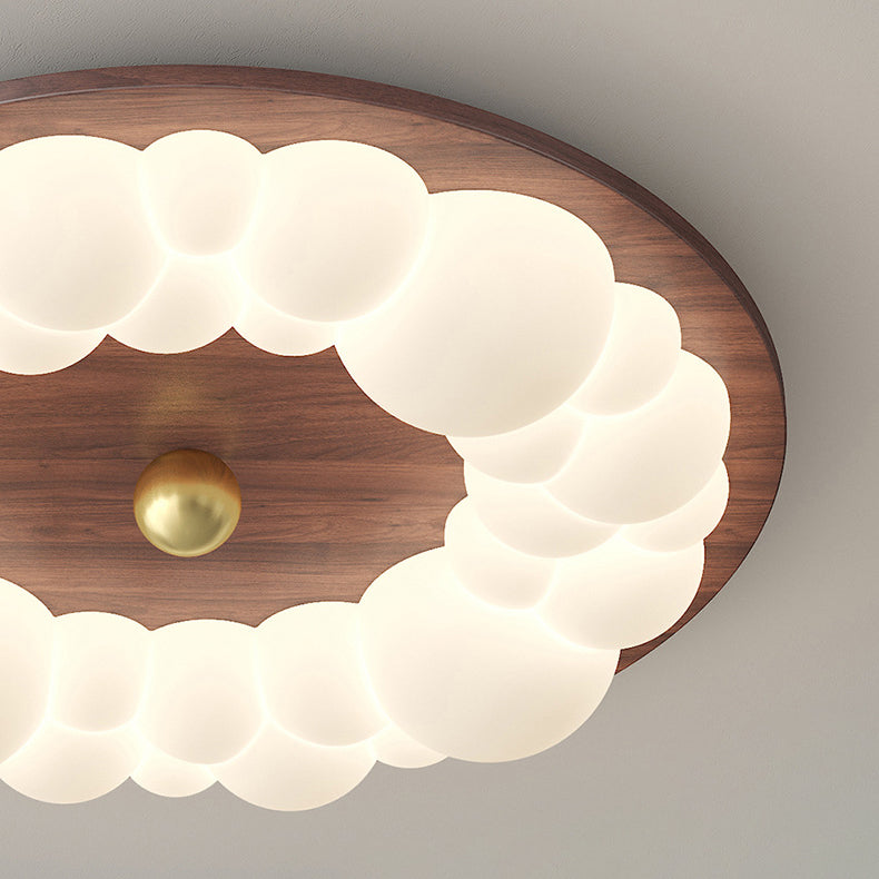 Contemporary Retro Iron PE Ash Wood Round Bubble LED Flush Mount Ceiling Light For Bedroom