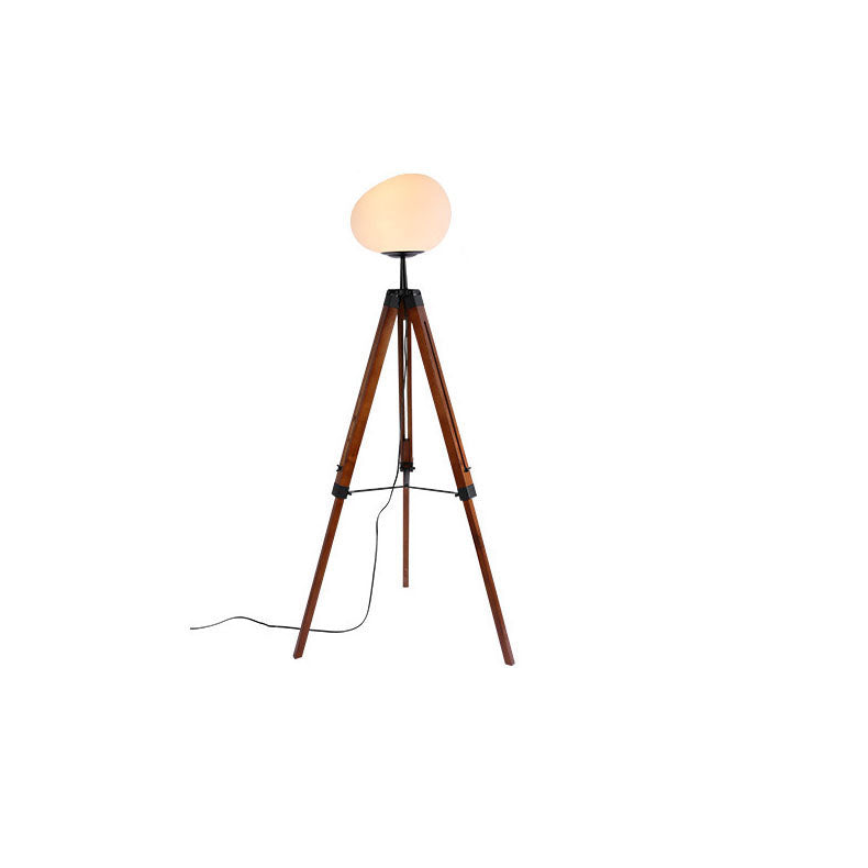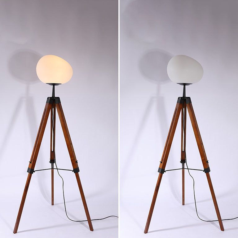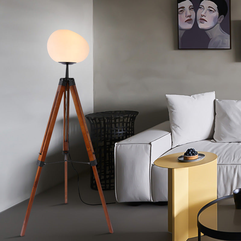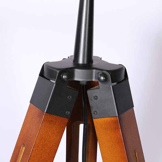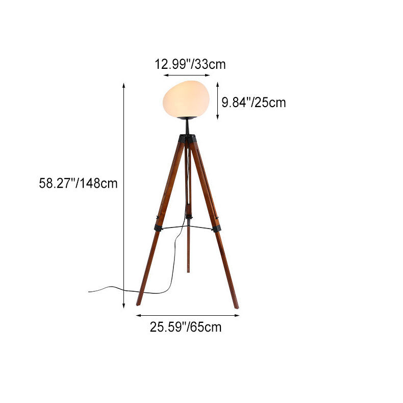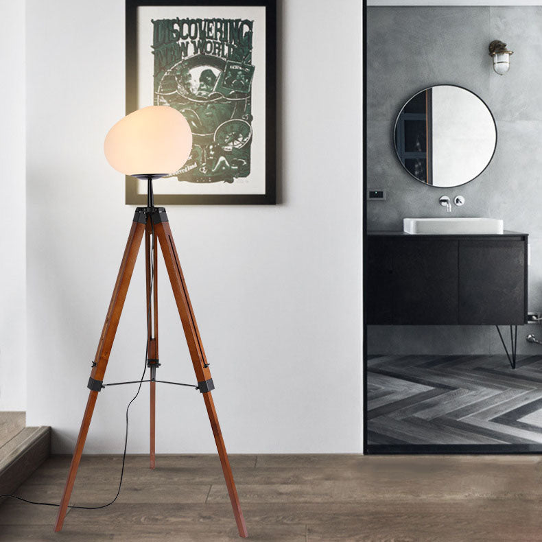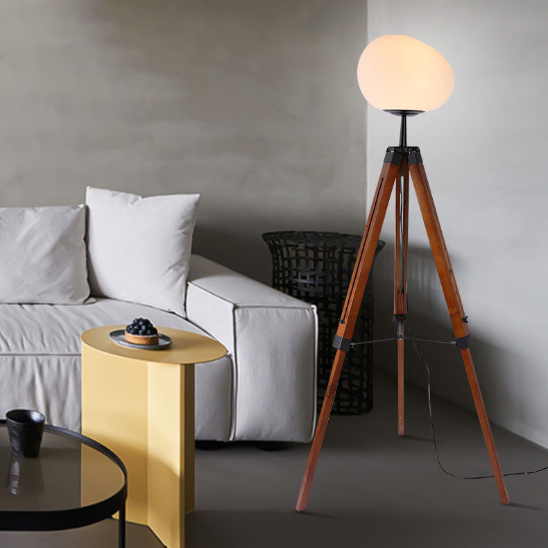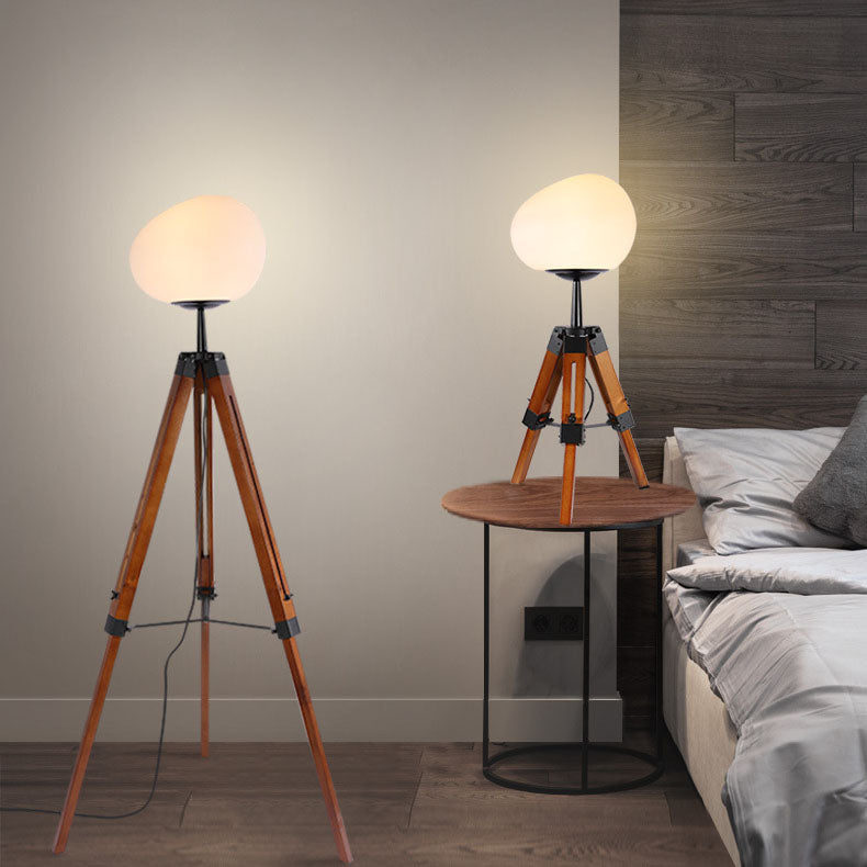 Contemporary Retro PE Round Shade Adjustable Wood Tripod Stand 1-Light Standing Floor Lamp For Bedroom