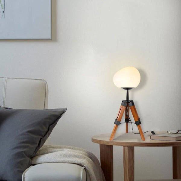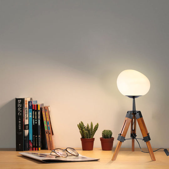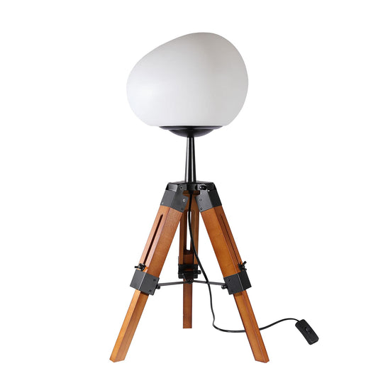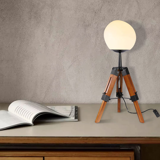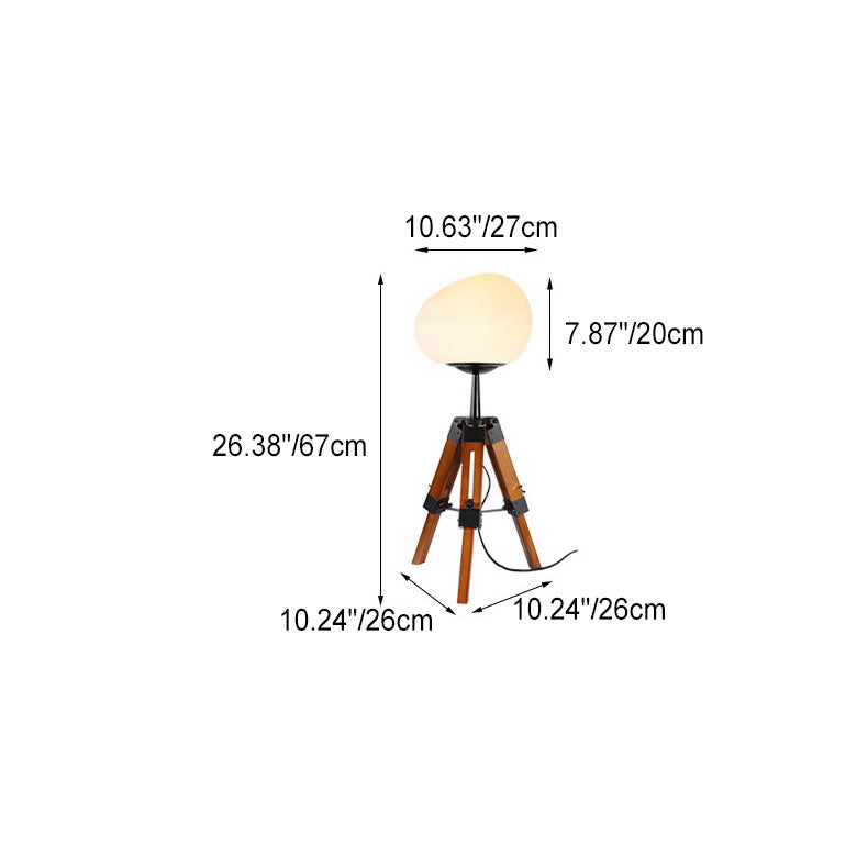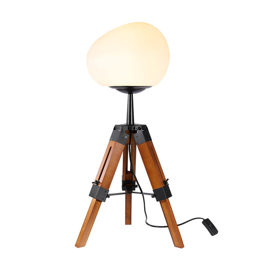 Contemporary Retro PE Round Shade Adjustable Wood Tripod Stand 1-Light Table Lamp For Bedroom