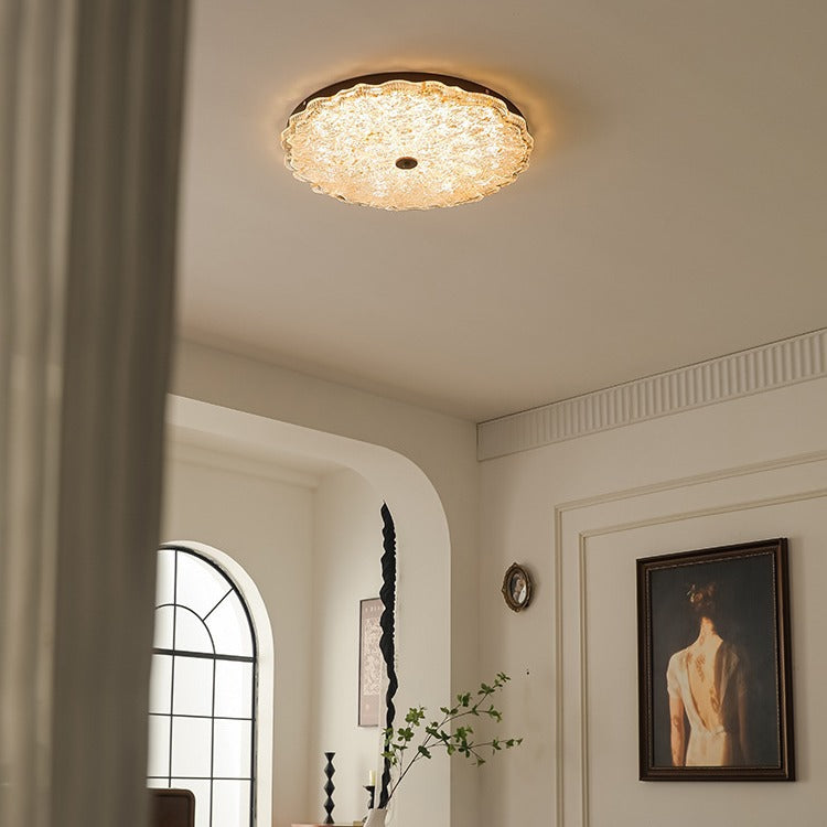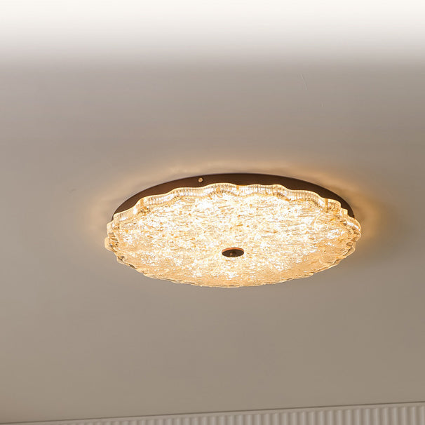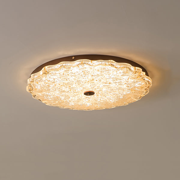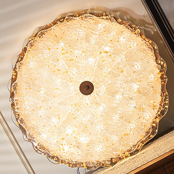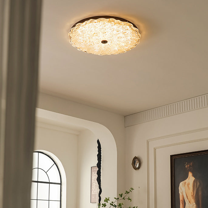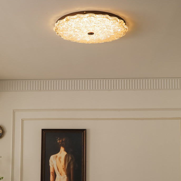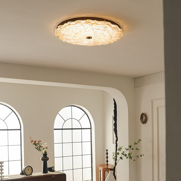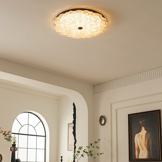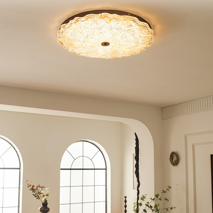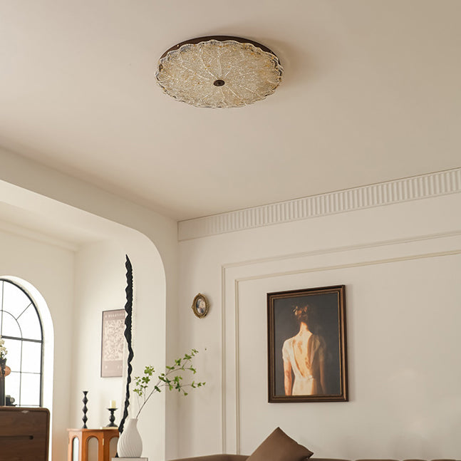 Contemporary Retro Round Lace Gold Foil Iron Resin LED Flush Mount Ceiling Light For Living Room