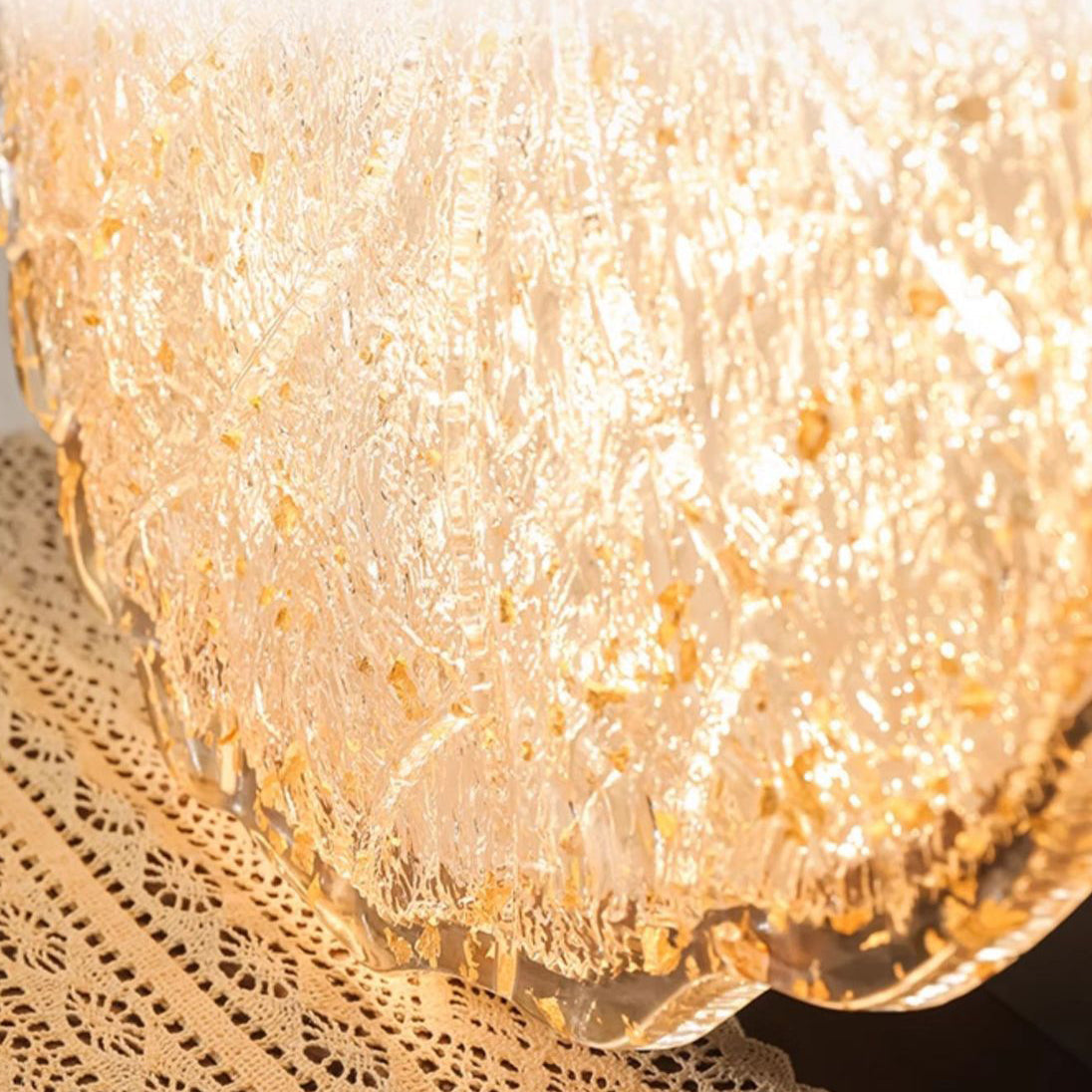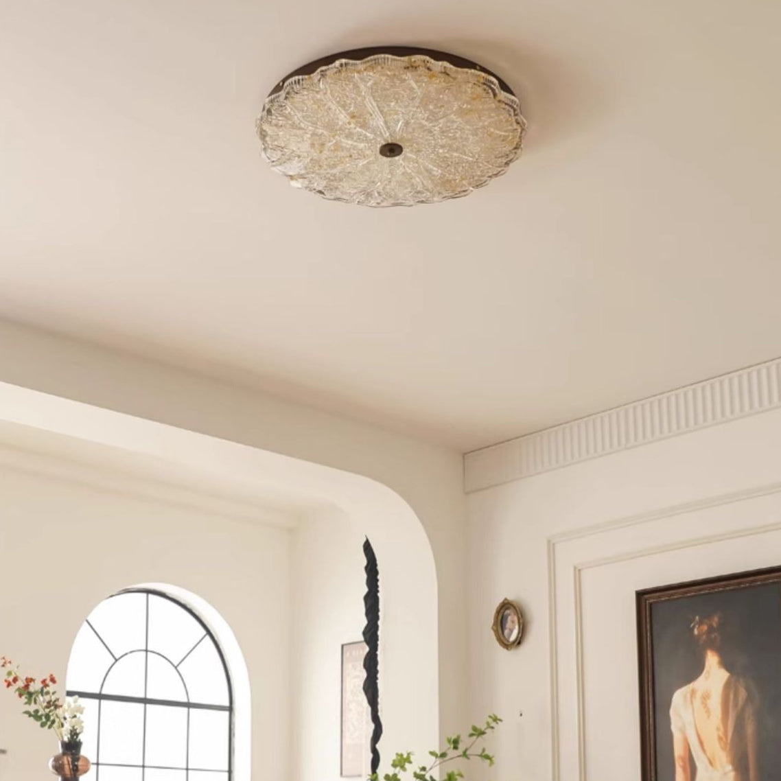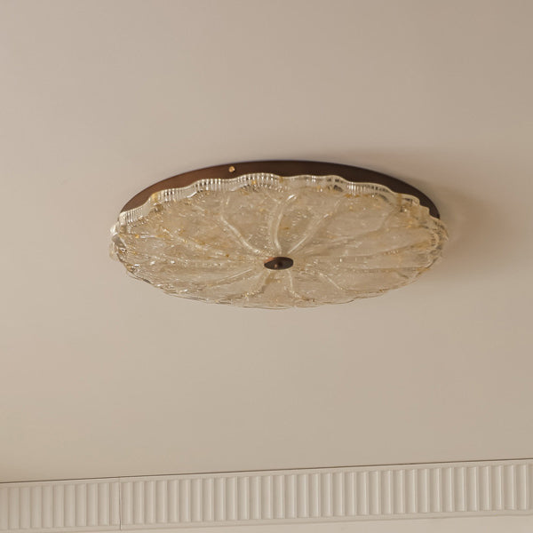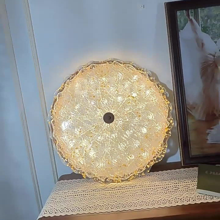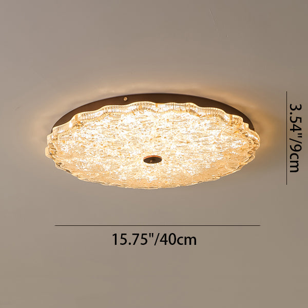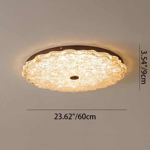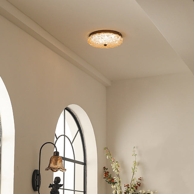 Contemporary Retro Round Lace Gold Foil Iron Resin LED Flush Mount Ceiling Light For Living Room