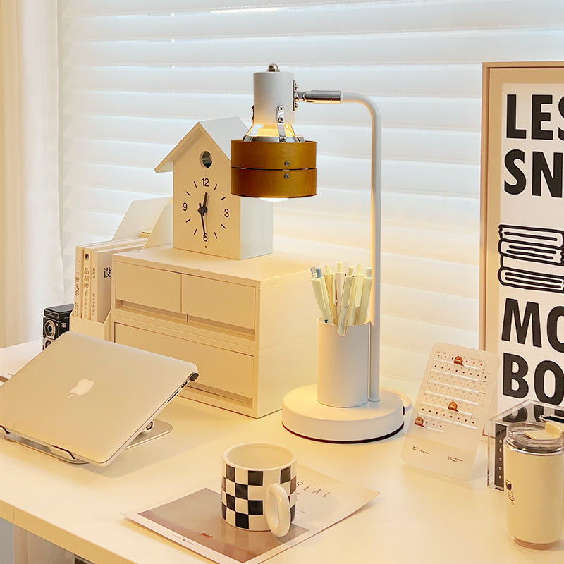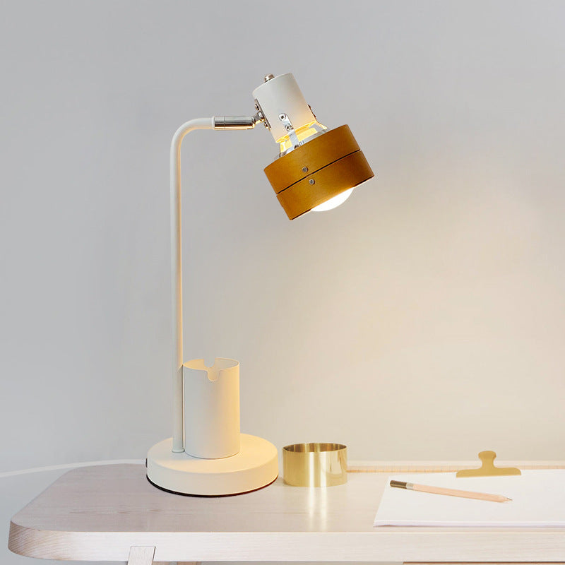 Contemporary Retro Round Wood Shade Iron Frame 1-Light Table Lamp For Bedroom