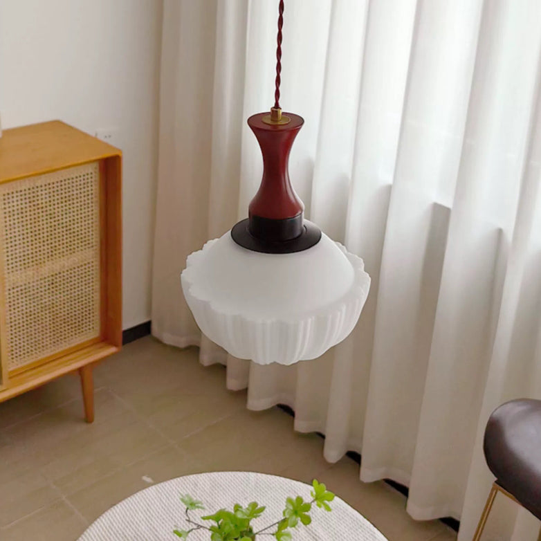 Contemporary Retro Solid Wood Round Glass Shade 1-Light Pendant Light For Living Room