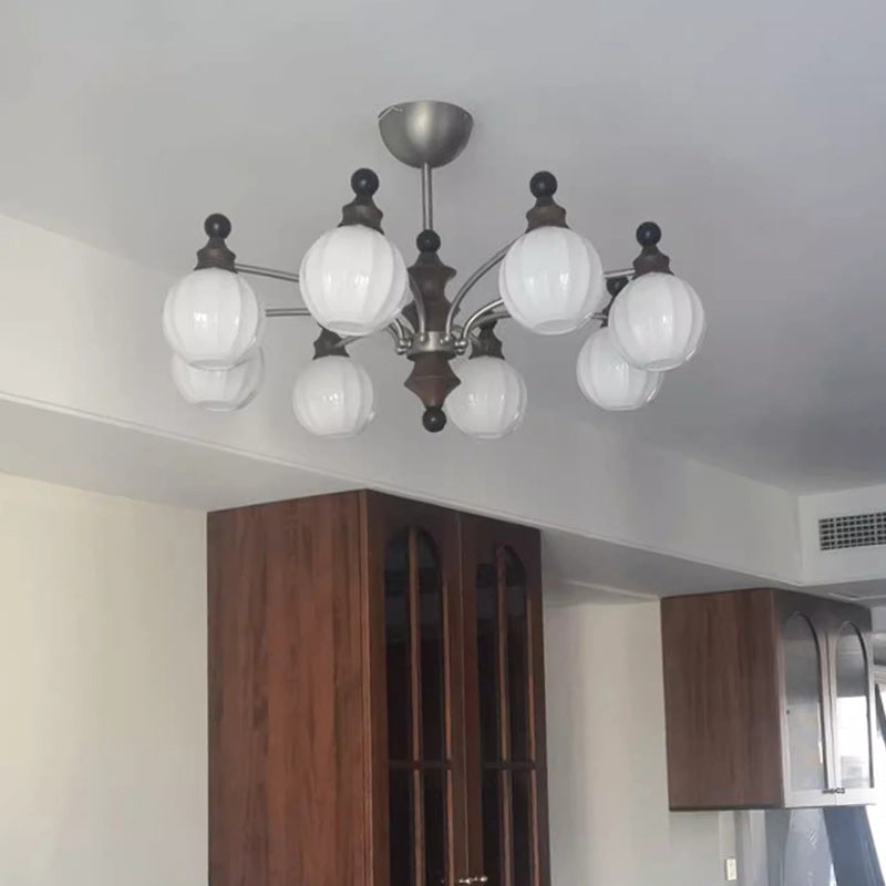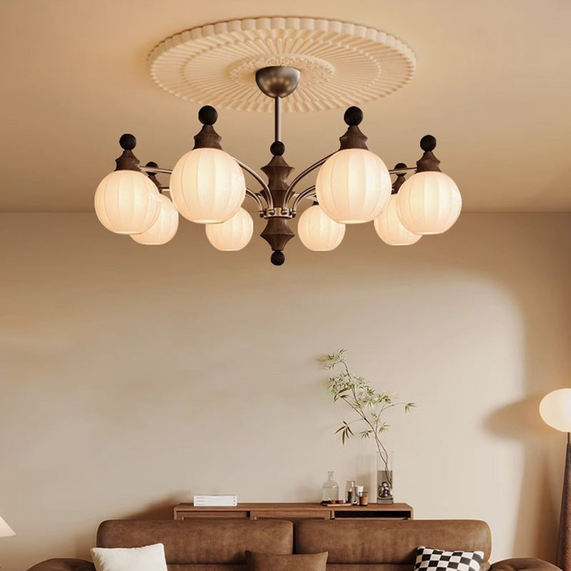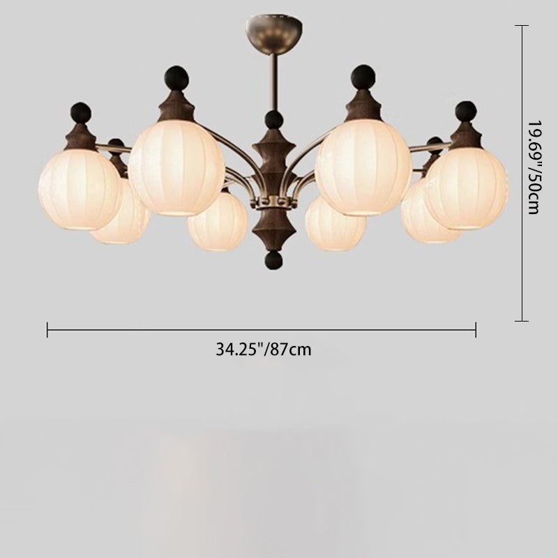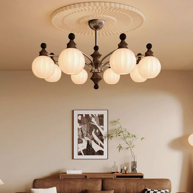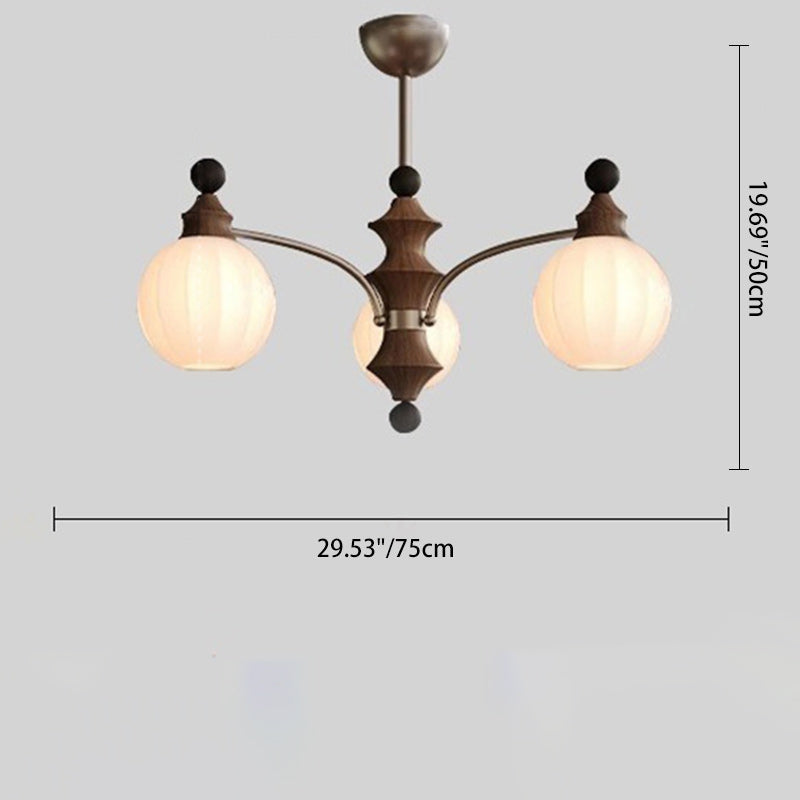 Contemporary Retro Wood Iron Glass Ball Bamboo Column 3/5/8 Light Chandeliers For Living Room