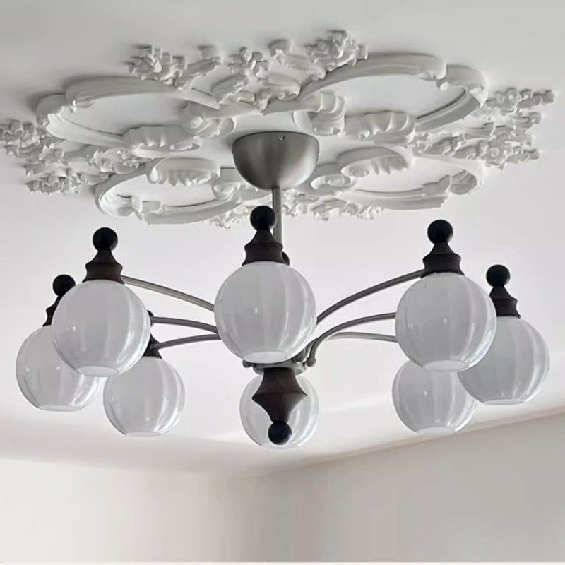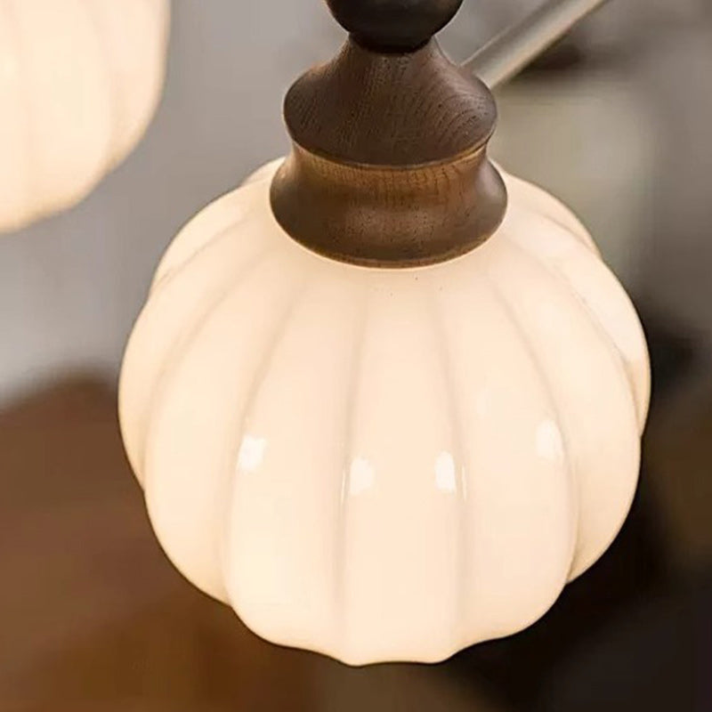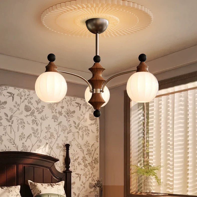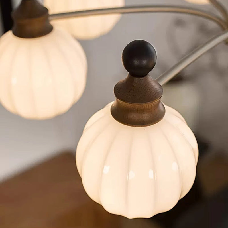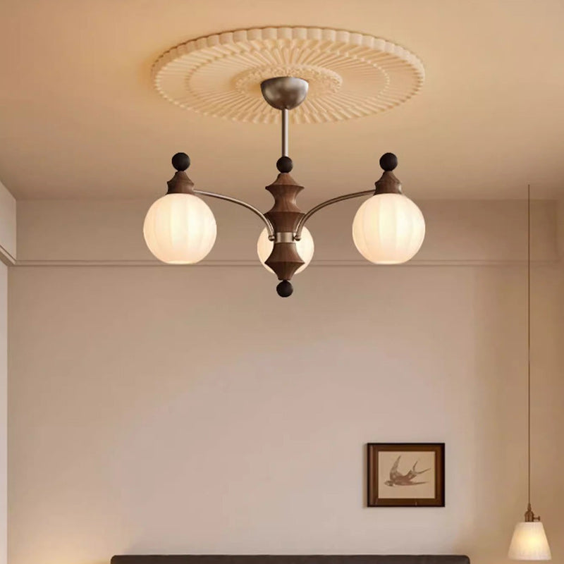 Contemporary Retro Wood Iron Glass Ball Bamboo Column 3/5/8 Light Chandeliers For Living Room
