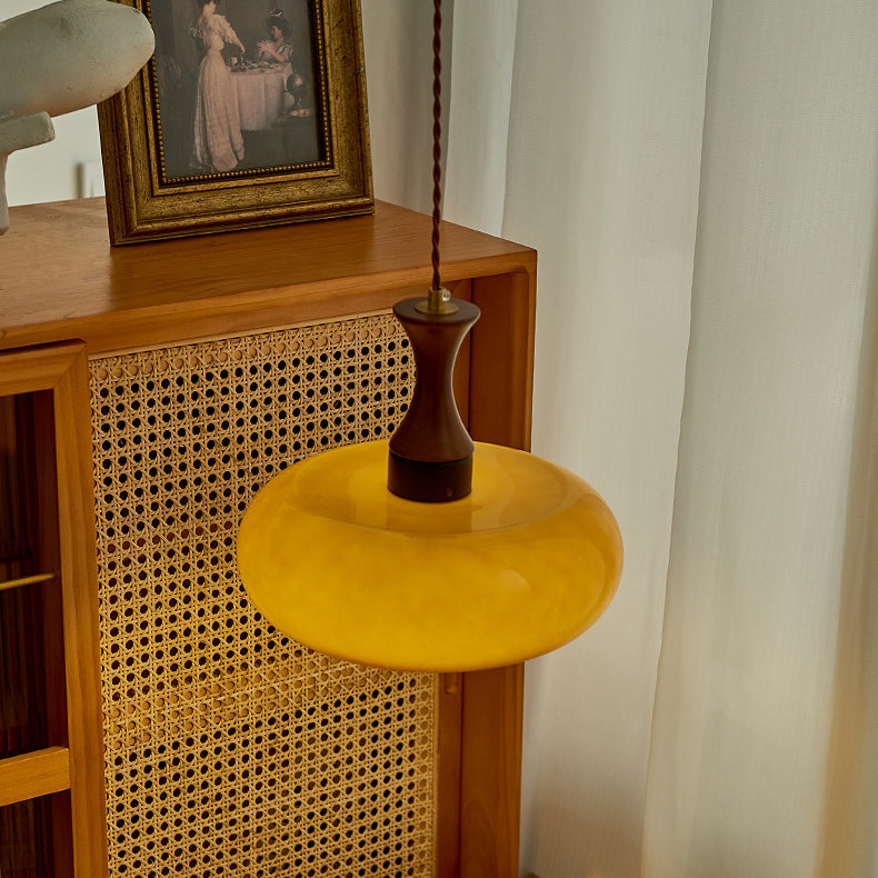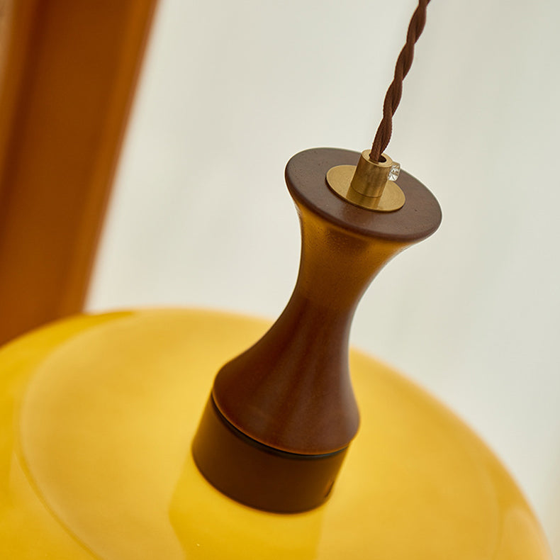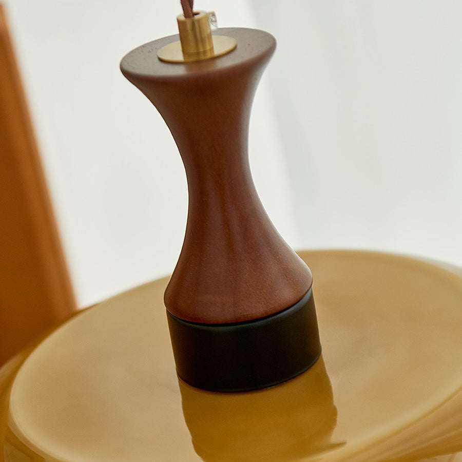 Contemporary Retro Wood Iron Glass Drum Round 1-Light Pendant Light For Dining Room
