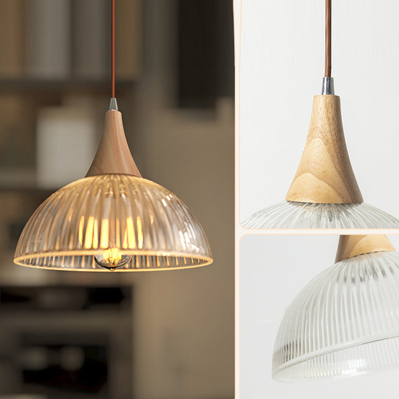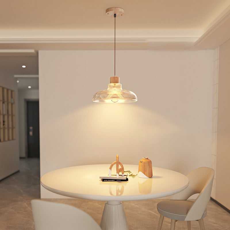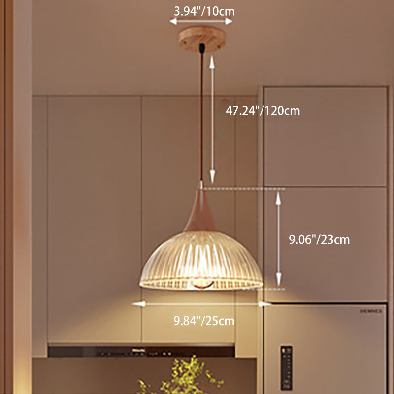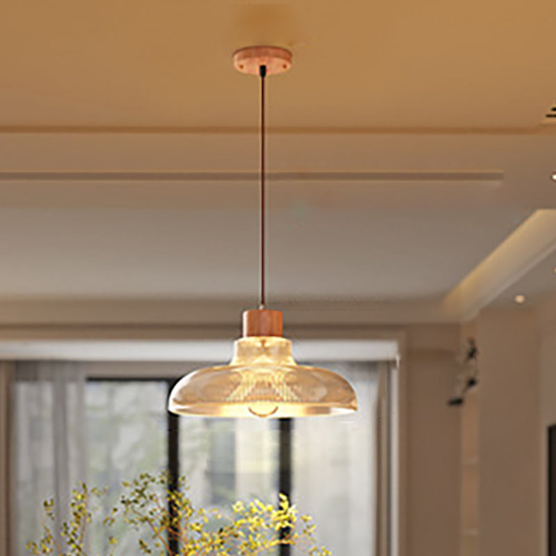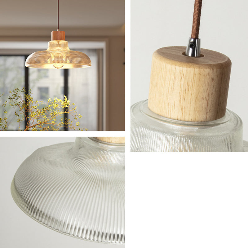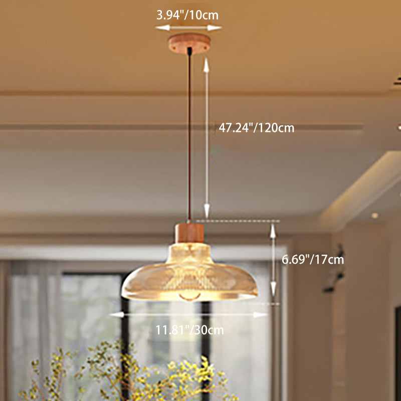 Contemporary Retro Wood Vertical Glass Round Shade 1-Light Pendant Light For Living Room