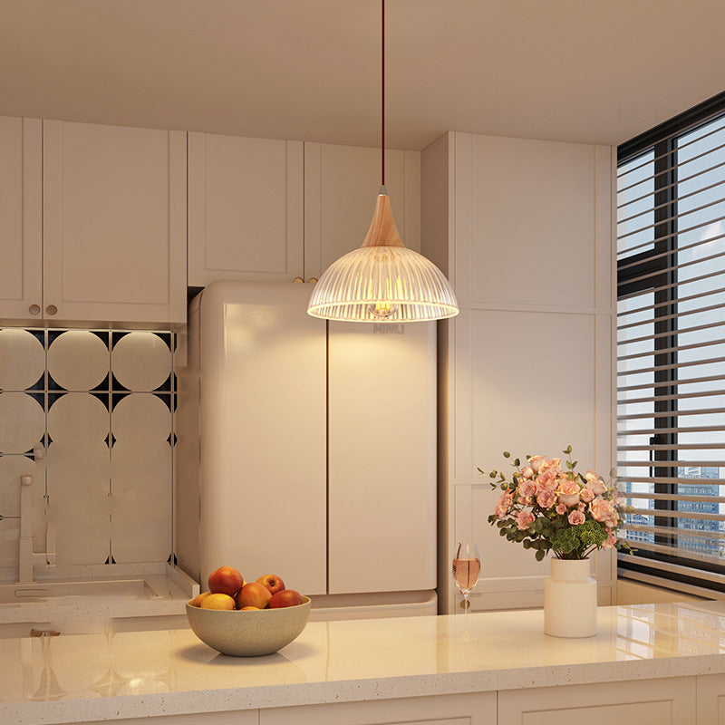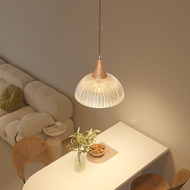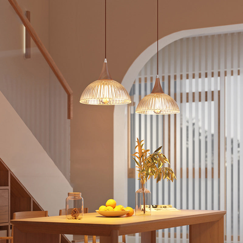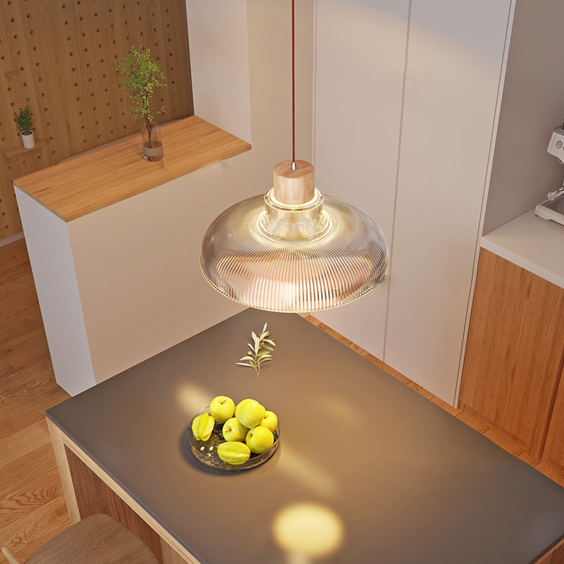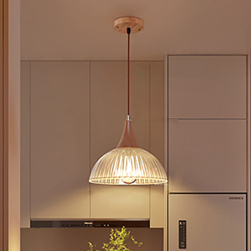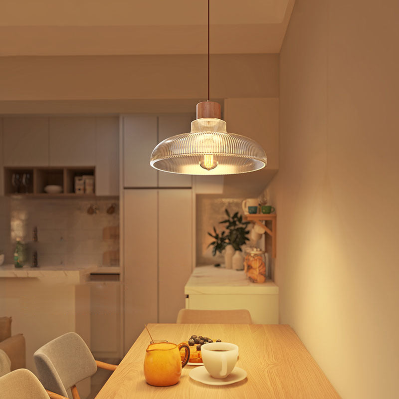 Contemporary Retro Wood Vertical Glass Round Shade 1-Light Pendant Light For Living Room