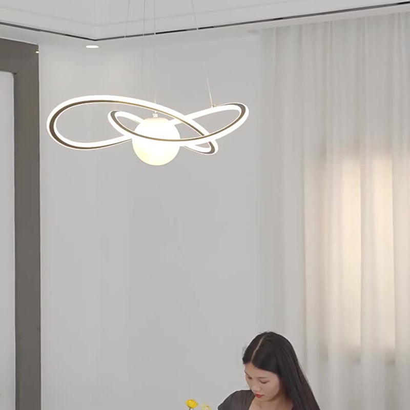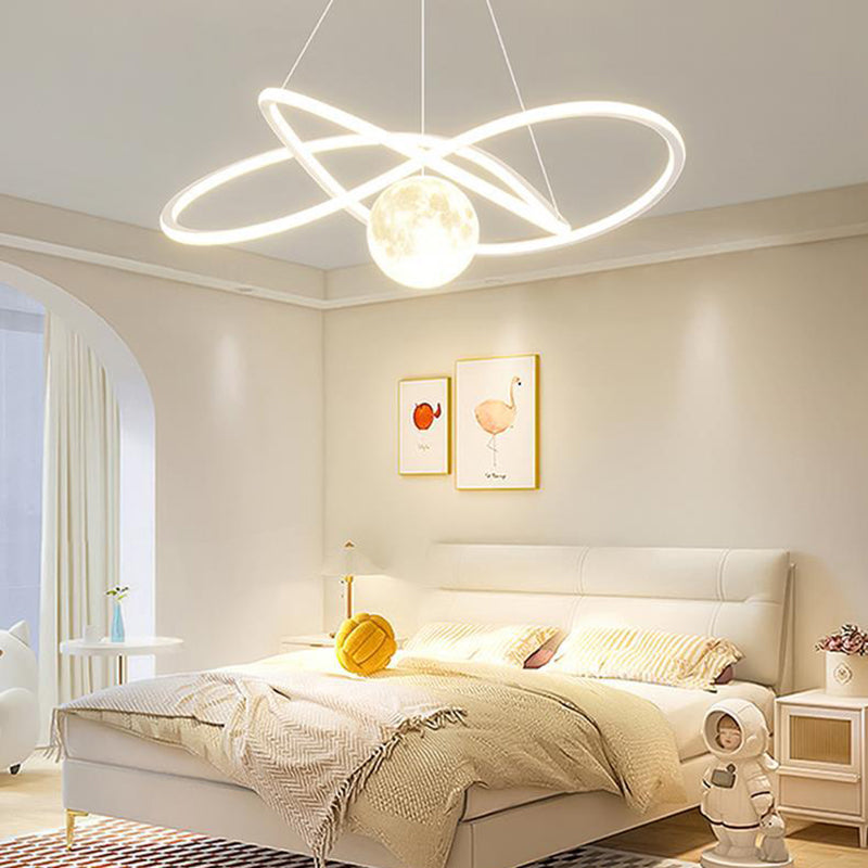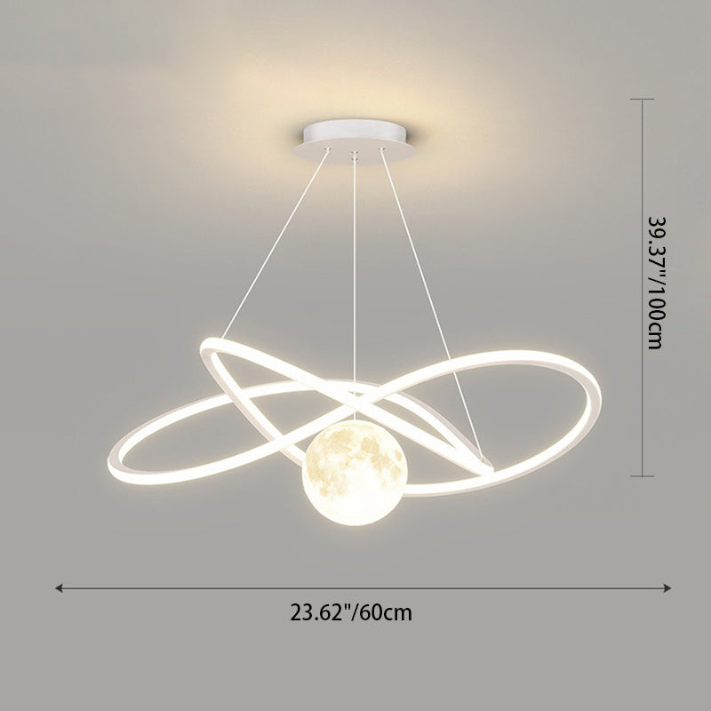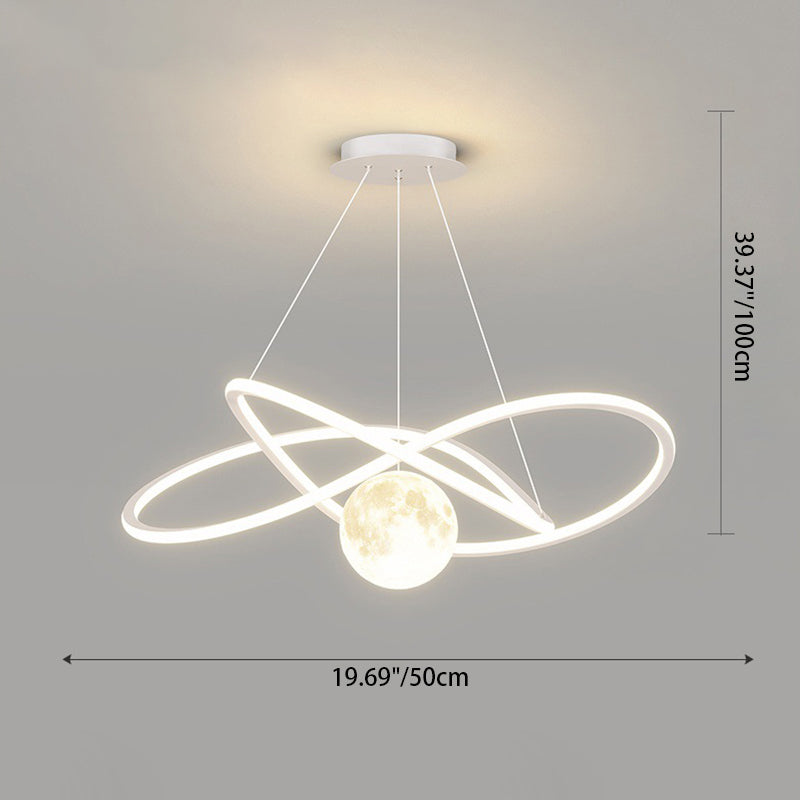 Contemporary Scandinavian Circle Around Moon Iron Aluminum Resin LED Chandeliers Island Light For Dining Room