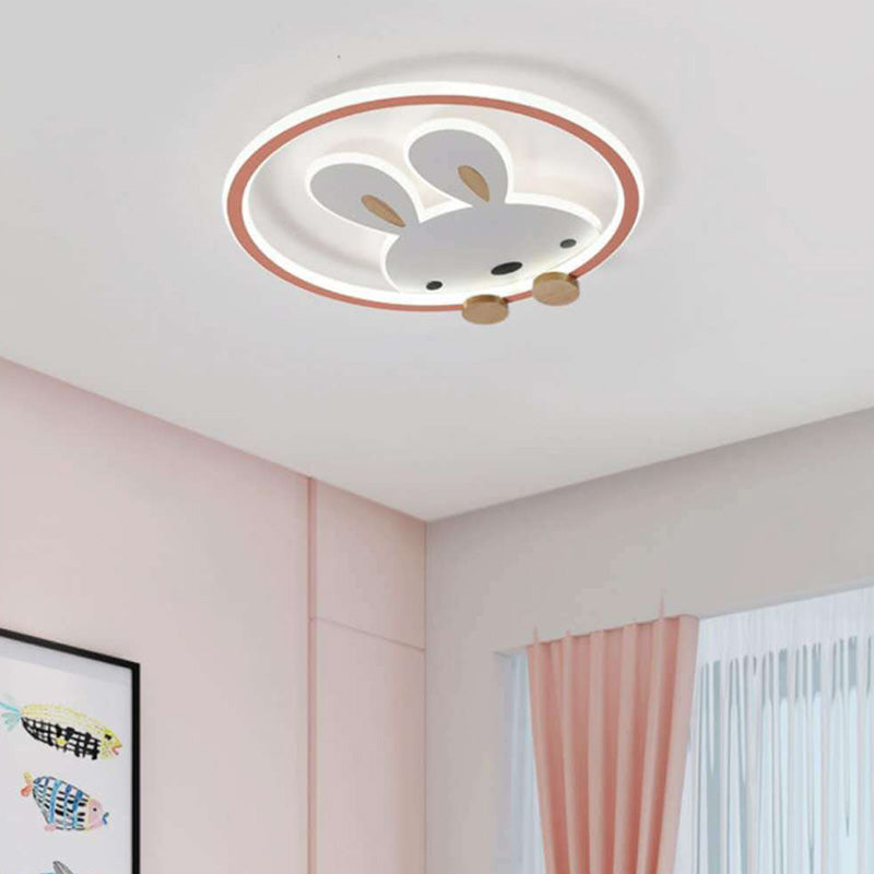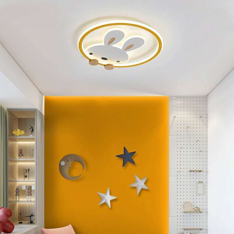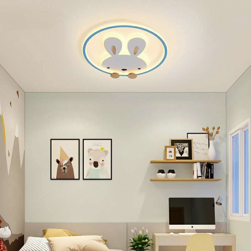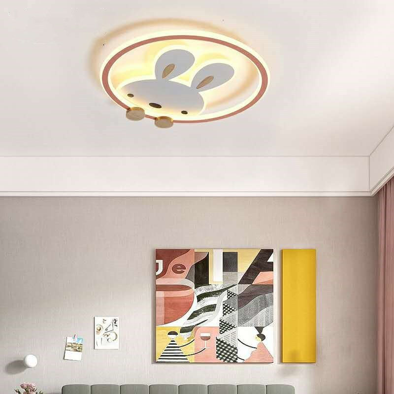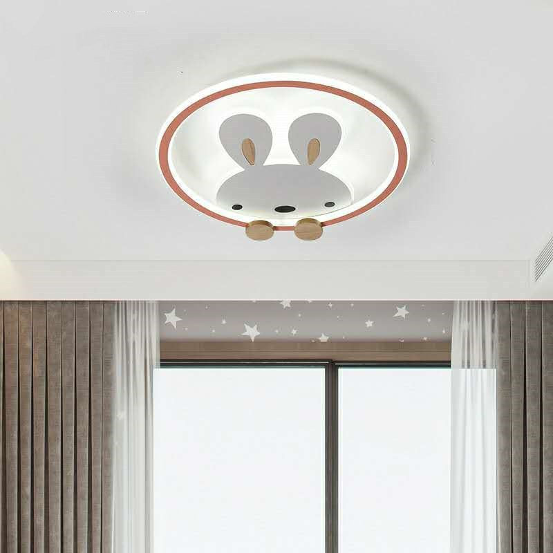 Contemporary Scandinavian Circle Rabbit Hardware Acrylic LED Flush Mount Ceiling Light For Bedroom