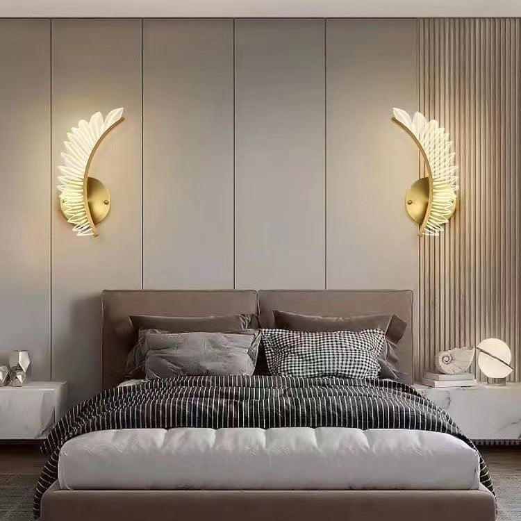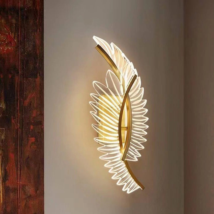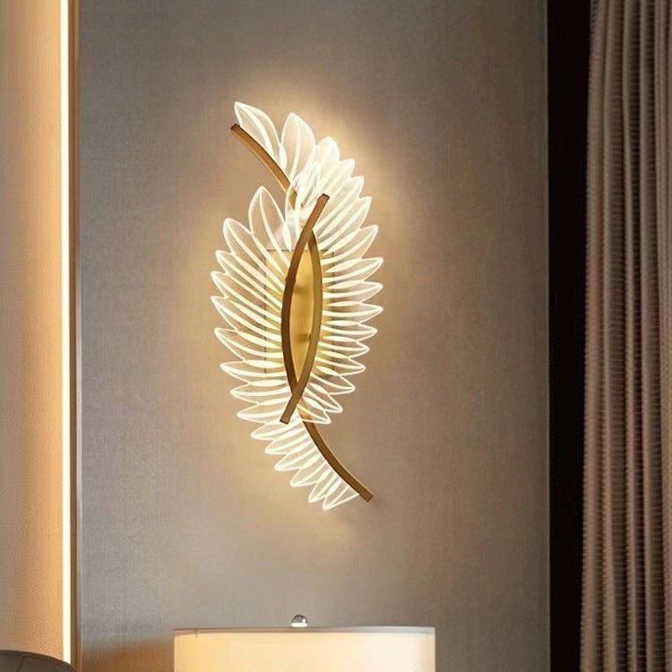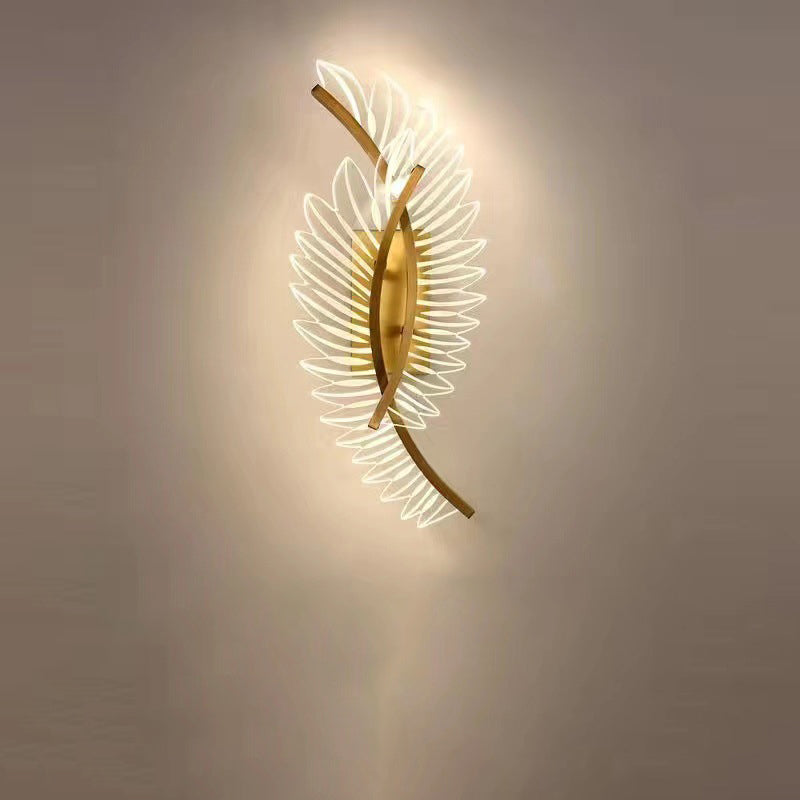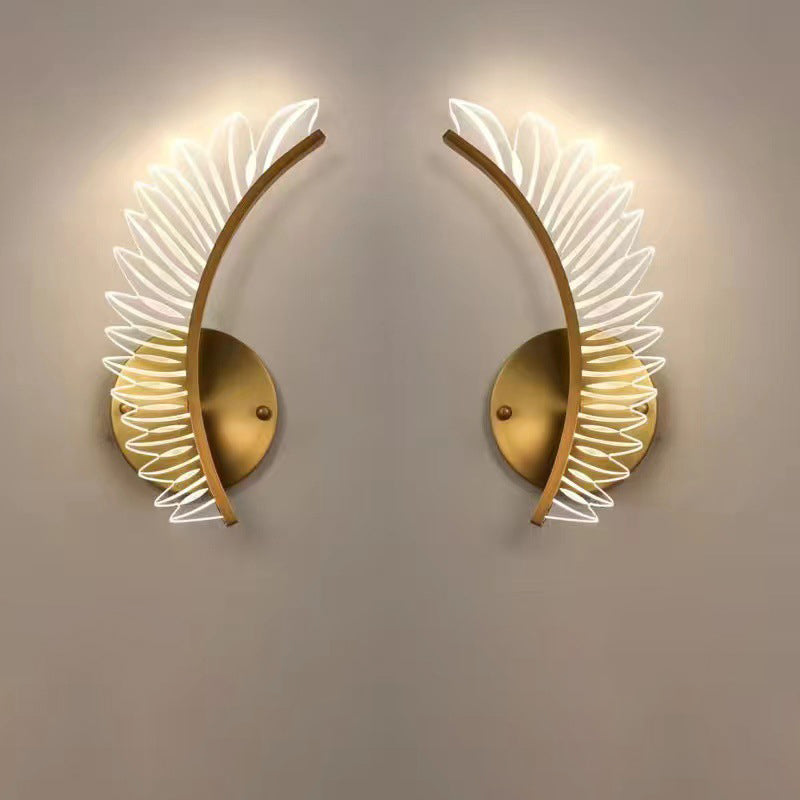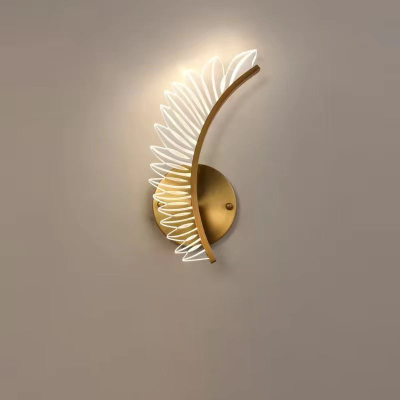 Contemporary Scandinavian Coconut Leaf Curved Iron Acrylic LED Wall Sconce Lamp For Bedroom