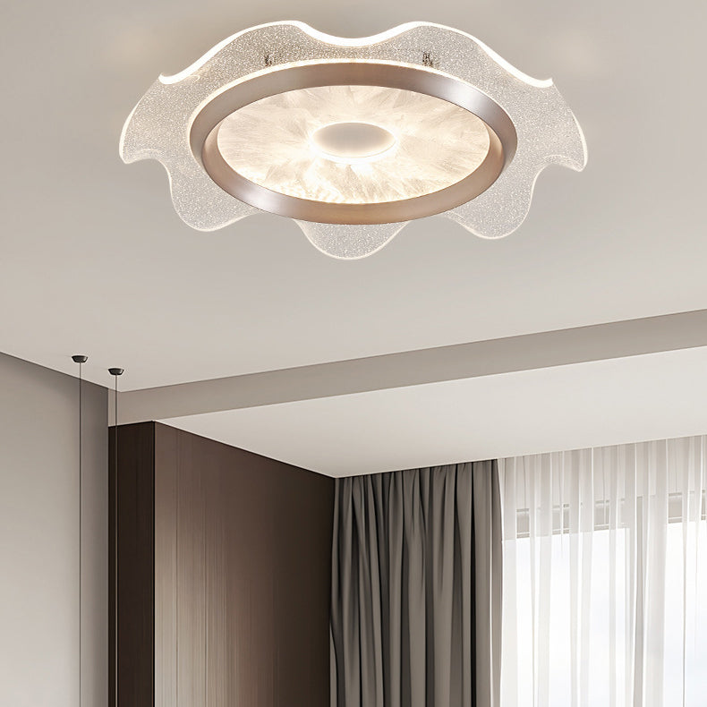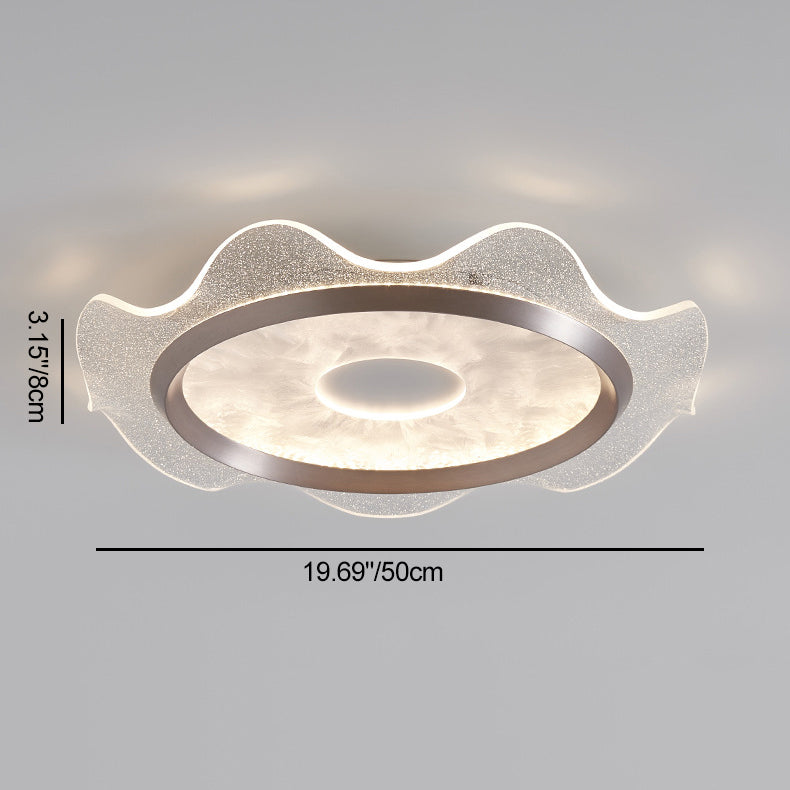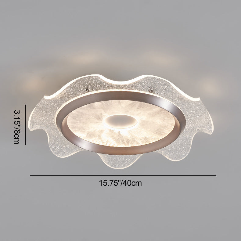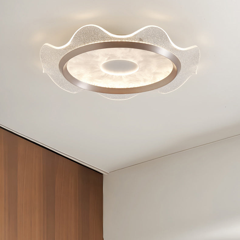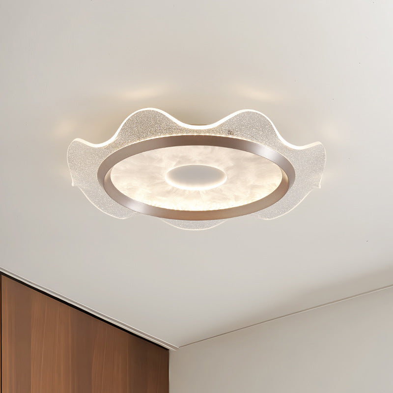 Contemporary Scandinavian Corrugated Edge Round Aluminum Acrylic LED Flush Mount Ceiling Light For Bedroom