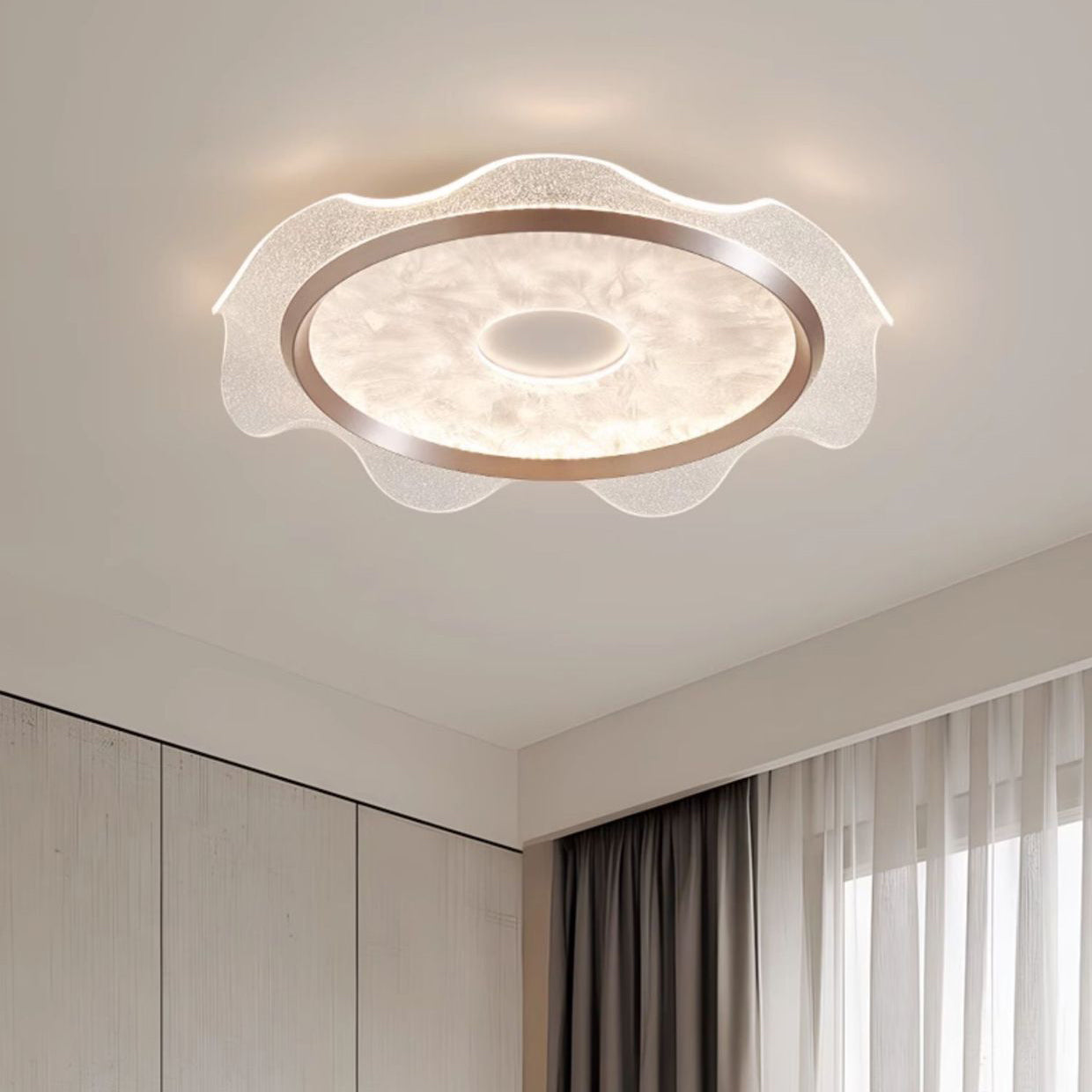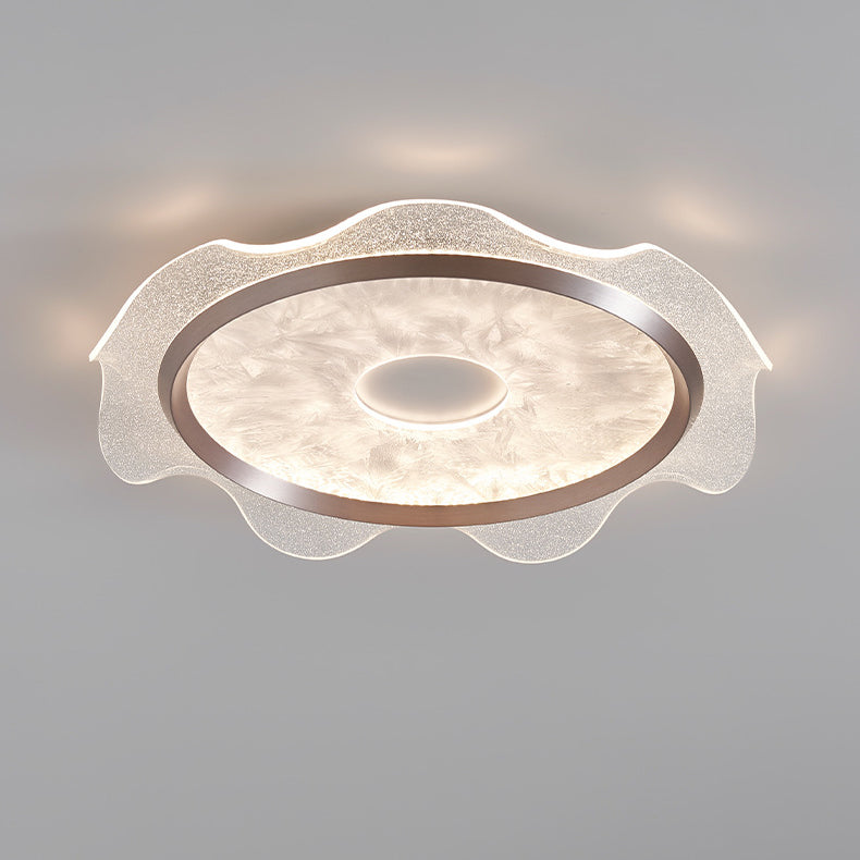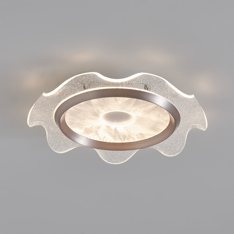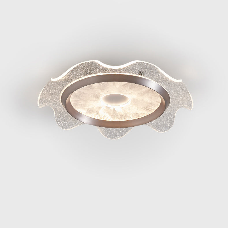 Contemporary Scandinavian Corrugated Edge Round Aluminum Acrylic LED Flush Mount Ceiling Light For Bedroom