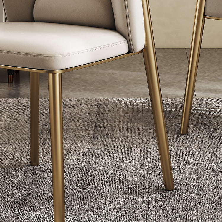 Contemporary Scandinavian Cowhide Leather Stainless Steel Latex Sponge Square Curved Dining Chair Backrest Armless For Dining Room