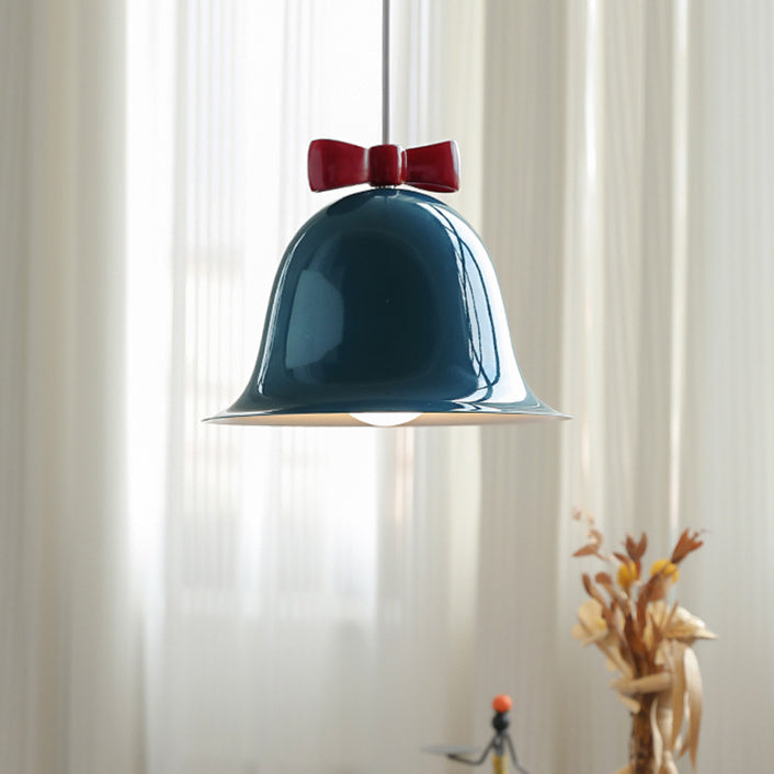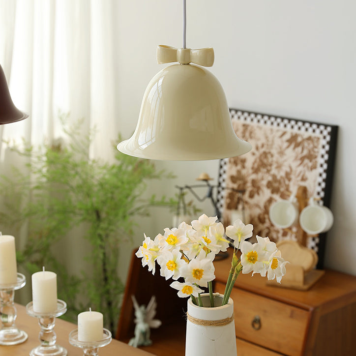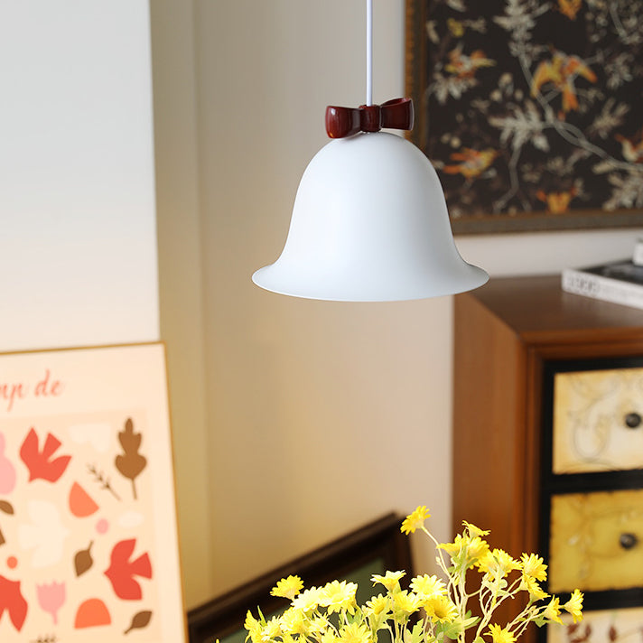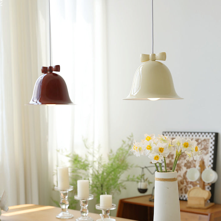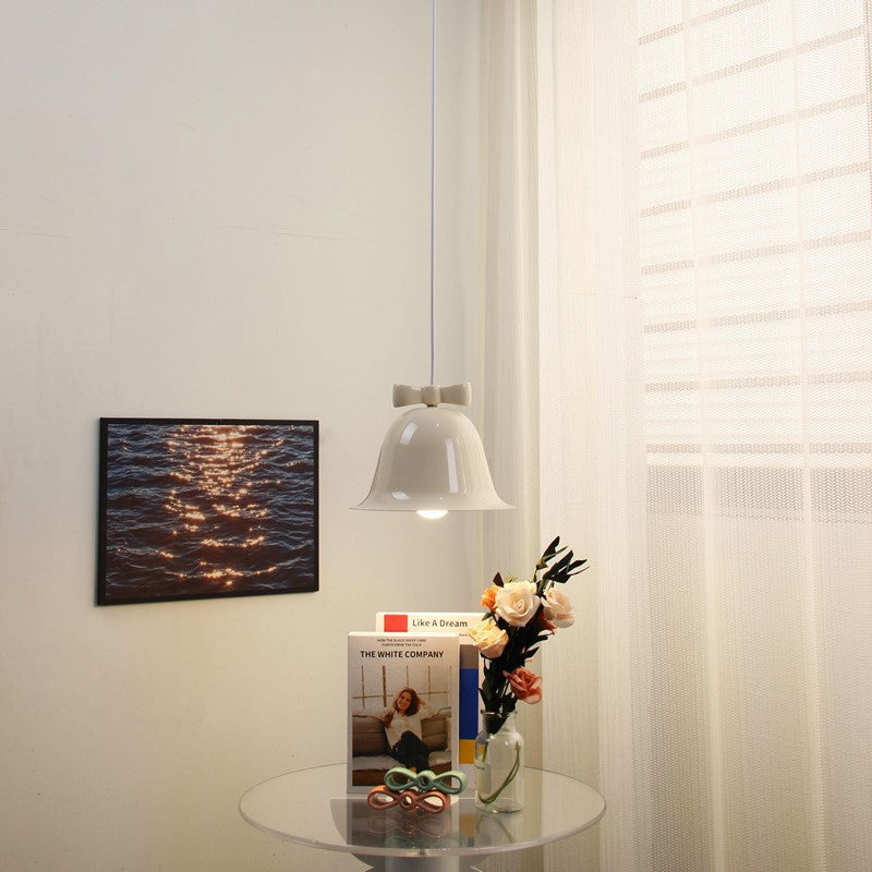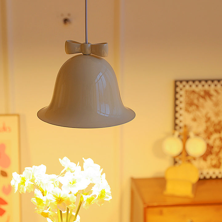 Contemporary Scandinavian Cream Bell Bow Tie Round Iron 1-Light Pendant Light For Bedroom
