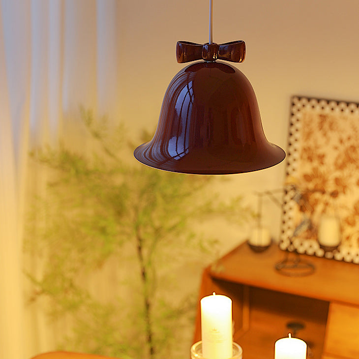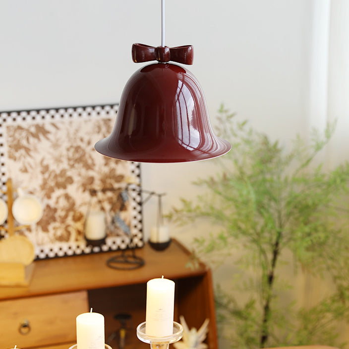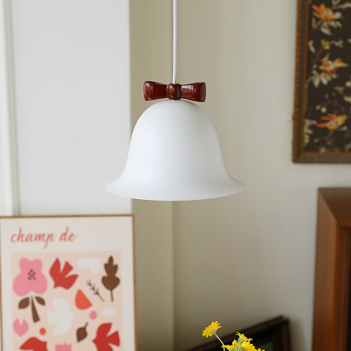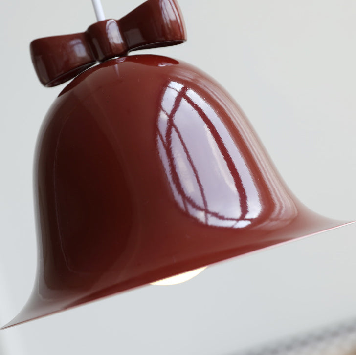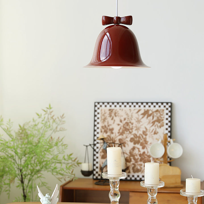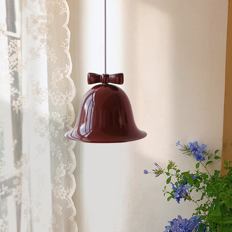 Contemporary Scandinavian Cream Bell Bow Tie Round Iron 1-Light Pendant Light For Bedroom