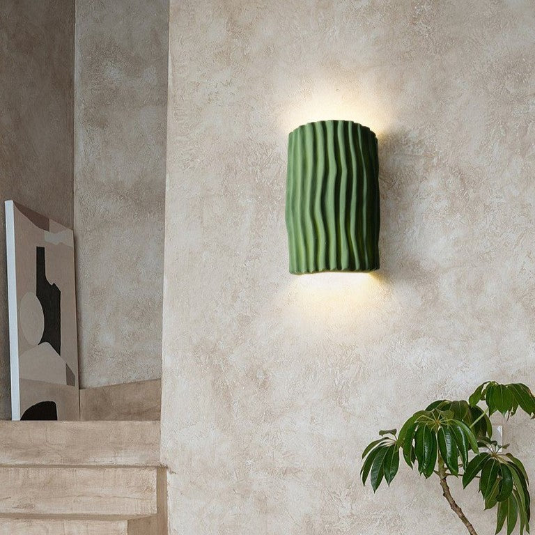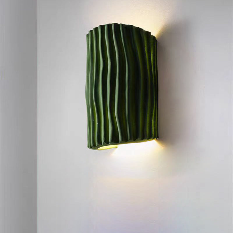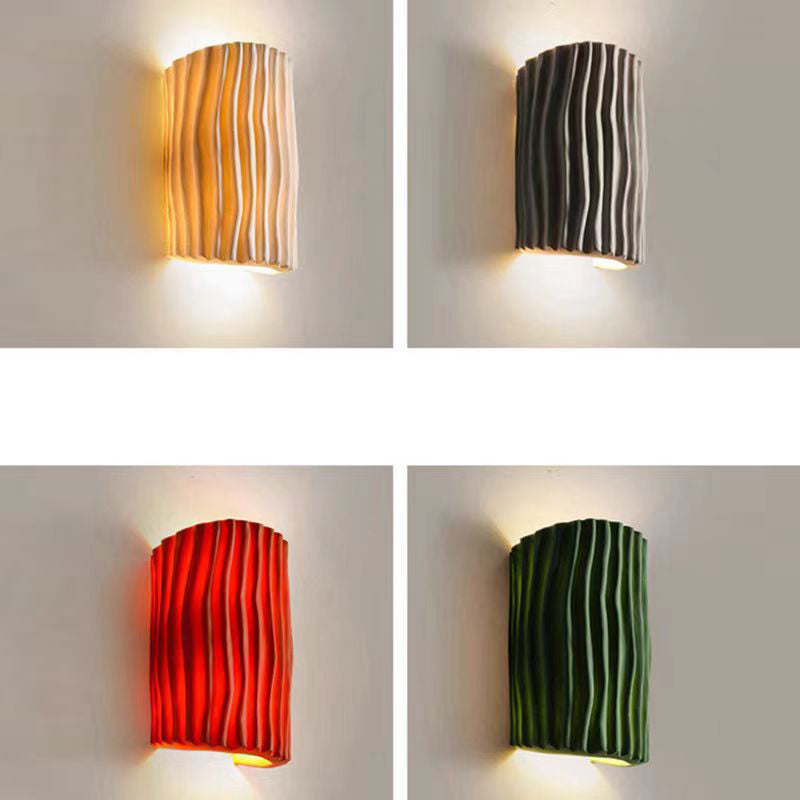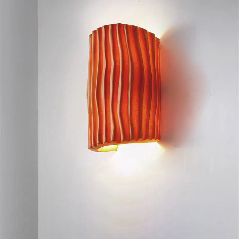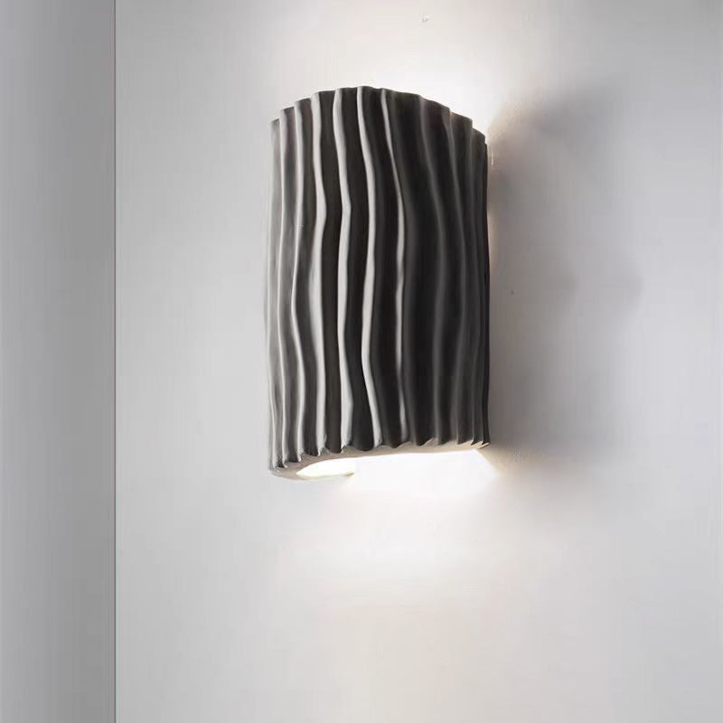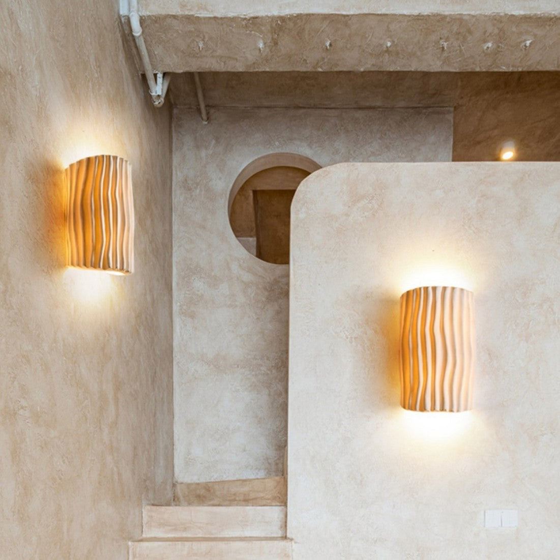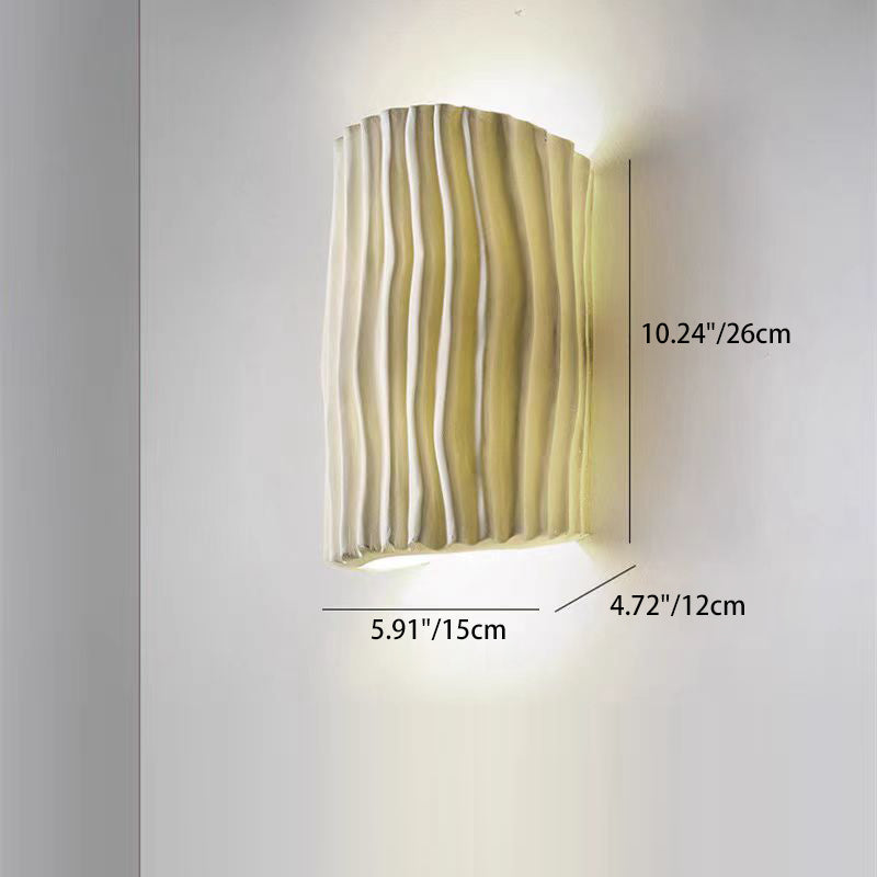 Contemporary Scandinavian Cream Ripple Cylinder Resin 2-Light Wall Sconce Lamp For Bedroom