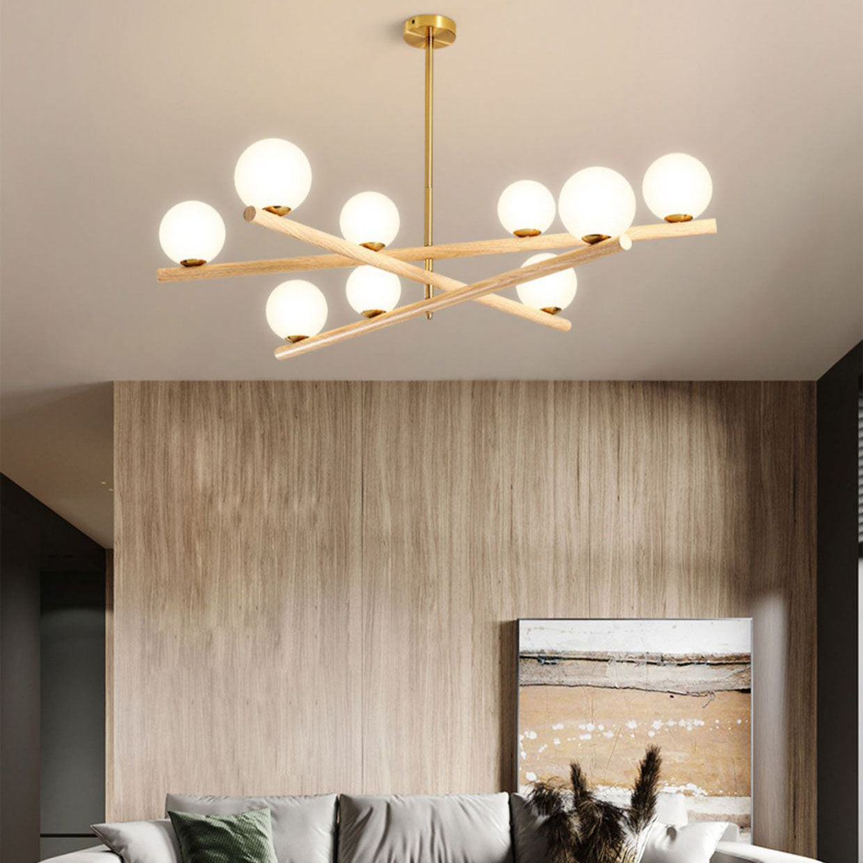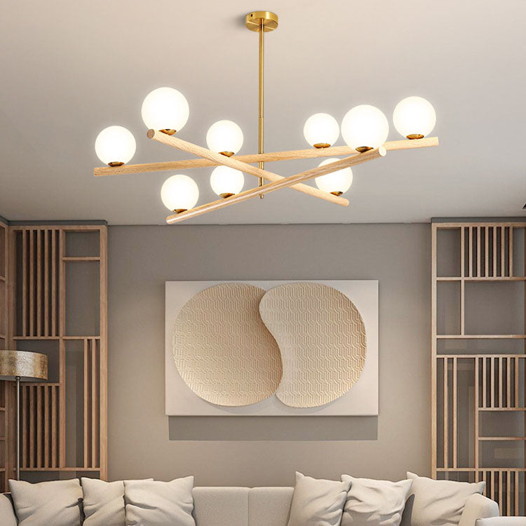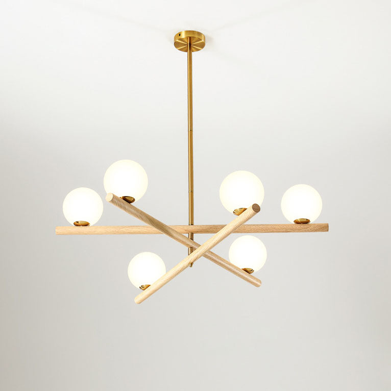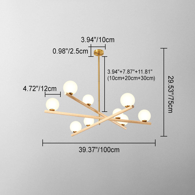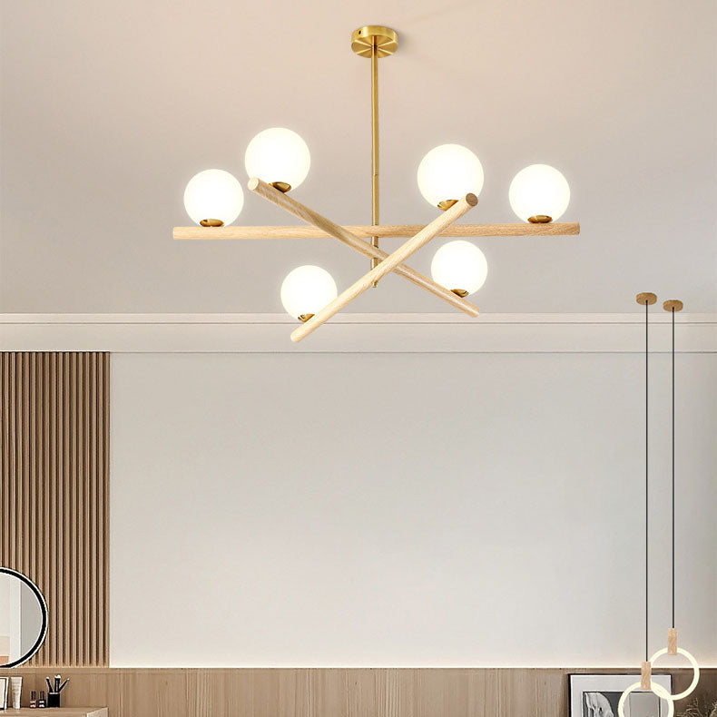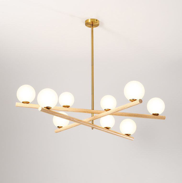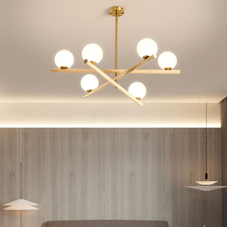 Contemporary Scandinavian Crossover Strip Orb Metal Glass 6/9 Light Chandelier for Living Room
