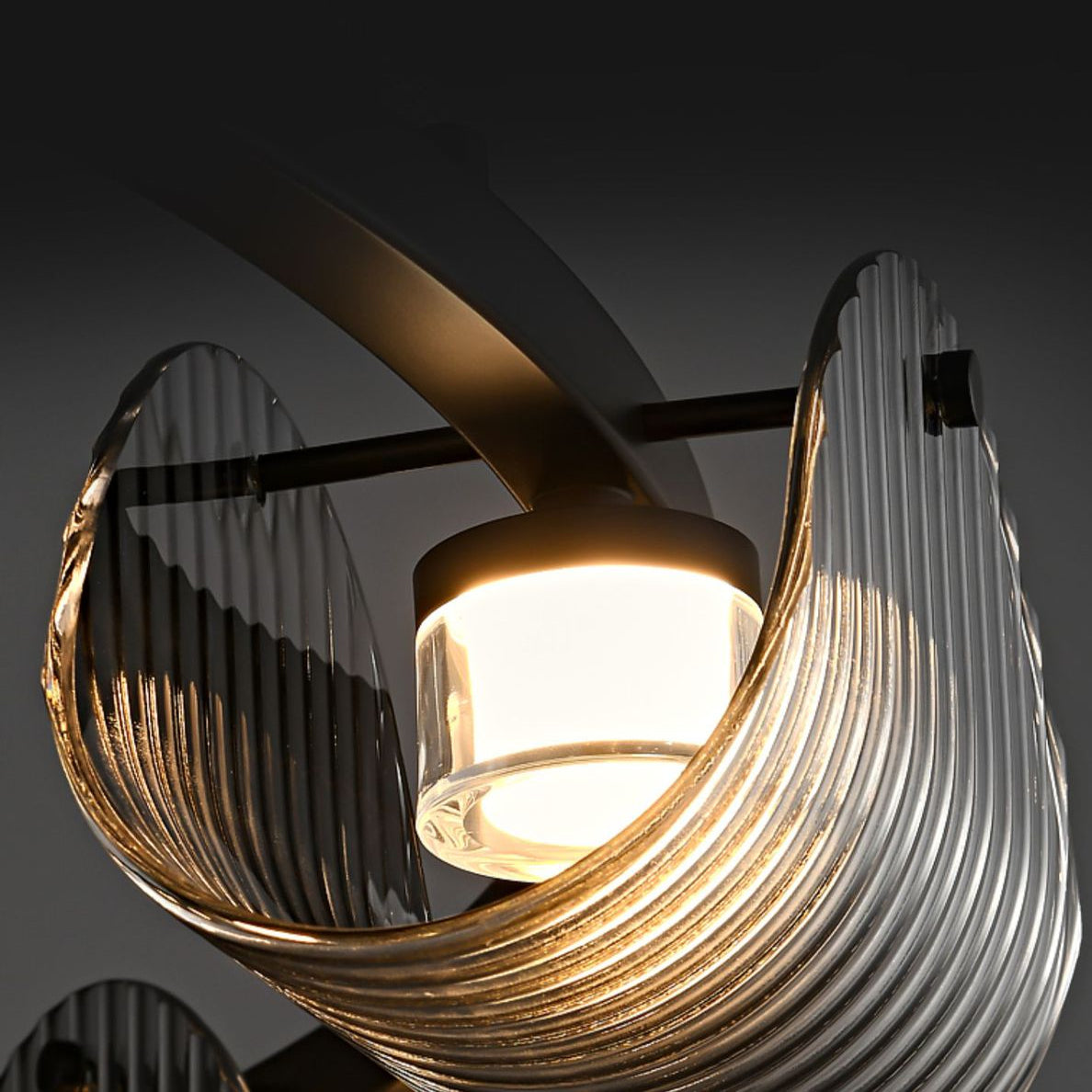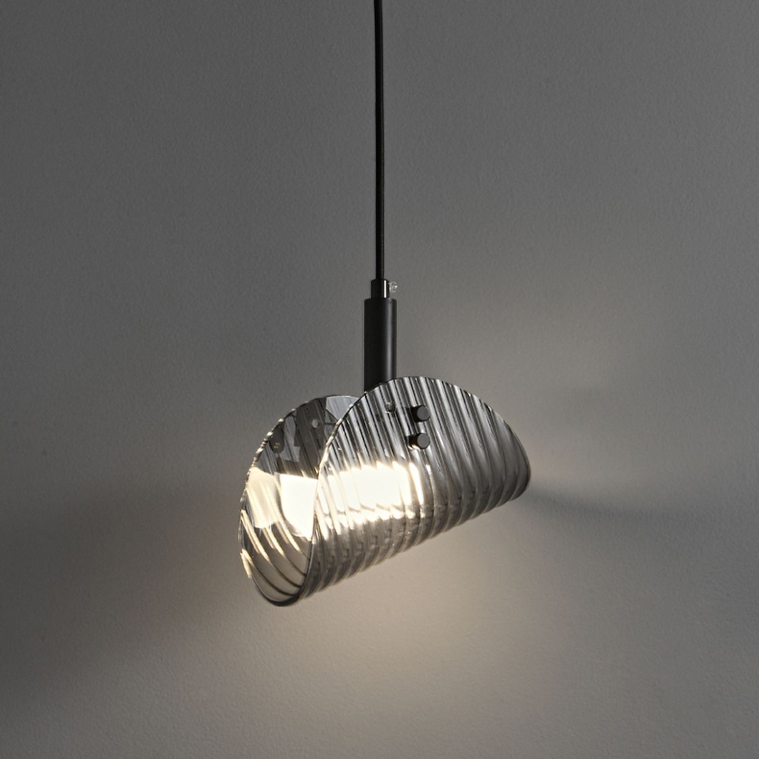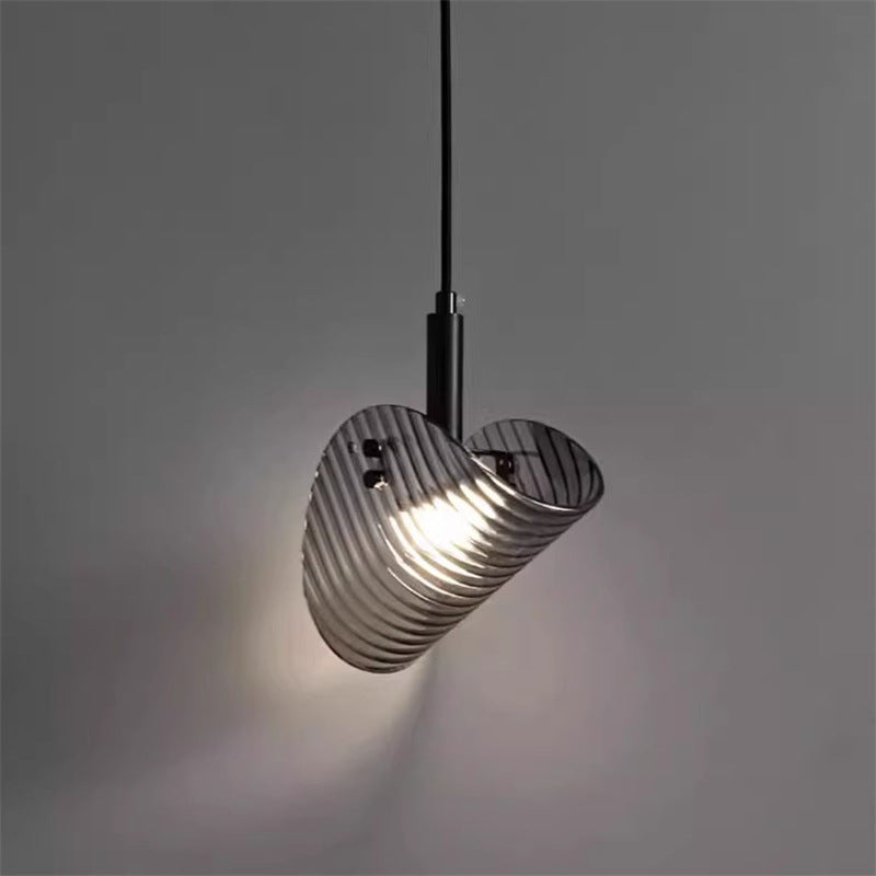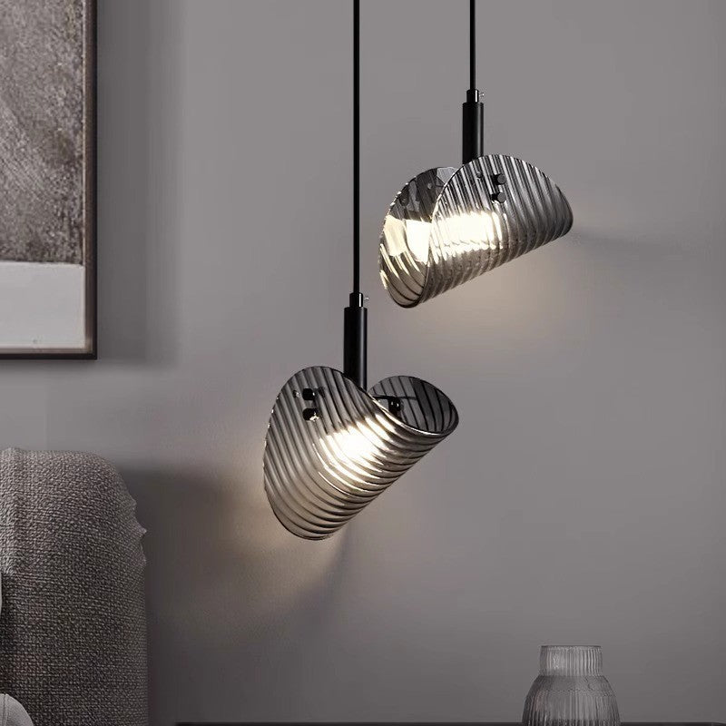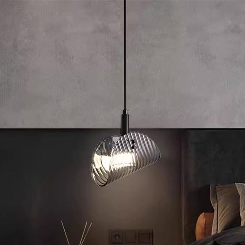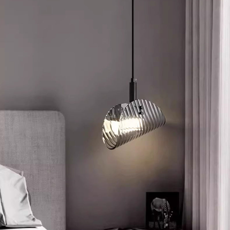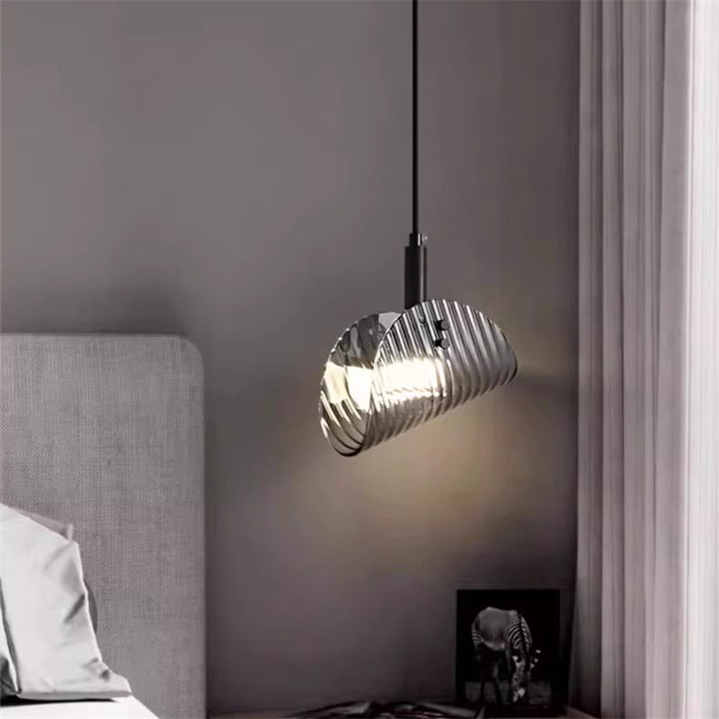 Contemporary Scandinavian Curved Striped Glass Hardware LED Pendant Light For Bedside